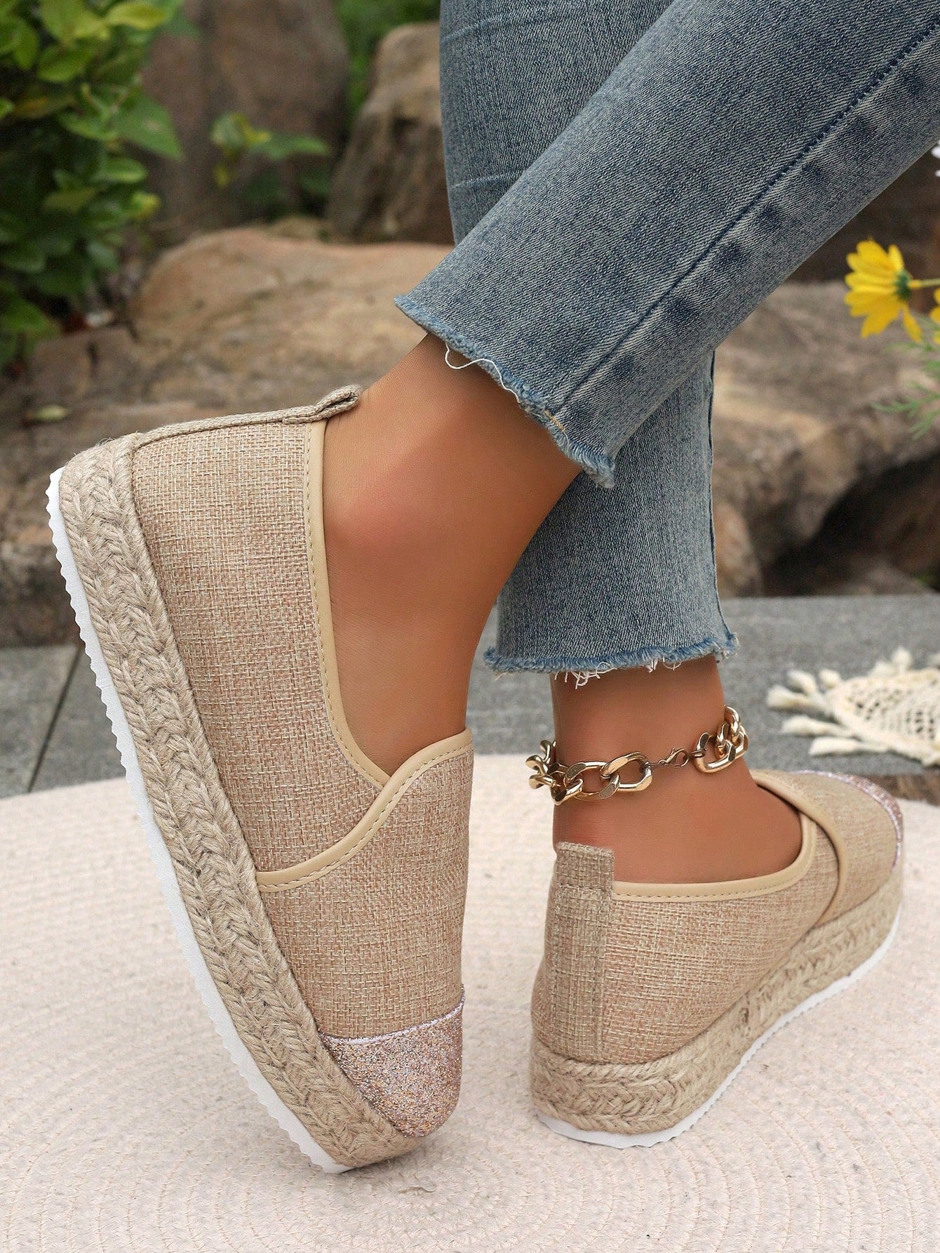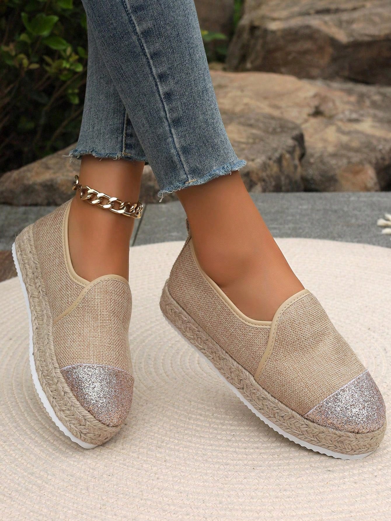 أحذية صيفية 2024 بنعل سميك ونعل سميك كاجوال بدون كعب، منسوجة، قابلة للتنفس، مريحة، أحذية مسطحة القاع، أحذية نسائية بمقاسات كبيرة