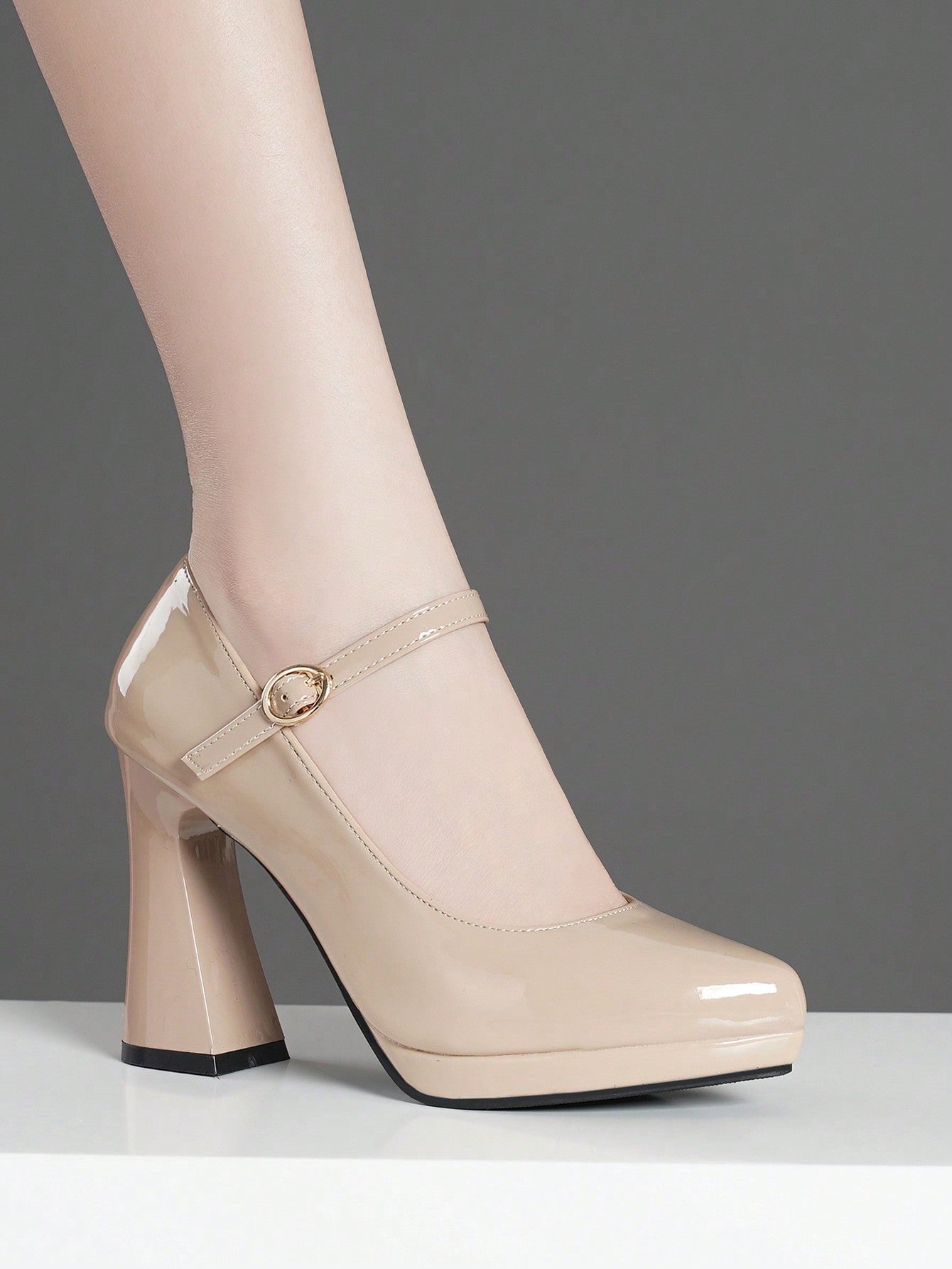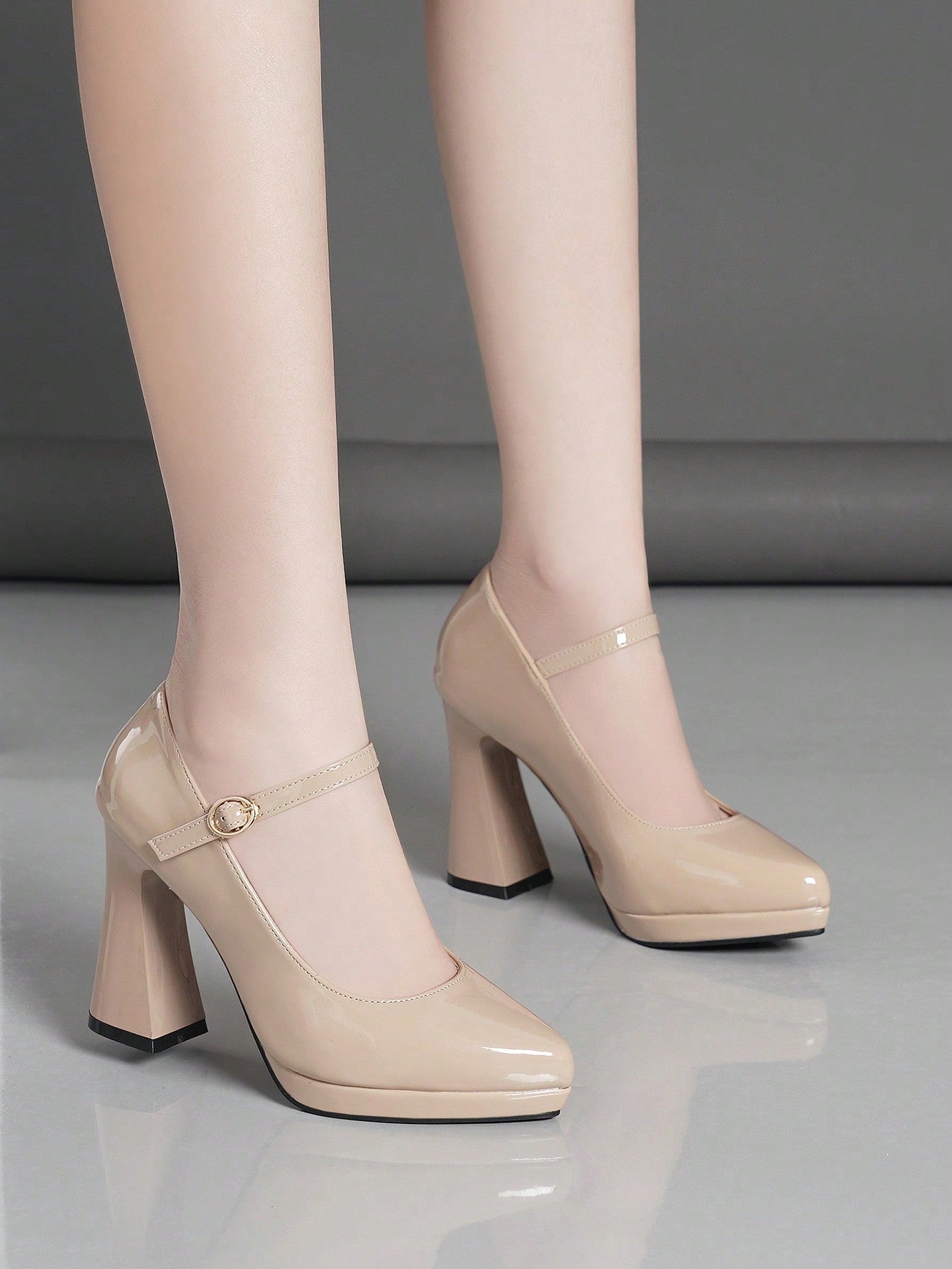 أحذية كعب عالي للنساء مع كعب سميك ونعل سميك وحزام الكاحل