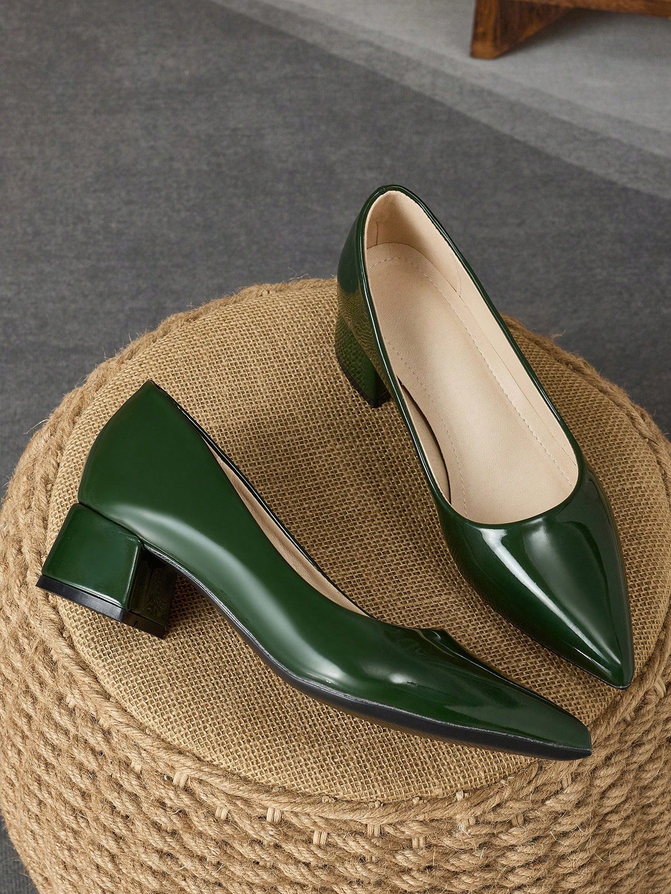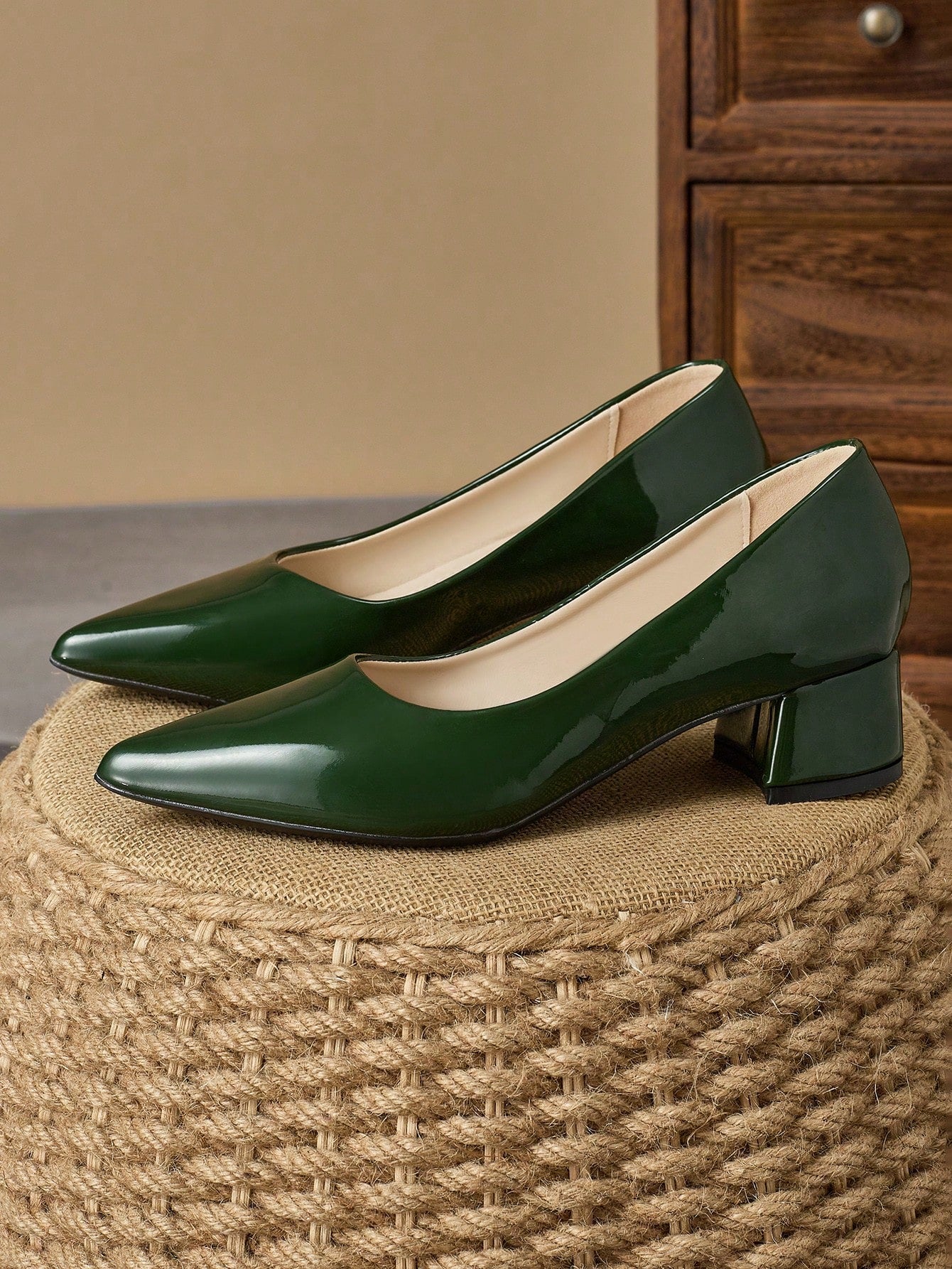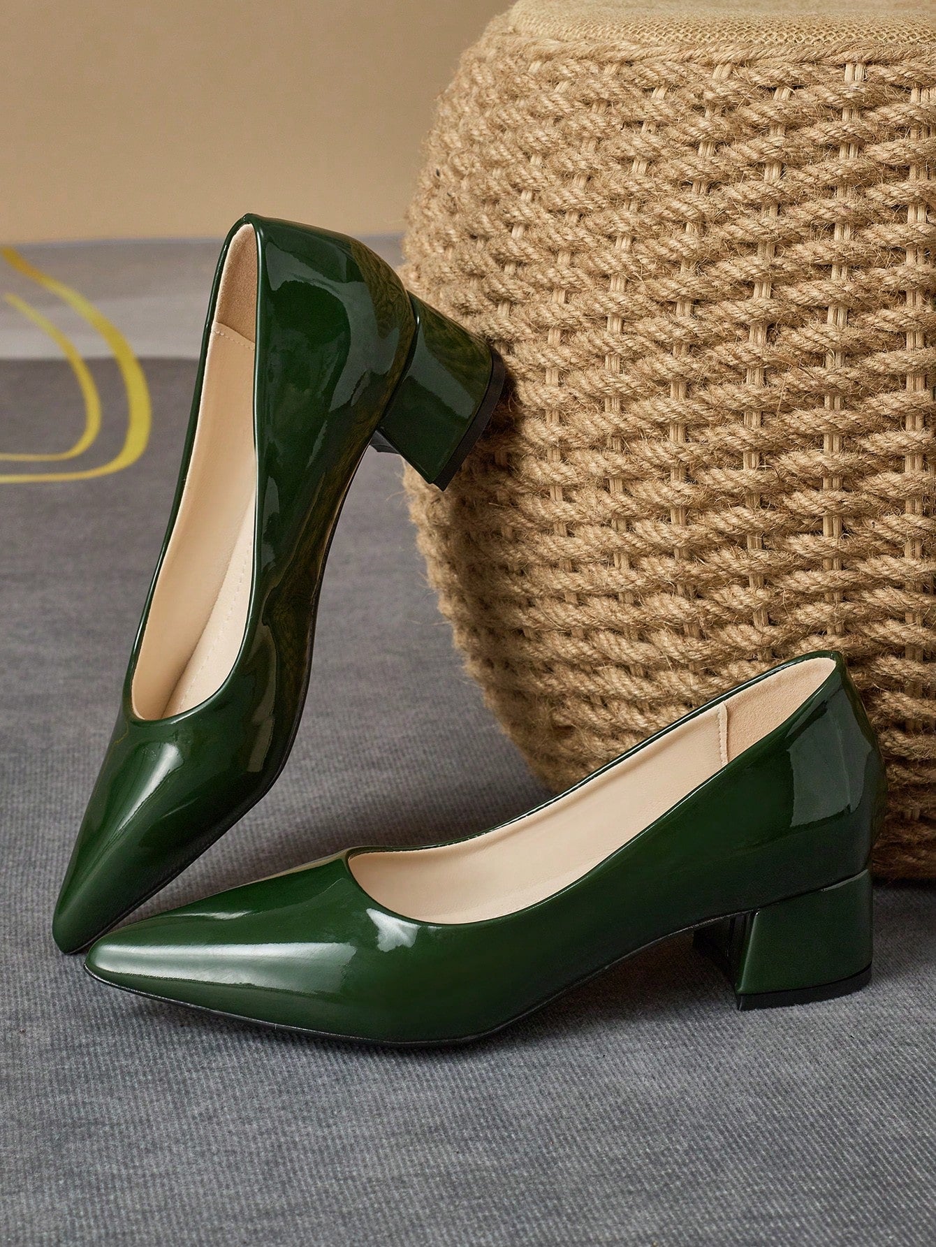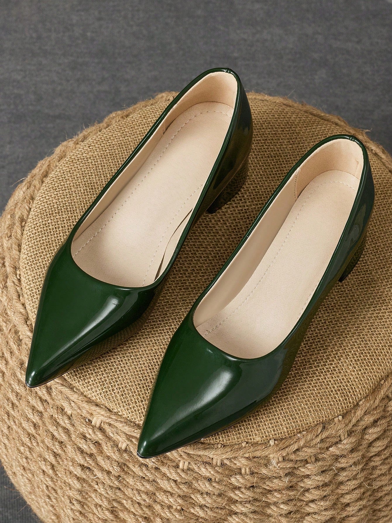 أحذية كعب مرتفع نسائية بتصميم عصري: طرف حاد باللون الأخضر