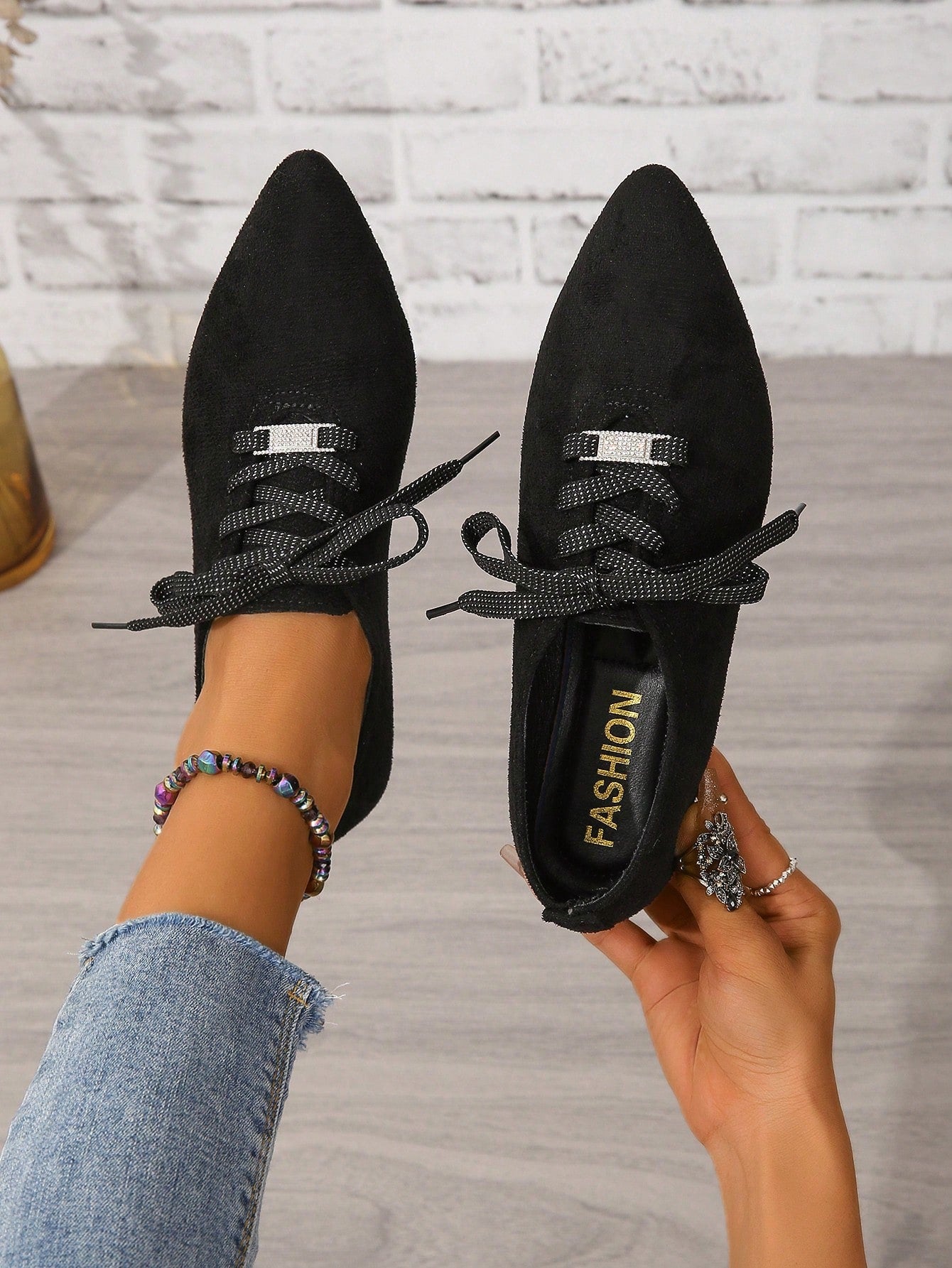 أحذية مسطحة للنساء الموضة اصبع مدبب رباط مريح