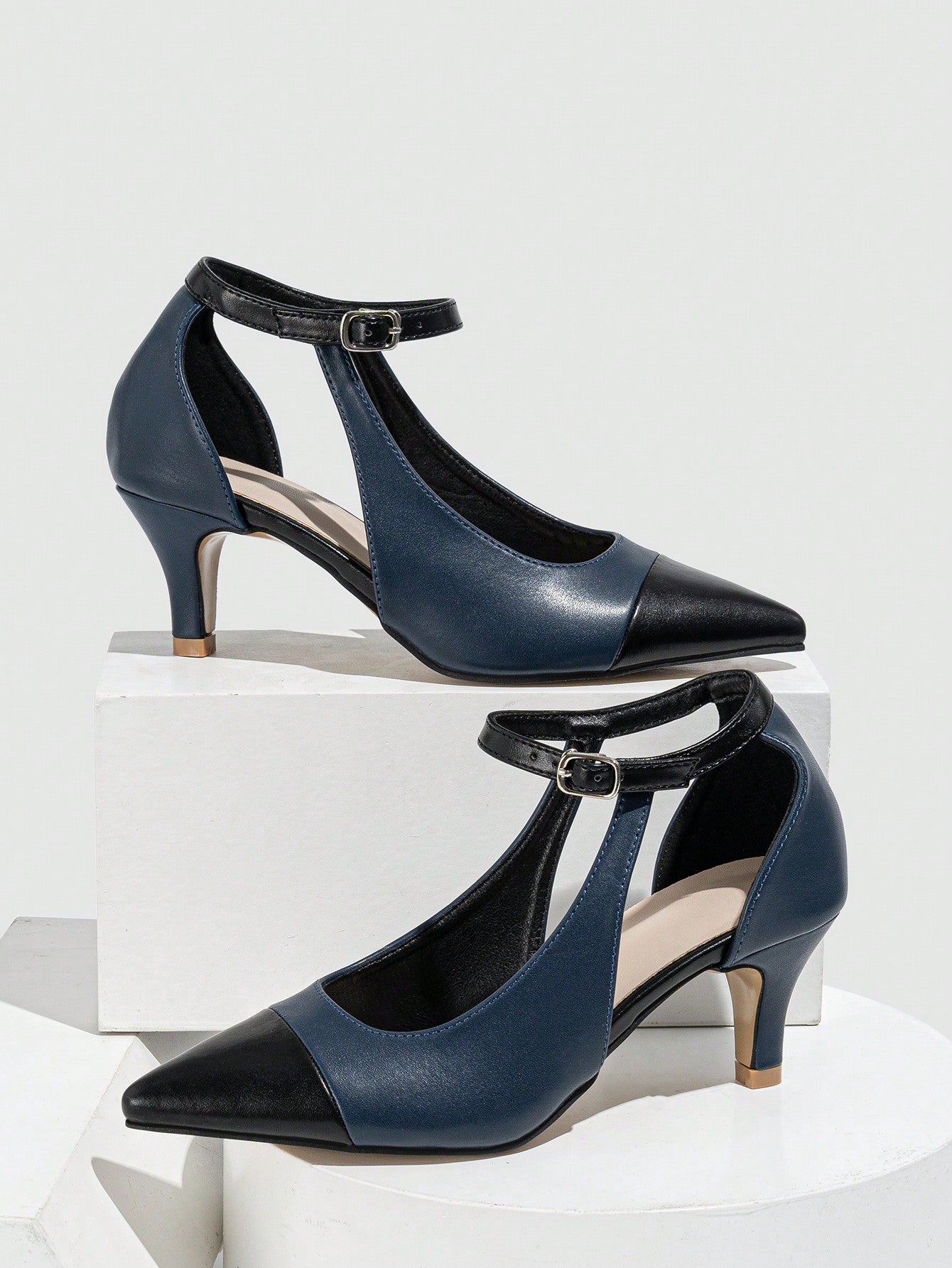 أحذية نسائية عالية الكعب بدون رباط ذات أصابع مدببة للارتداء العادي في الربيع والصيف والخريف بتصميم كتل الألوان