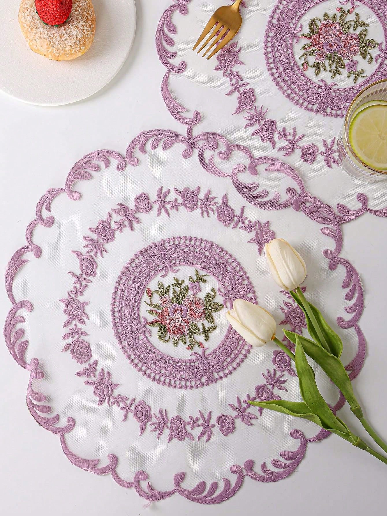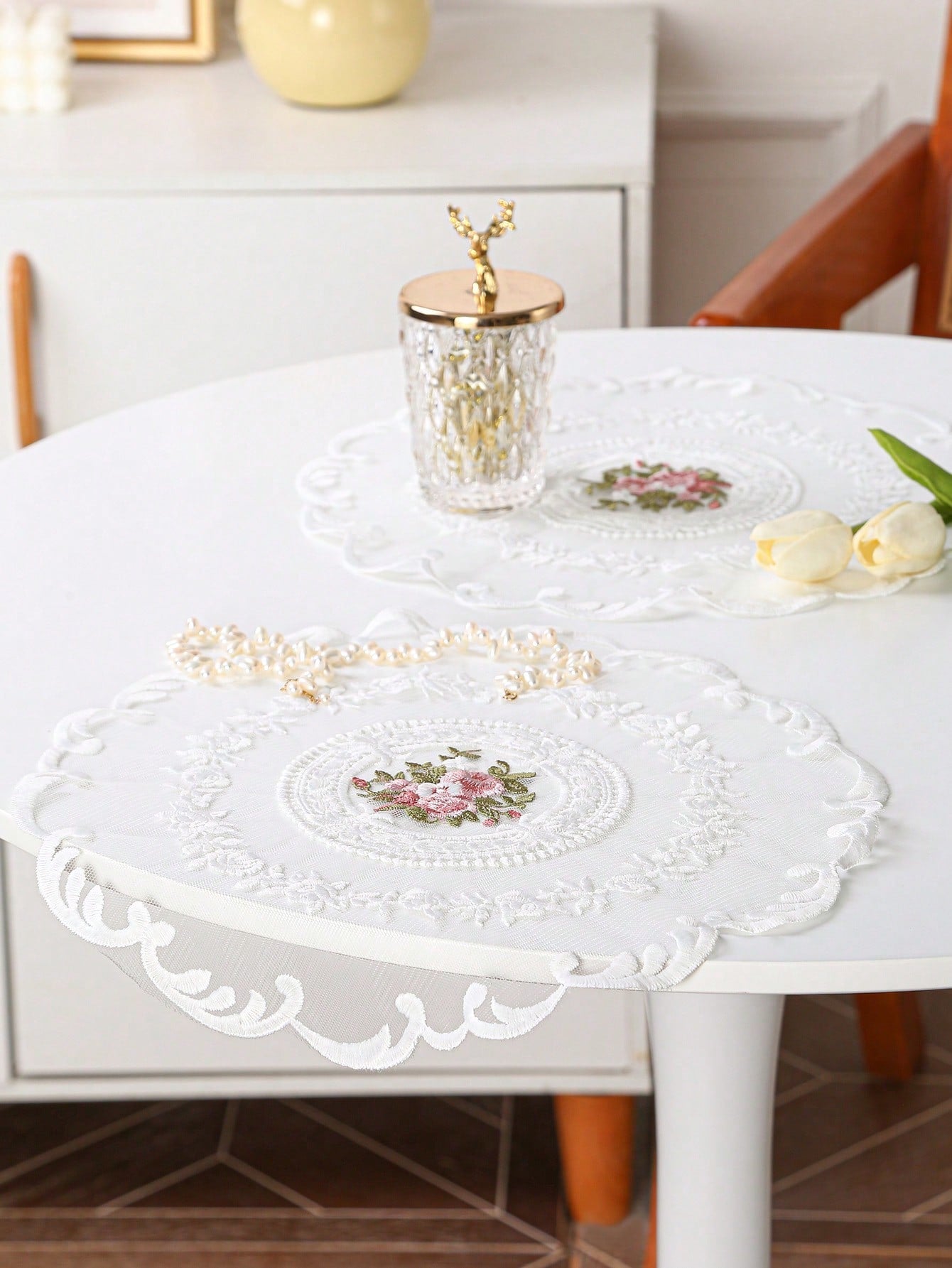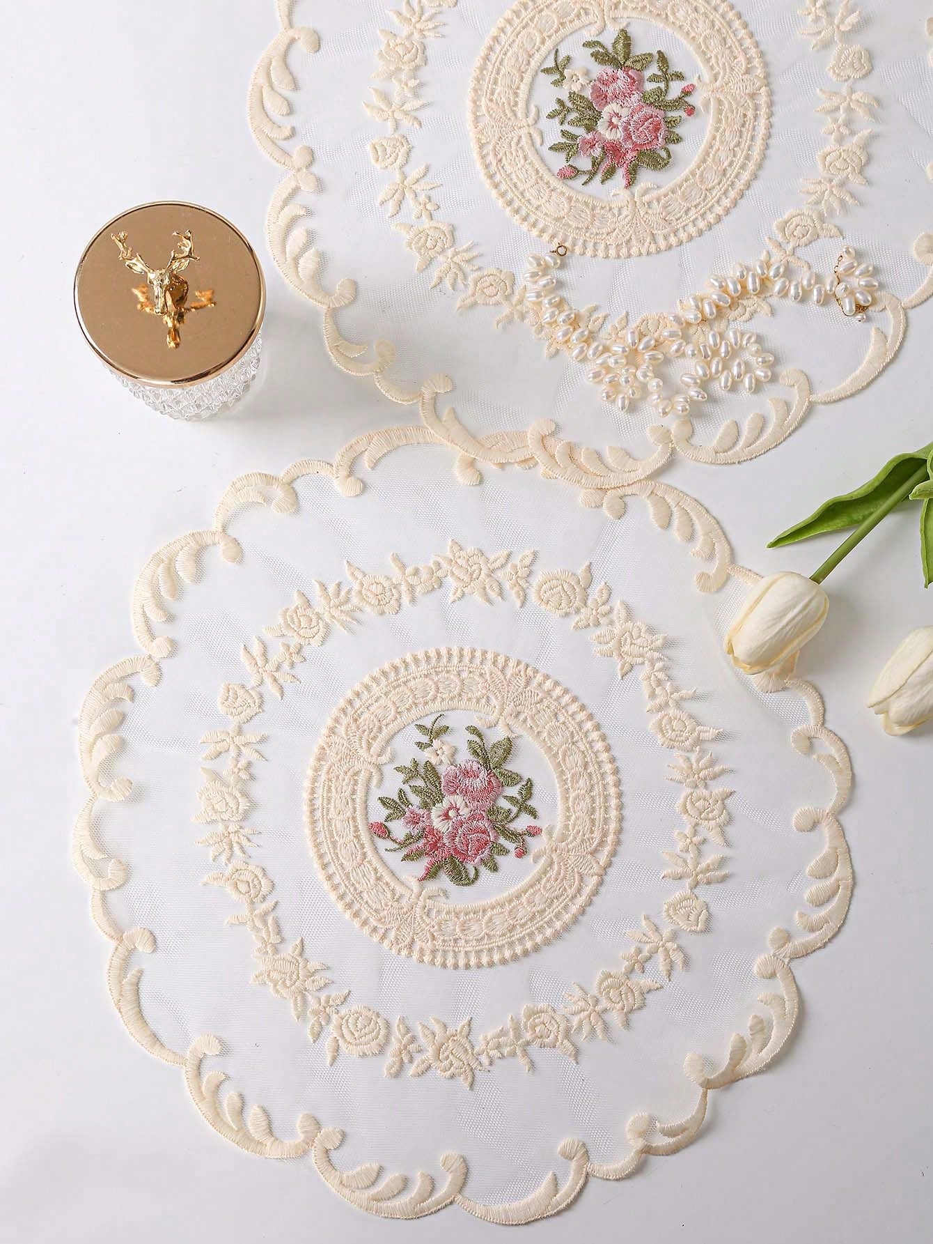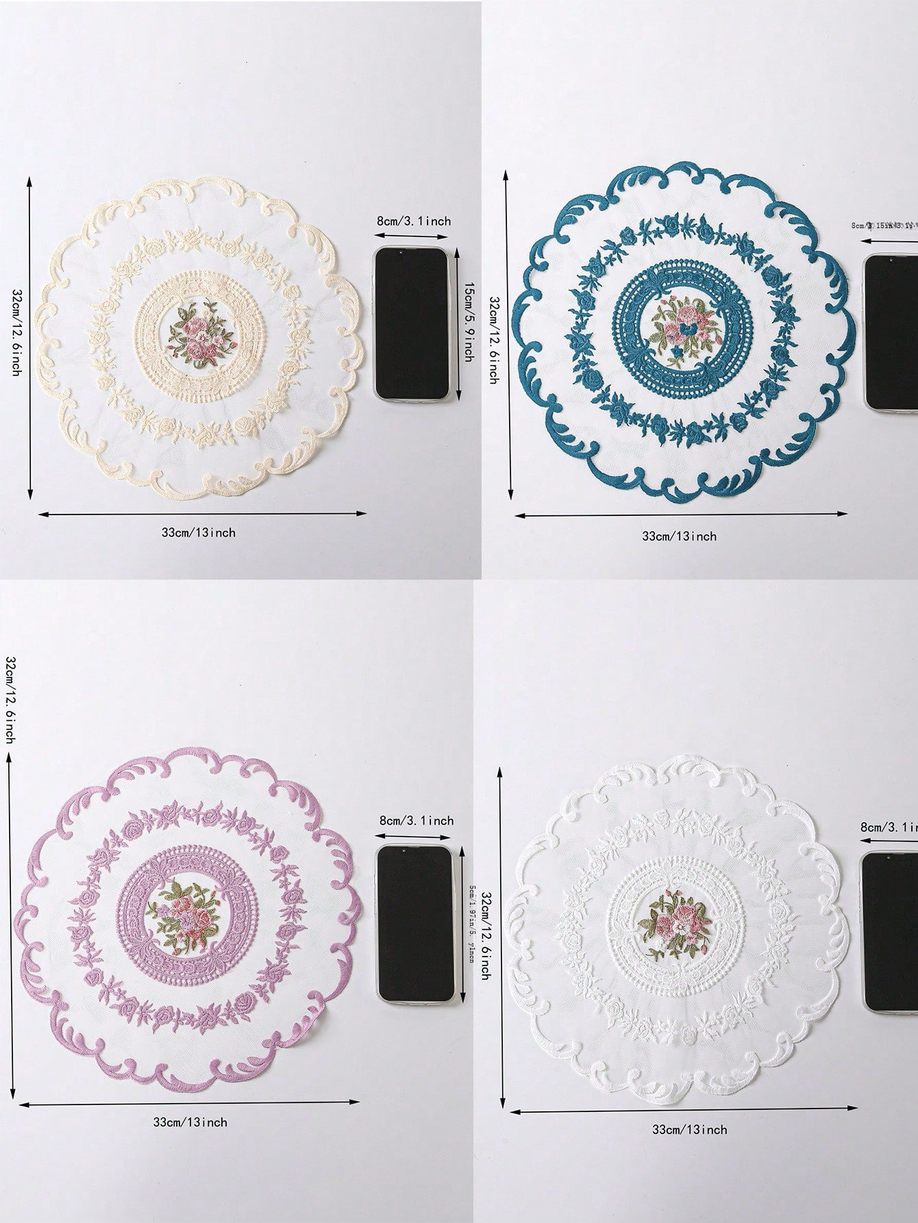 أطباق الوضع الدائرية المطرزة بالزهور والدانتيل للمطبخ/ديكور طاولة الطعام، عازلة للحرارة، مقاومة للخدش والاتساخ