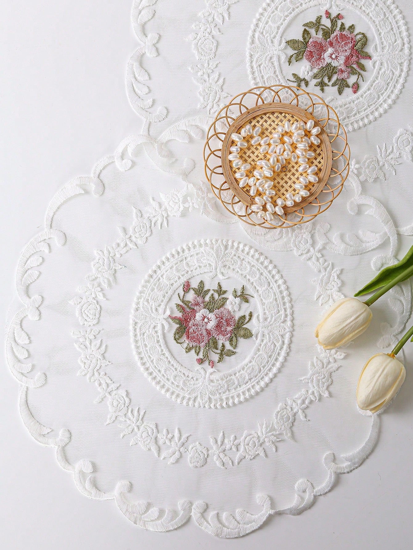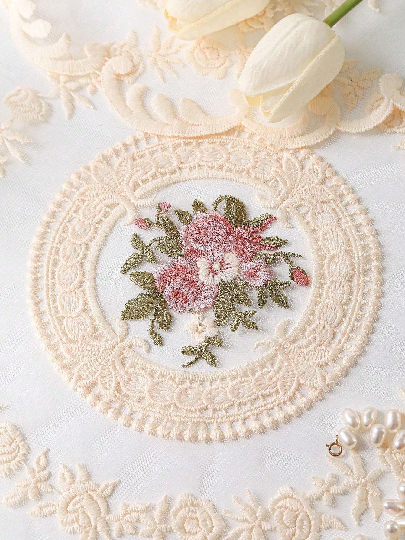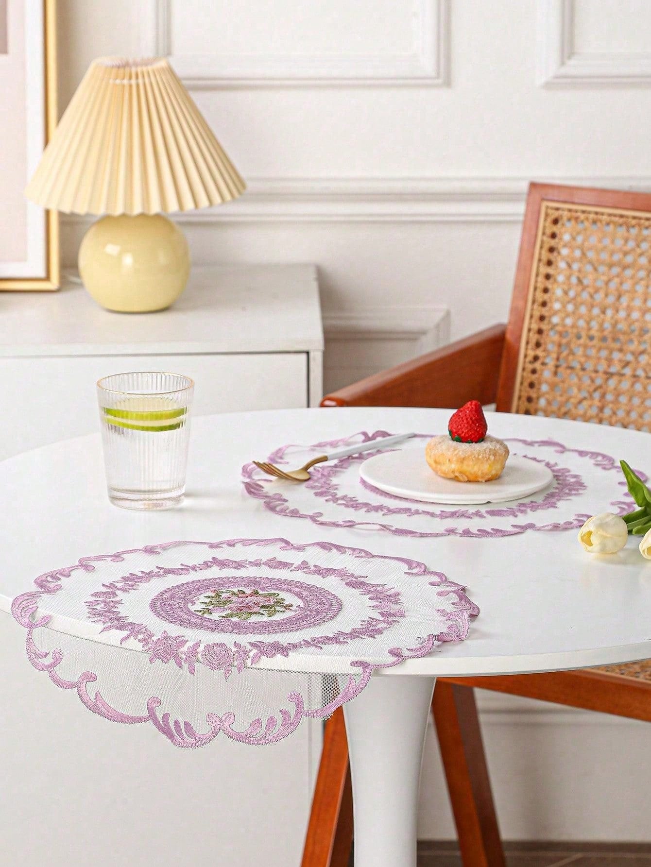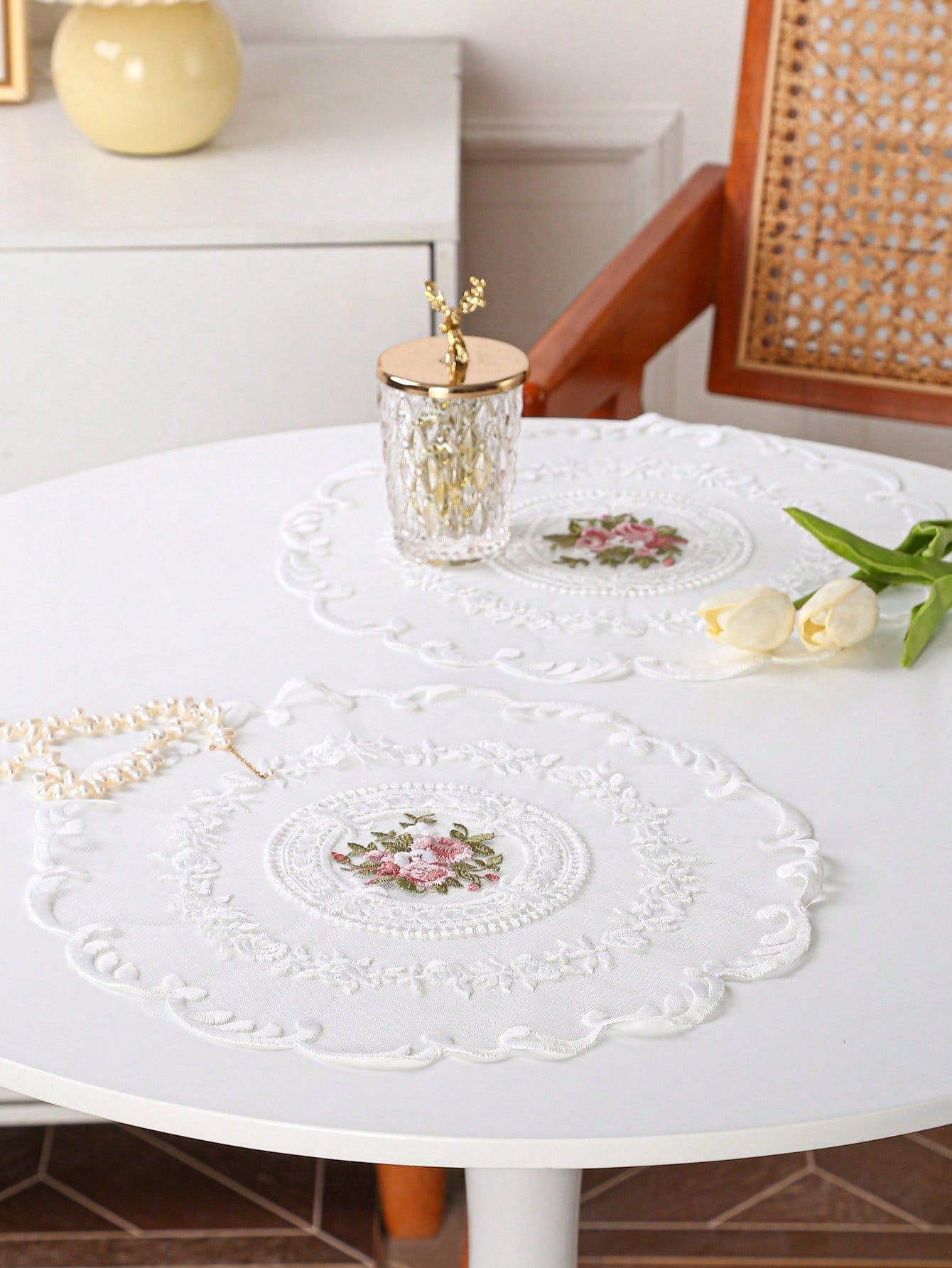 أطباق الوضع الدائرية المطرزة بالزهور والدانتيل للمطبخ/ديكور طاولة الطعام، عازلة للحرارة، مقاومة للخدش والاتساخ