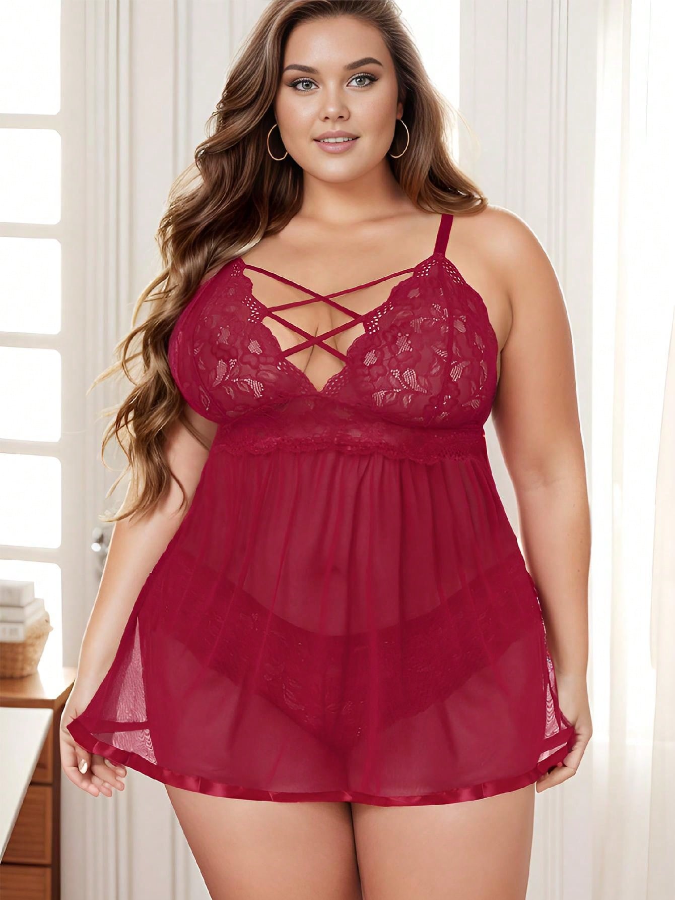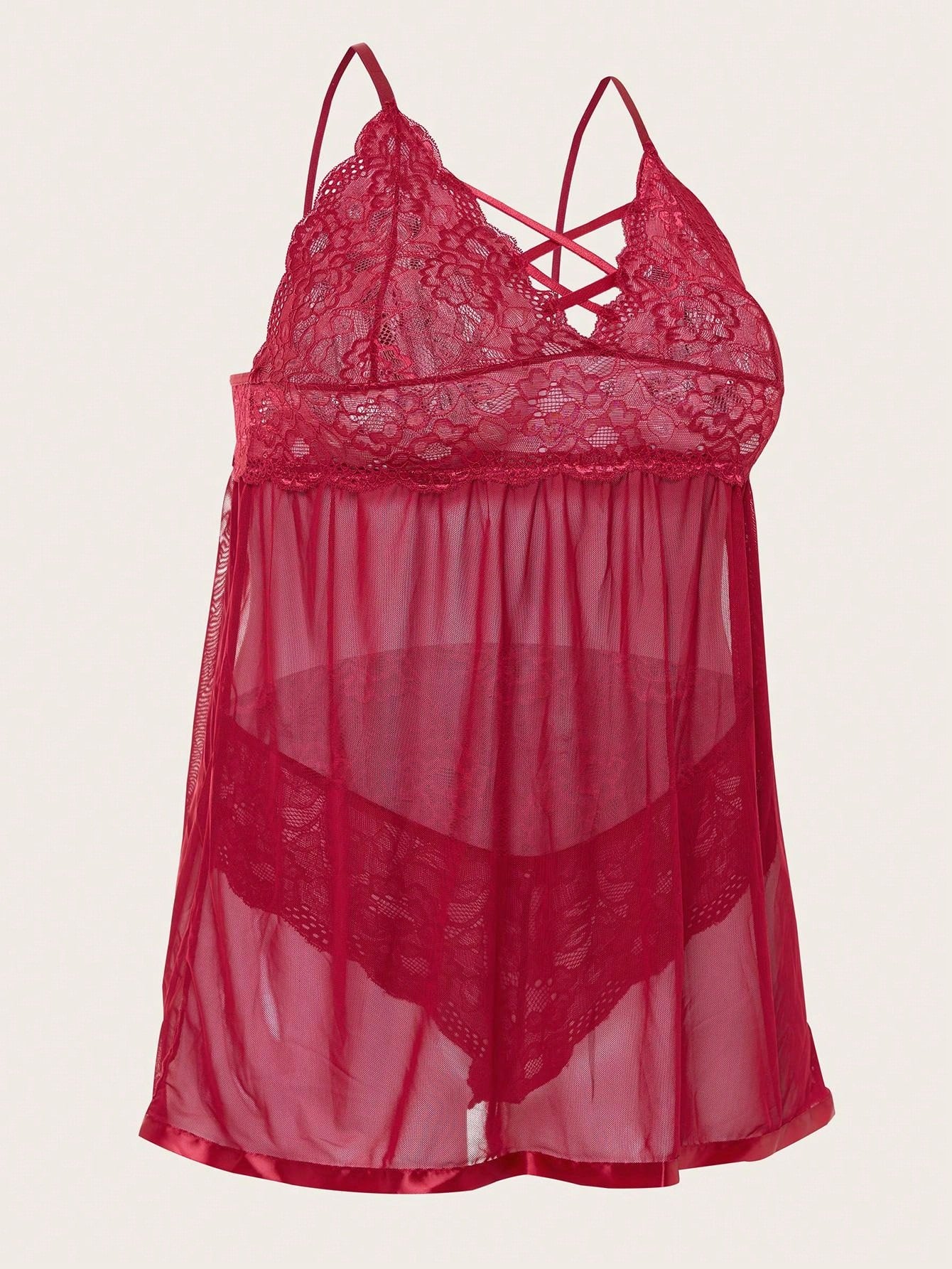 أطقم ملابس داخلية نسائية بمقاسات كبيرة، قميص بيبي دول مثير مفتوح الظهر من الدانتيل