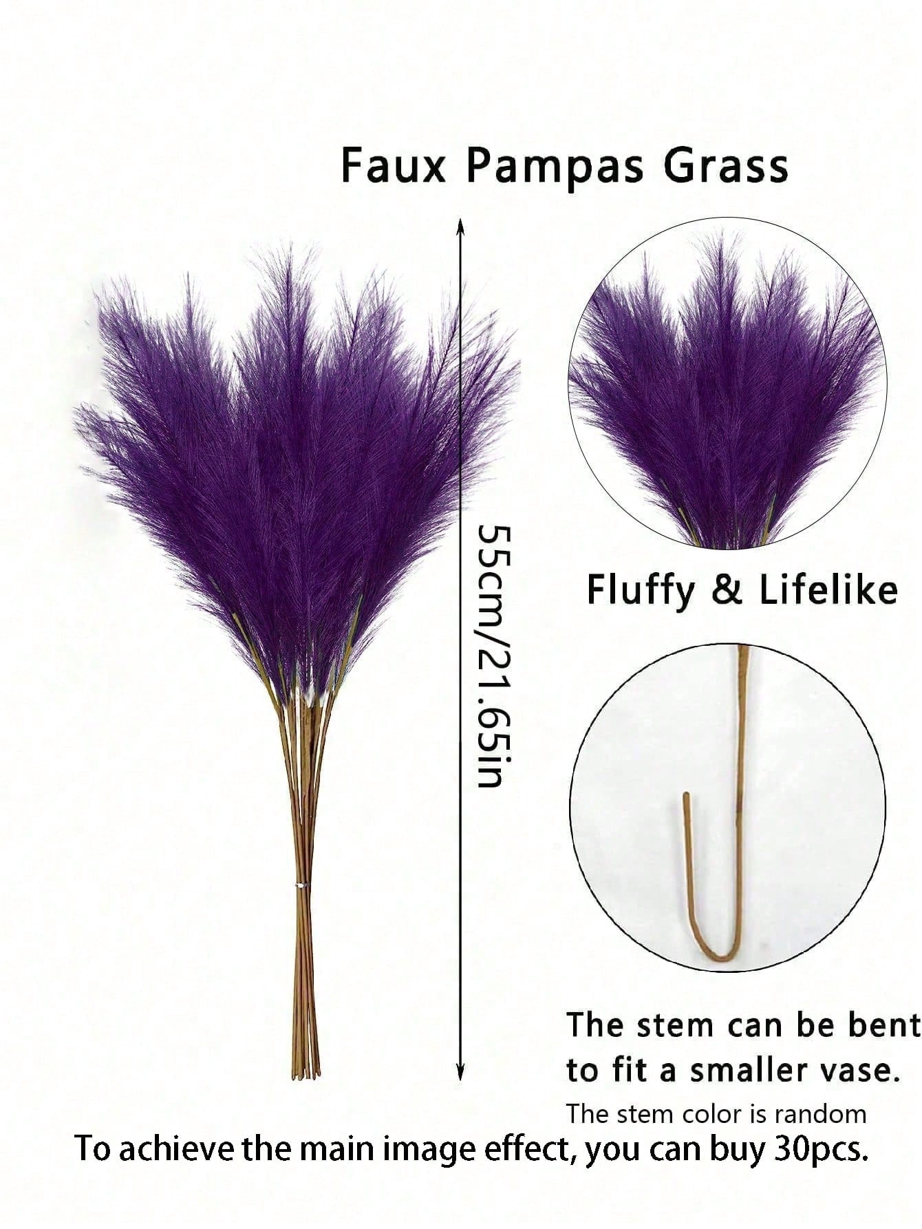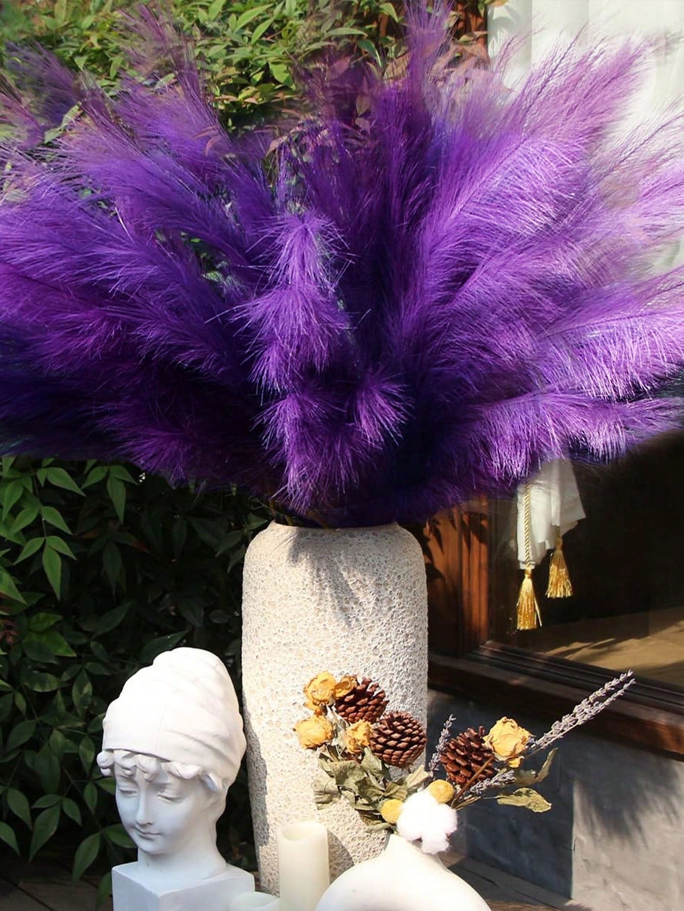 أعشاب الخيزران الصناعي باللون البنفسجي الداكن، ديكور بوهيمي