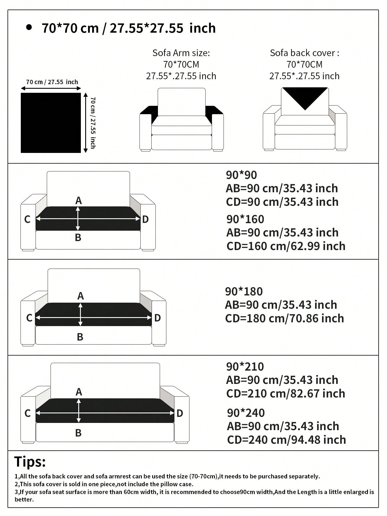 | أغطية ظهر الكنبة | 70 | 70 |