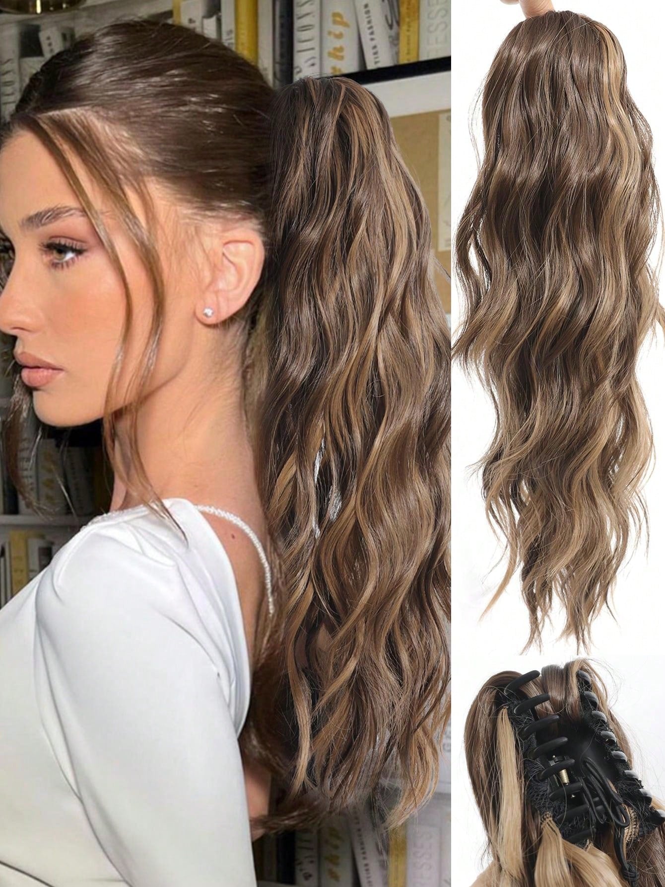 إضافة شعرية مموجة في ذيل حصان طويل بطول 18 بوصة