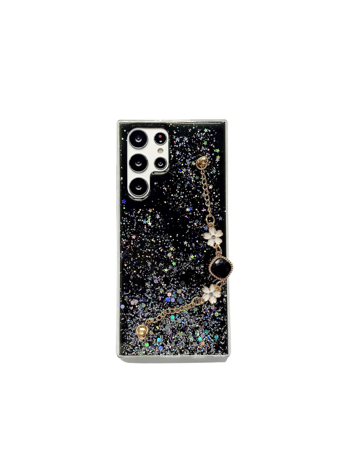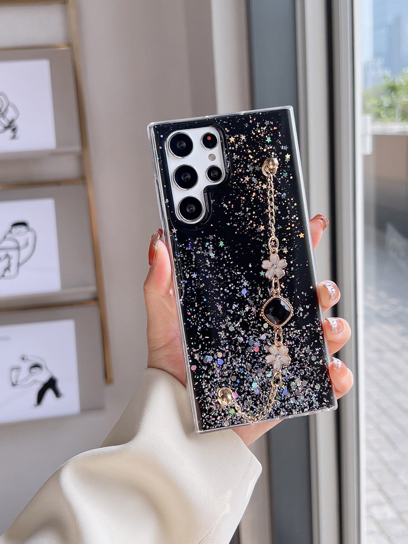إطار هاتف سيليكوني مع تعليقة هاتف قطعة واحدة مزين بحجر راين فضائي