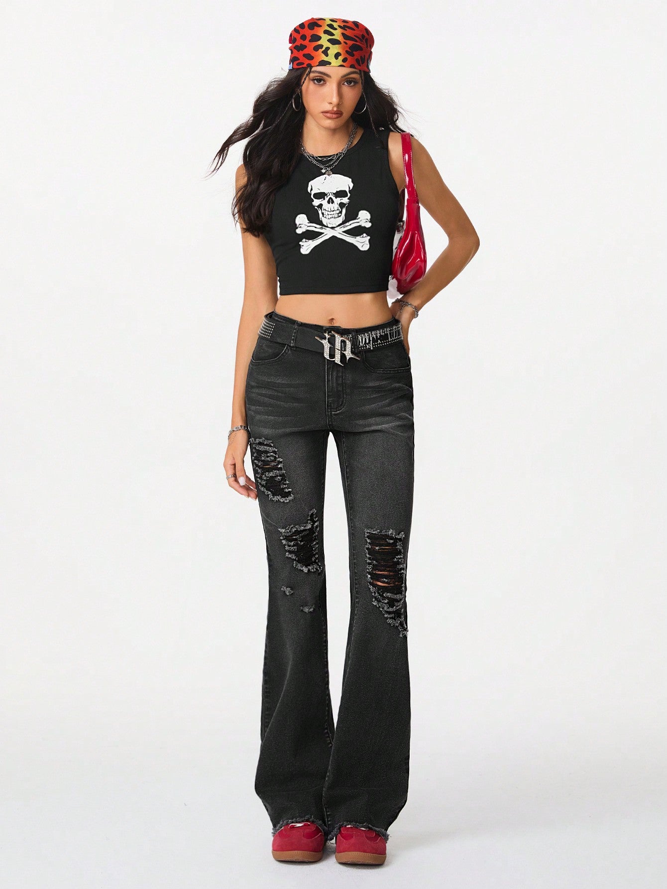 المتعثر باللون الأسود القابل للتمدد من قماش الدنيم المتوهج للهالوين