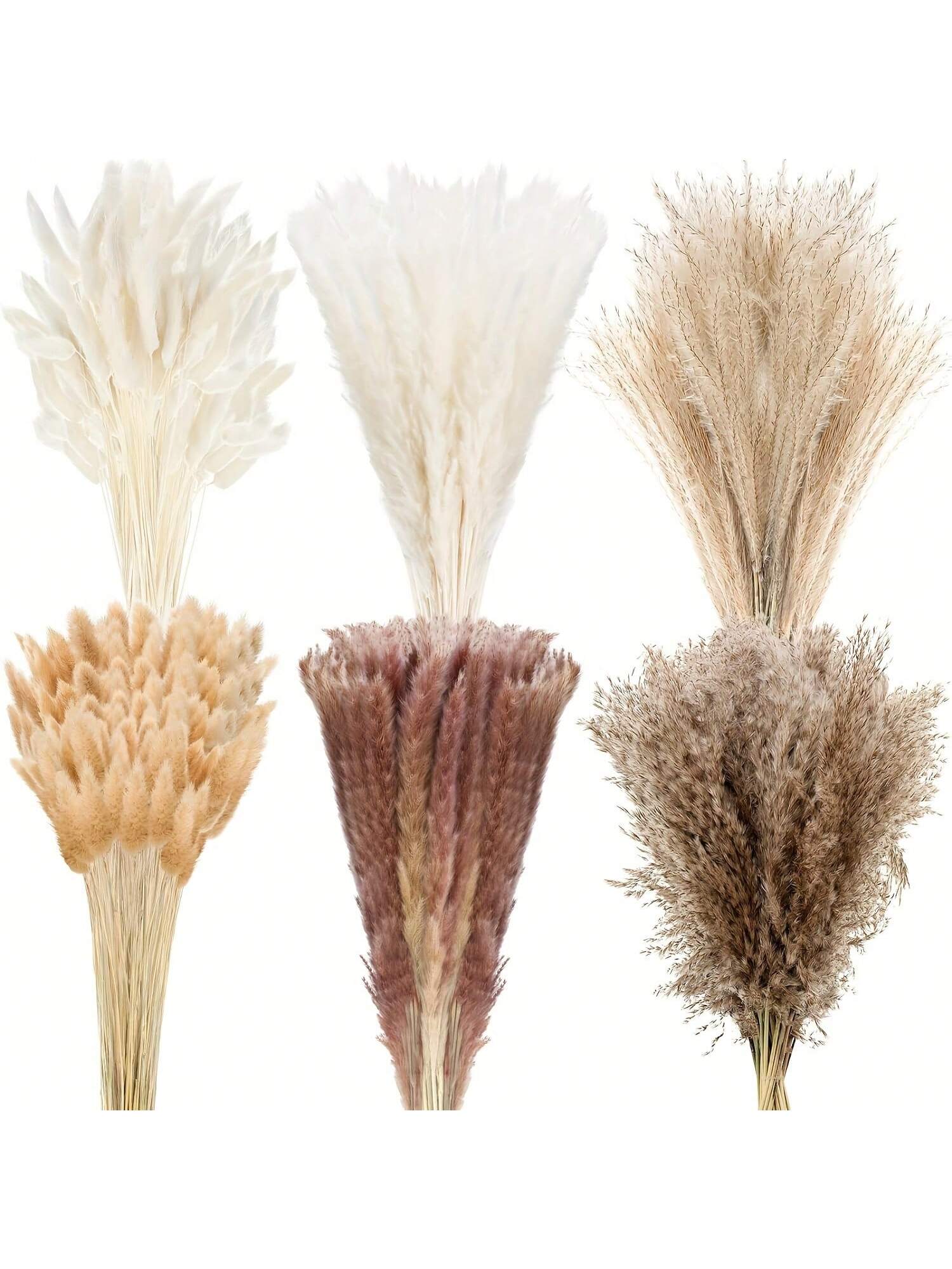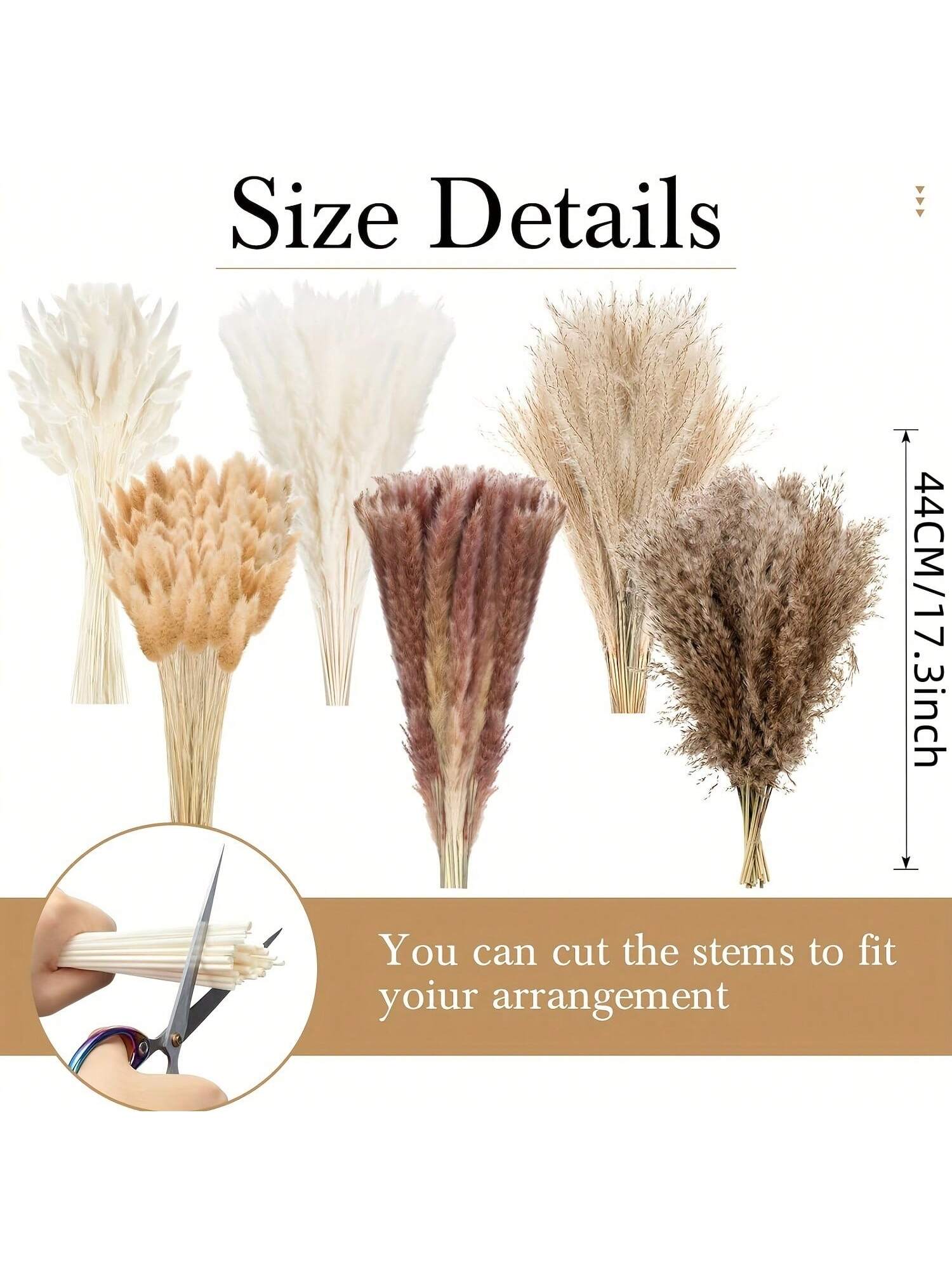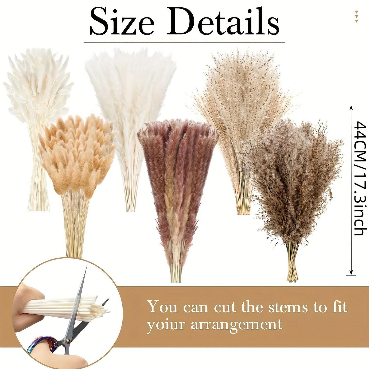 باقة من أوراق المجففة 220 قطعة، 17.3 بوصة (حوالي 44 سم)، باقة ذيل الأرنب، نمط بوهيمي للديكور الزفاف والمنزل وطاولة العشاء والحفلات