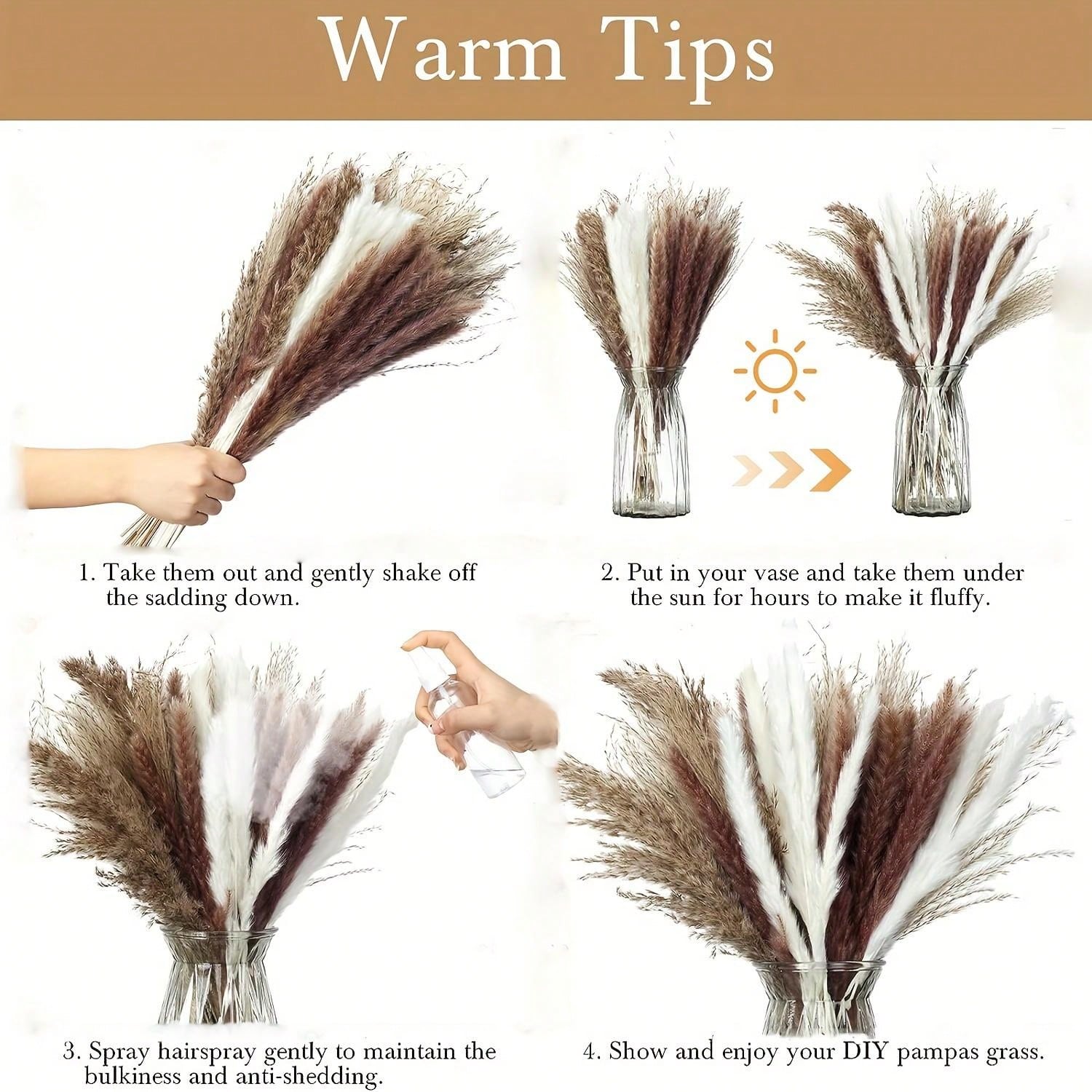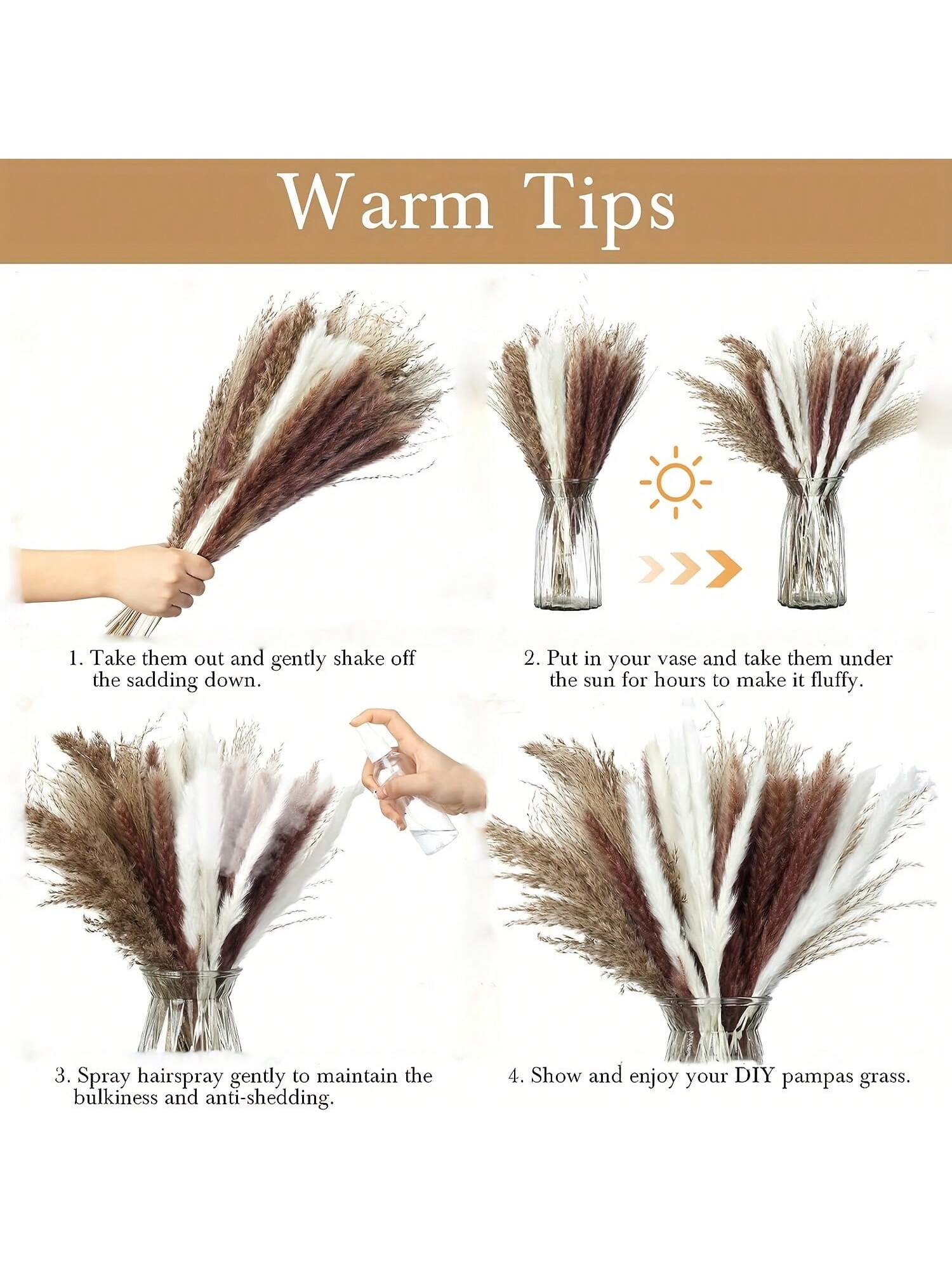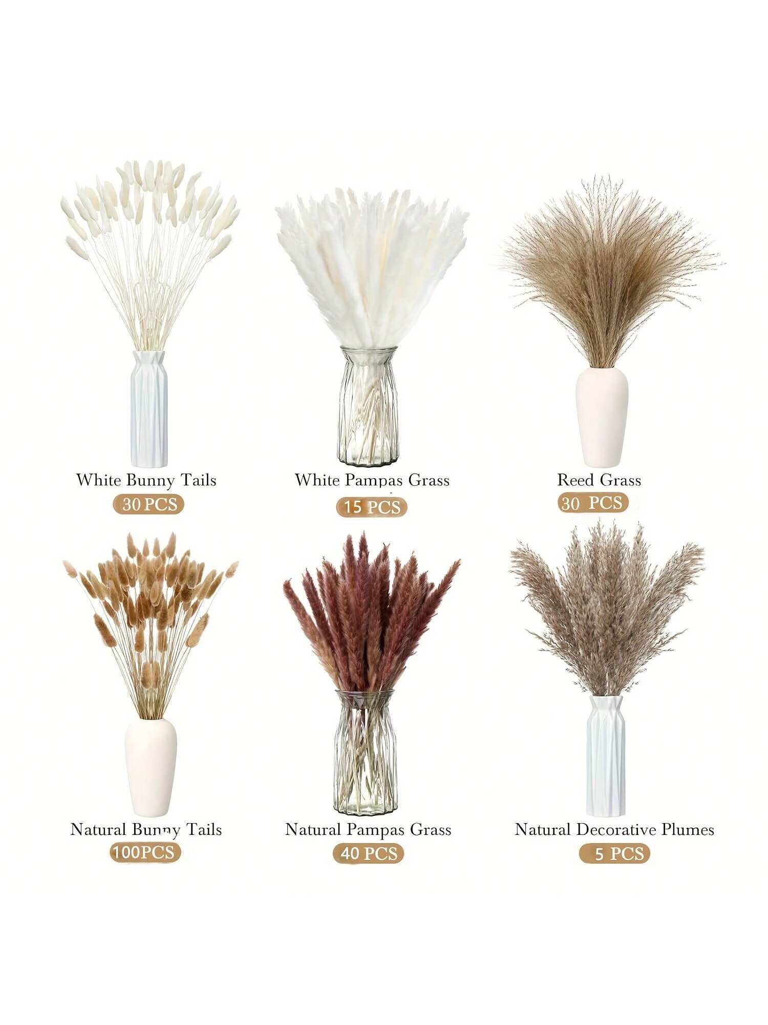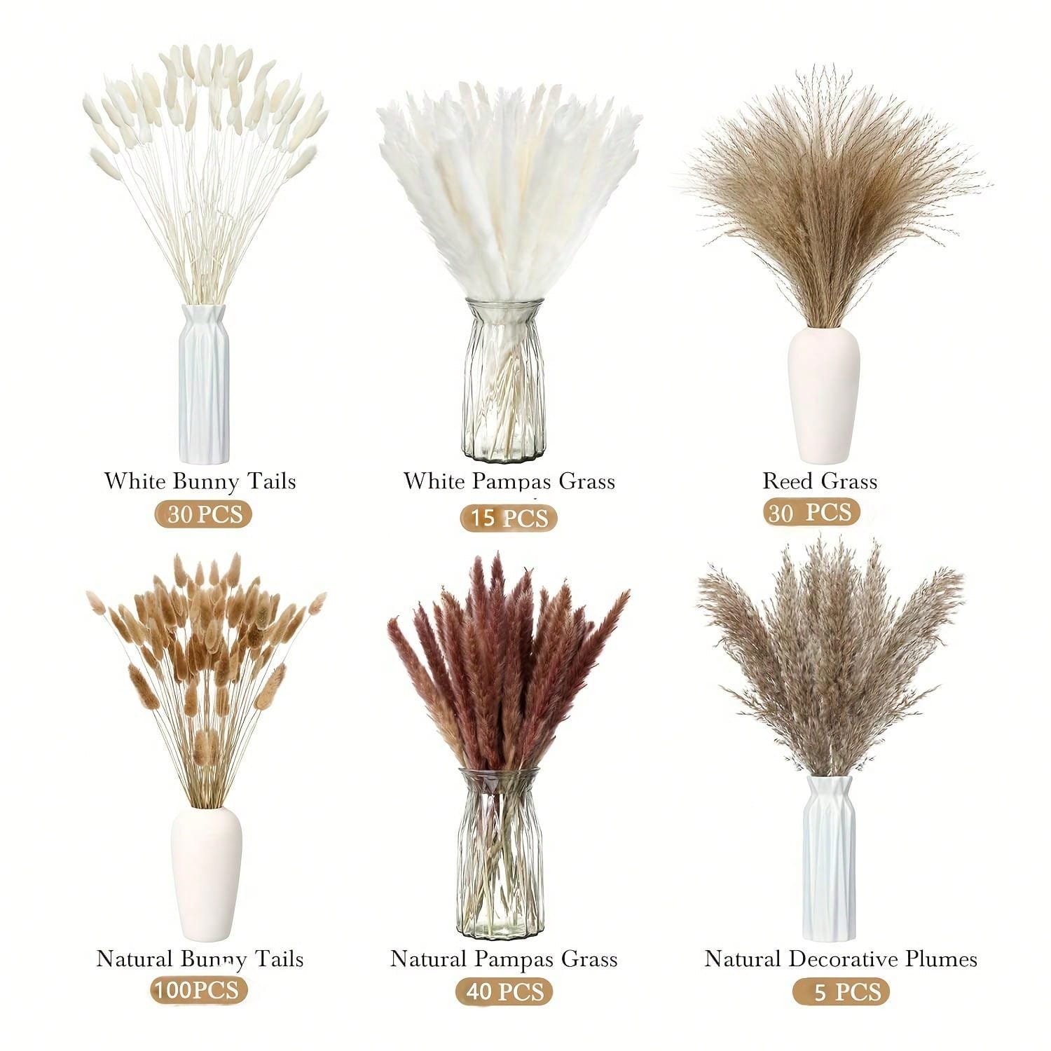باقة من أوراق المجففة 220 قطعة، 17.3 بوصة (حوالي 44 سم)، باقة ذيل الأرنب، نمط بوهيمي للديكور الزفاف والمنزل وطاولة العشاء والحفلات