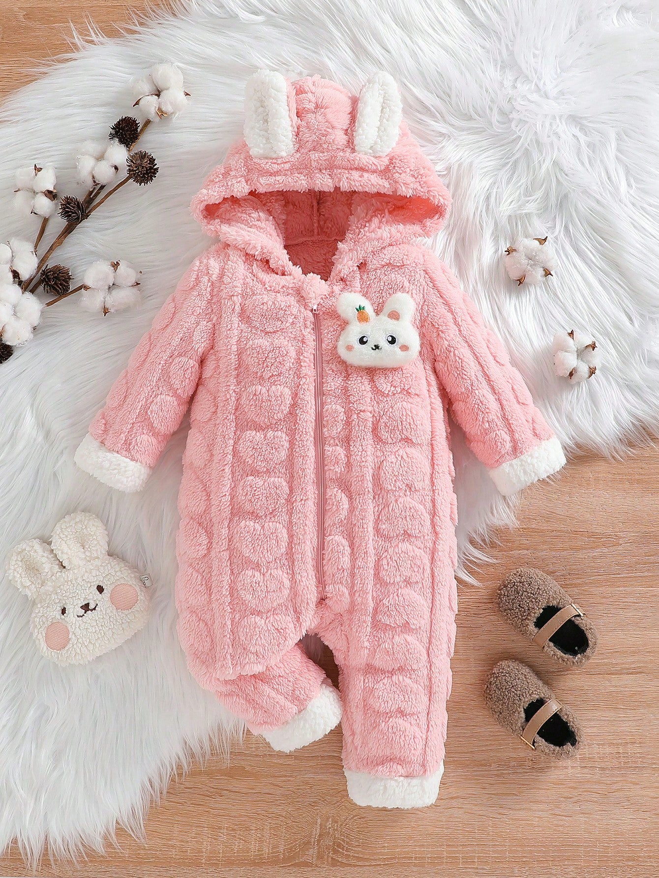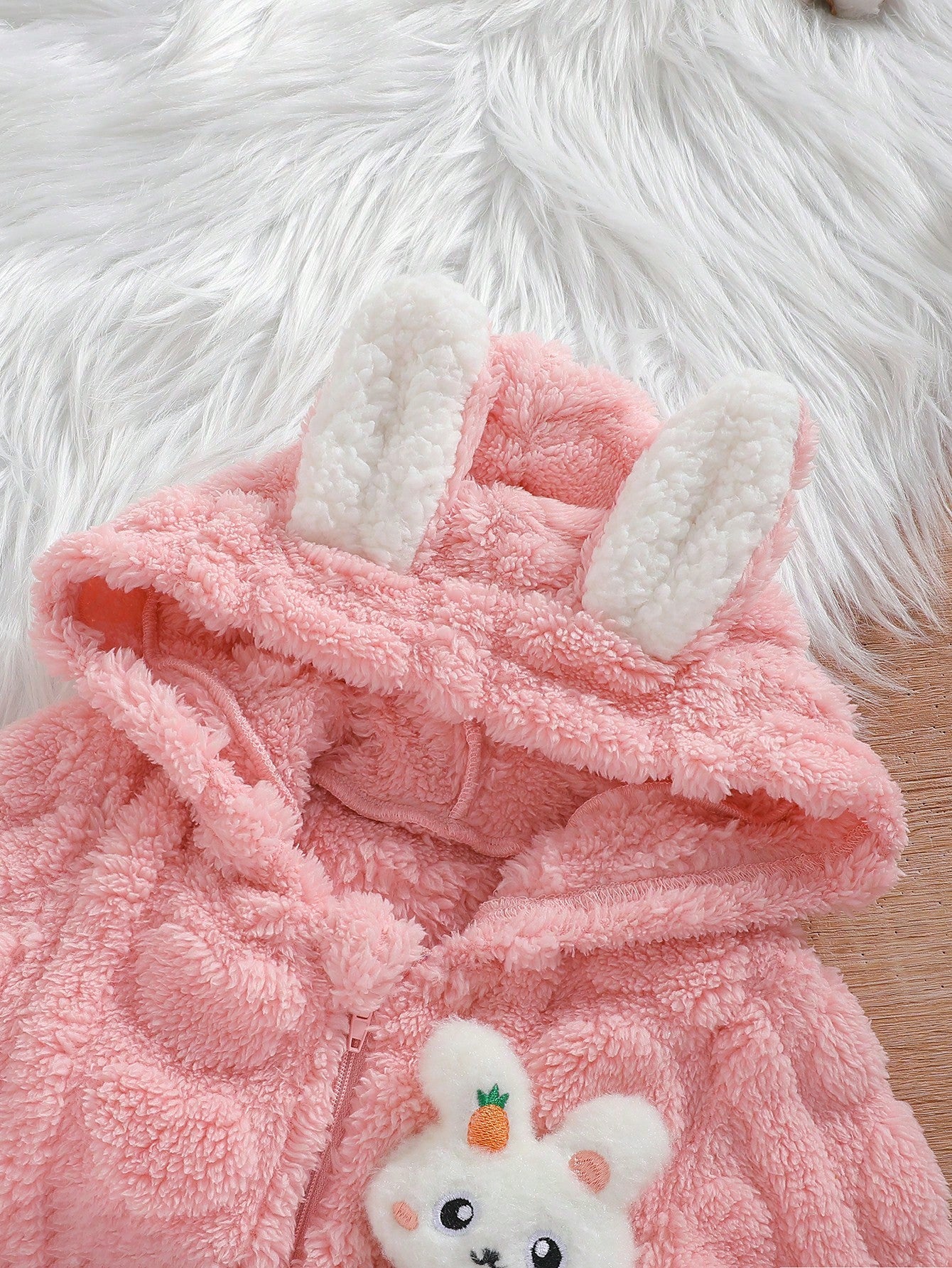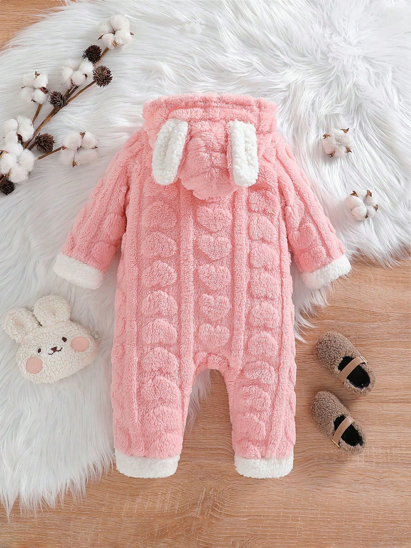 بدلة رومبر سميكة بأذنين الأرنب بغطاء للفتيات الرضع لفصل الشتاء