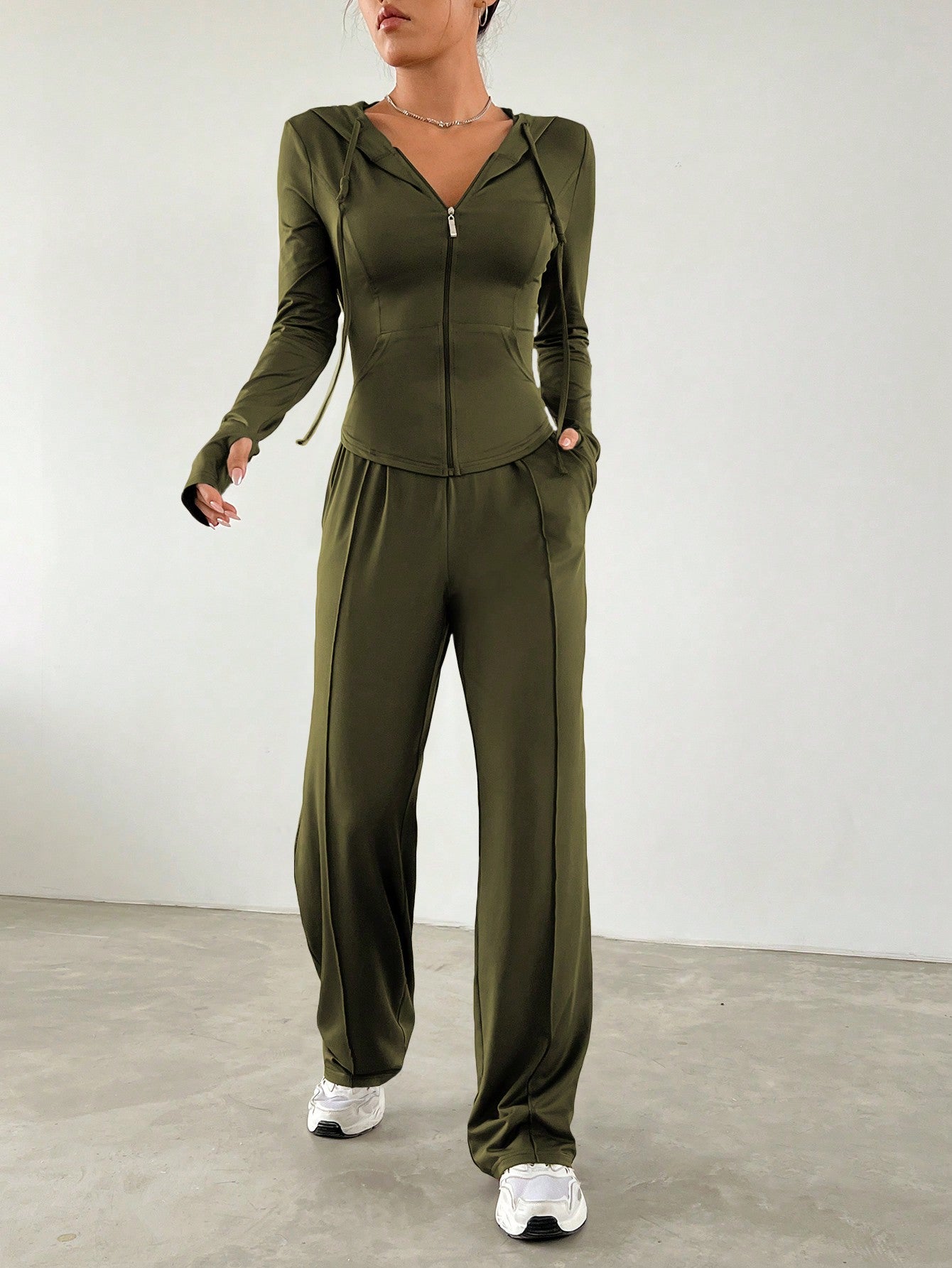 بدلة رياضية كاجوال بغطاء للرأس وقصة ضيقة وسروال مستقيم