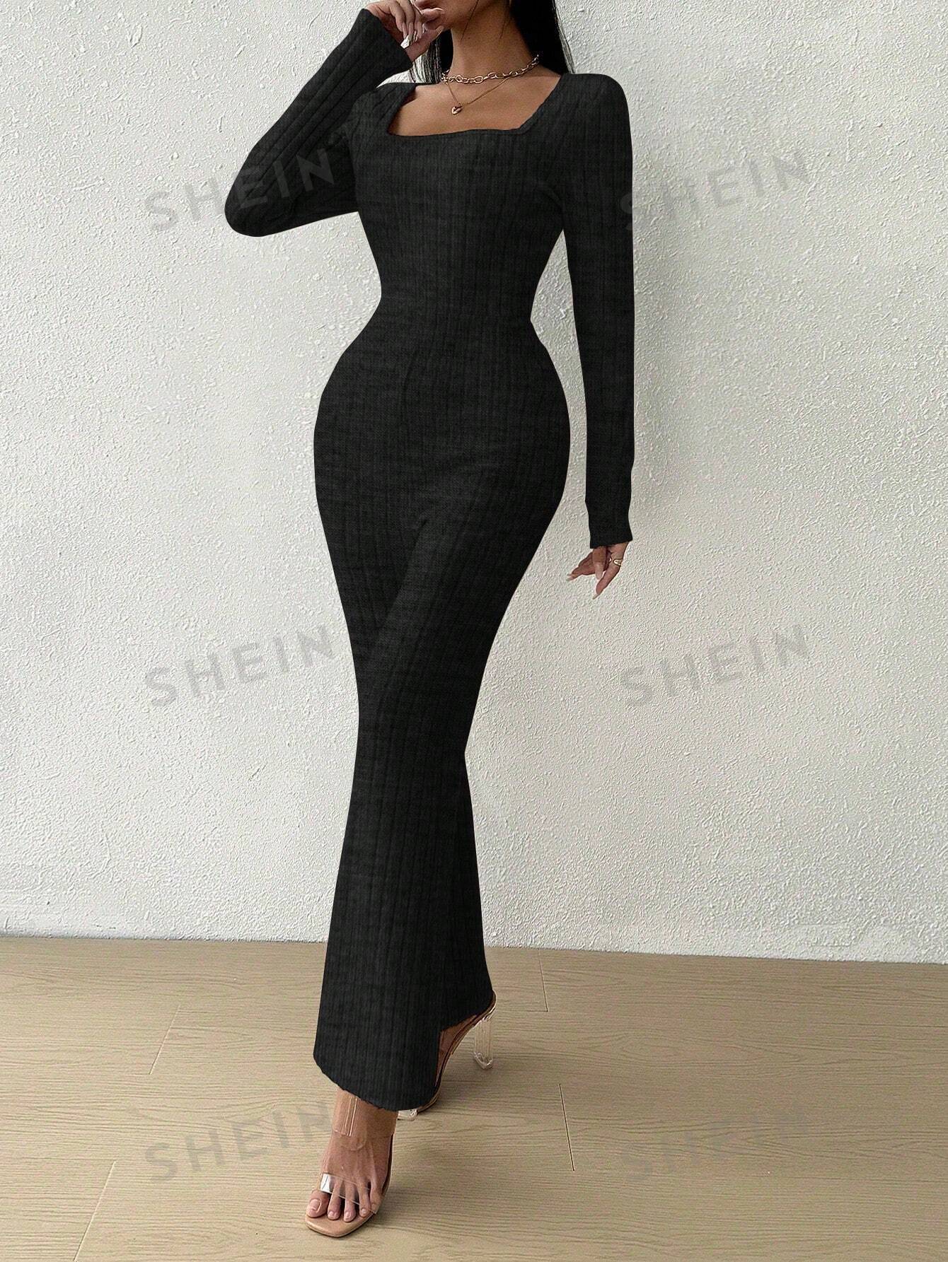 بدلة قفطان نسائية محبوكة باللون الصلب الأساسي