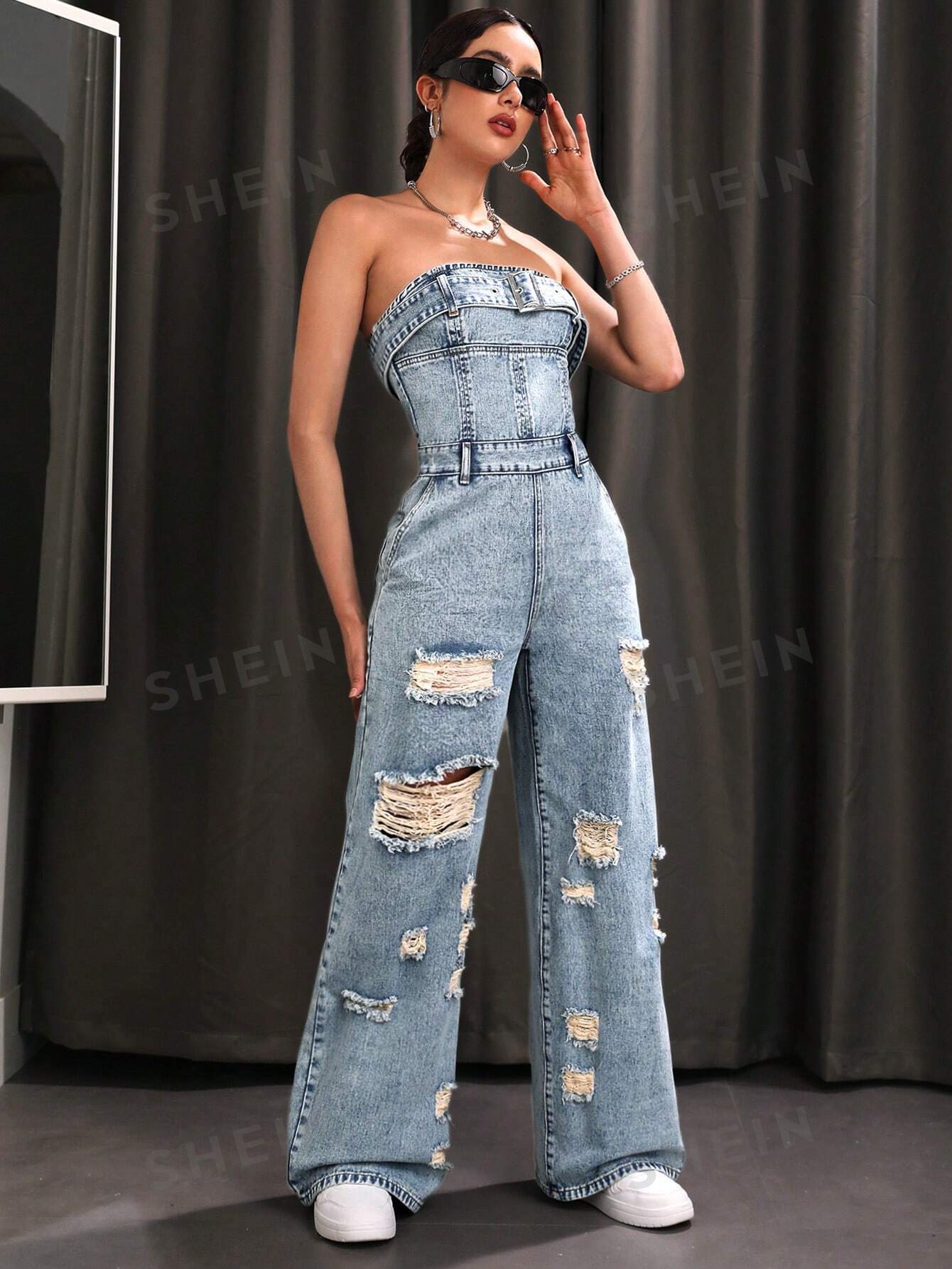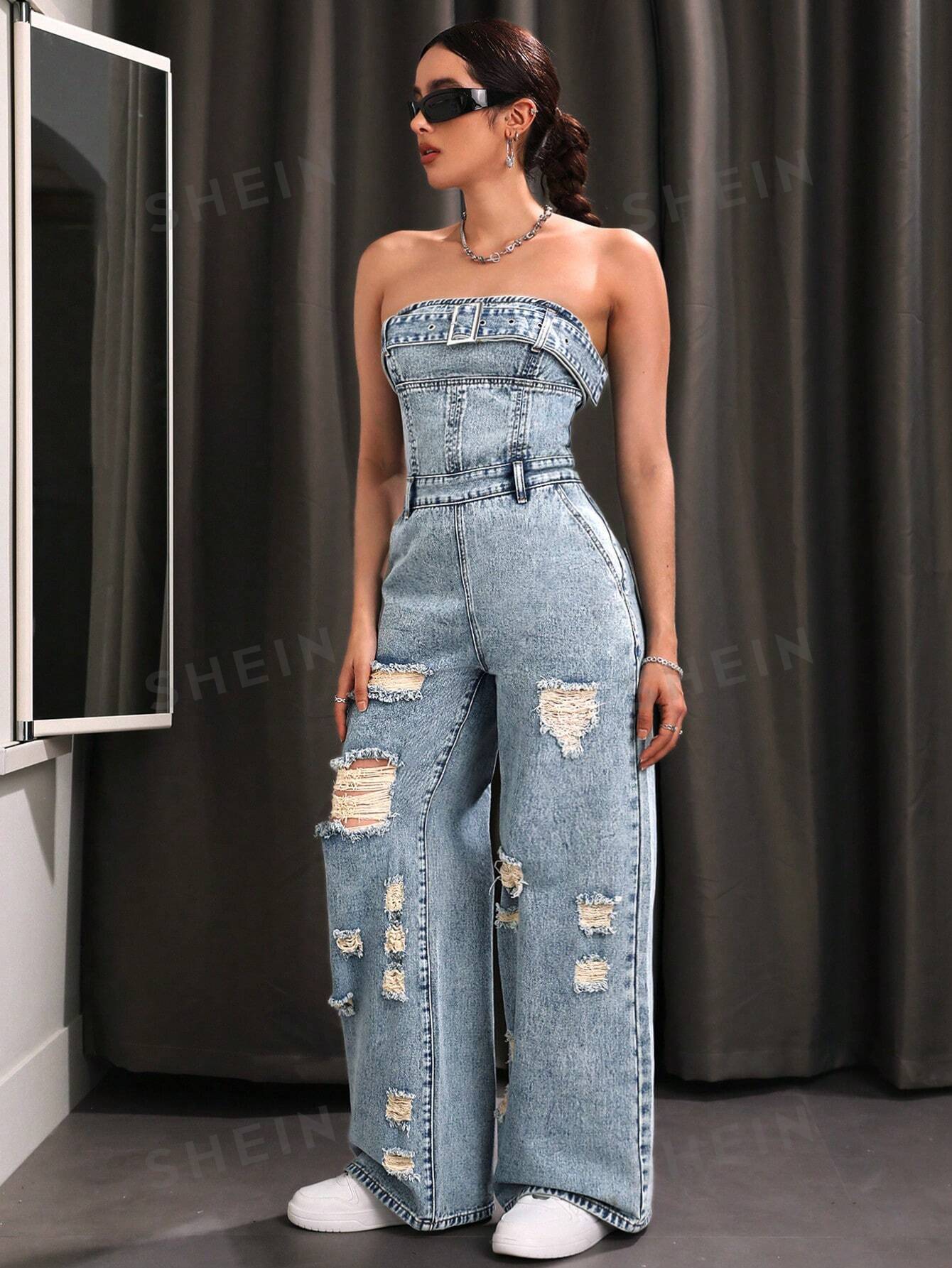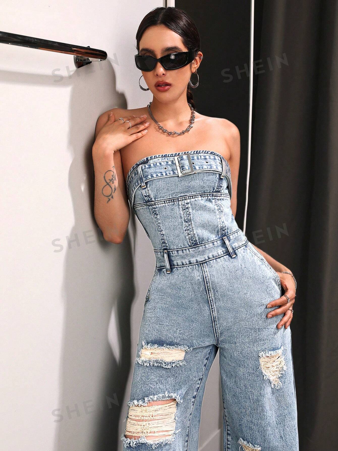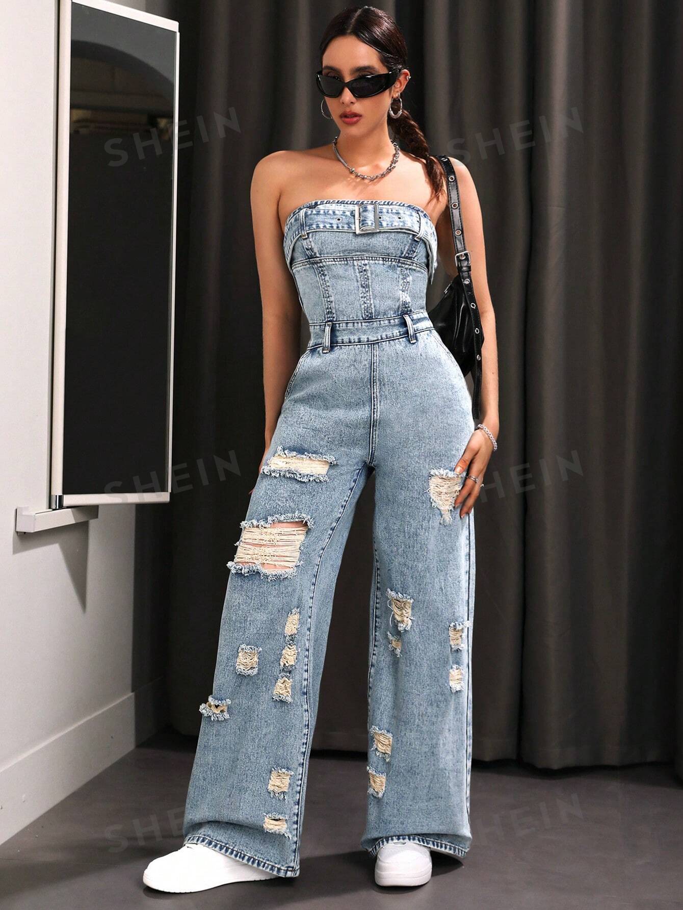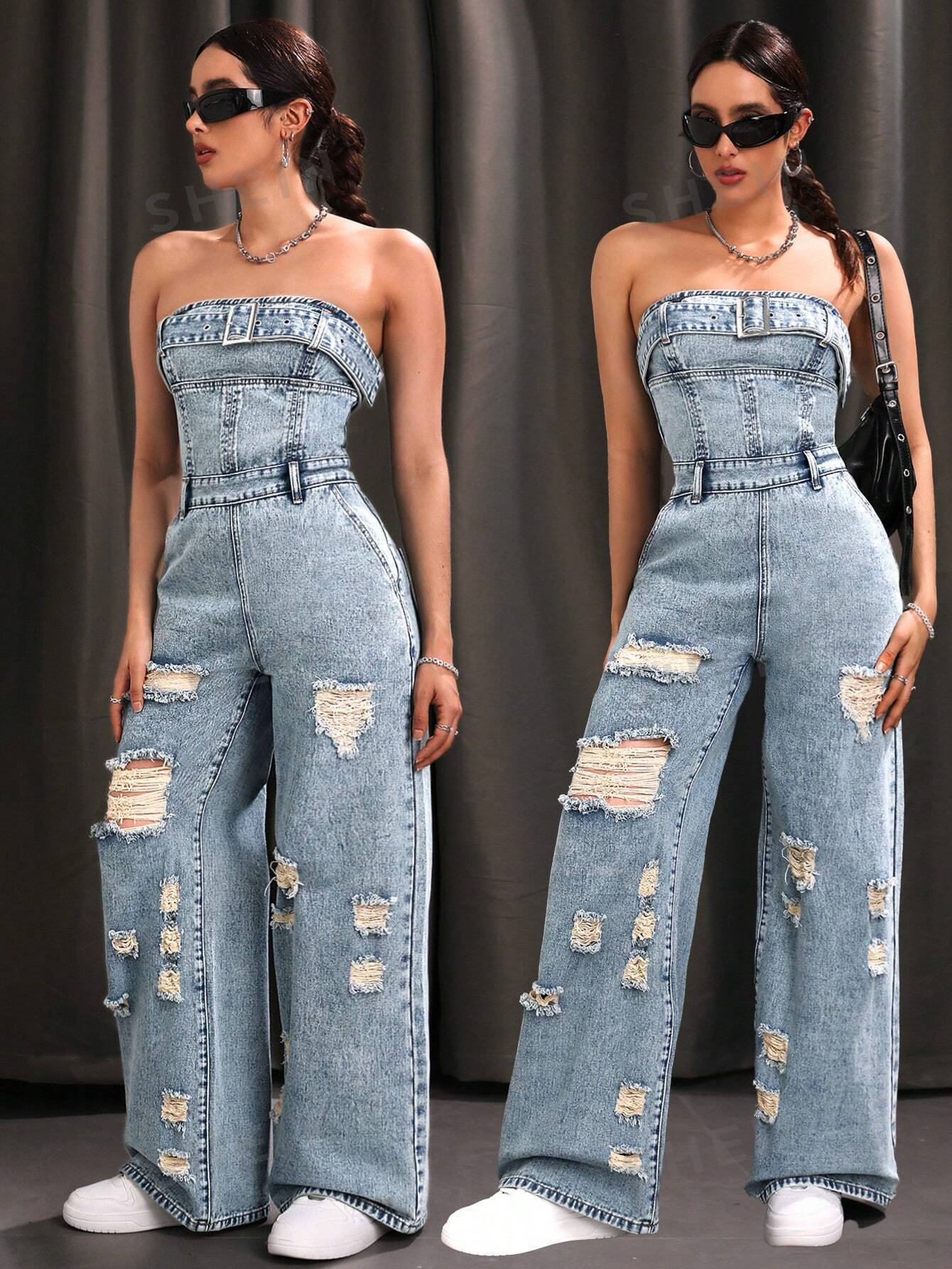 بذلة من قماش الدنيم الممزق المغسول