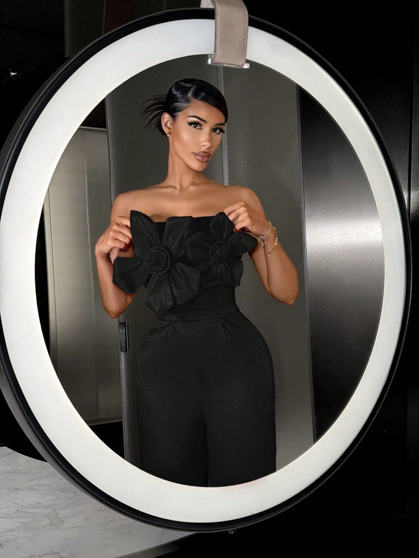 بذلة نسائية ربيعية طويلة بنمط زهرة الورد ثلاثية الأبعاد وأنيقة مثالية لعيد الحب في النوادي الليلية