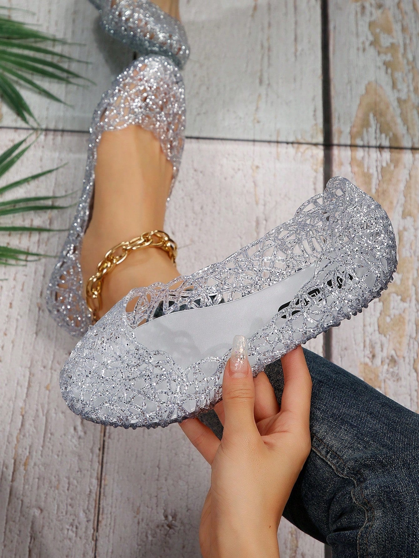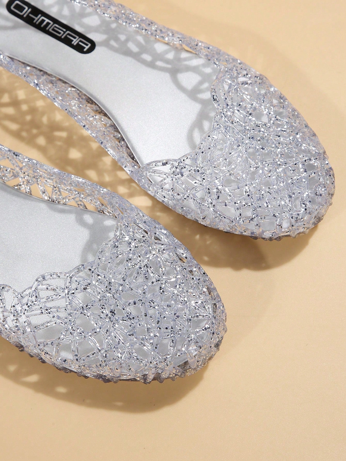براقة فضة حذاء مسطح الى بديكور حجر الراين حذاء باليه مسطح