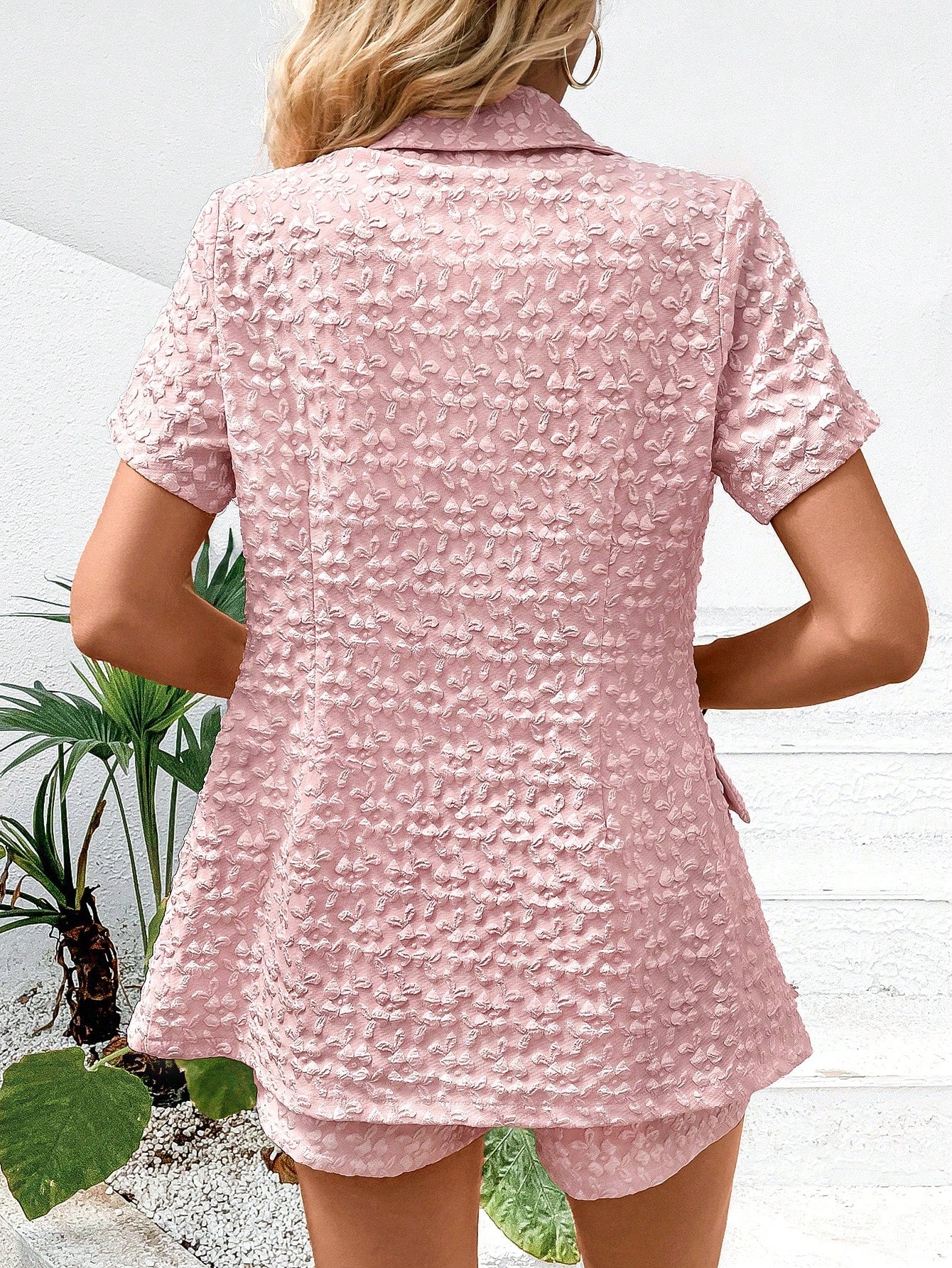 بطباعة أزهار بليزر جاكار و صدرية كامي مع البنطلون القصير