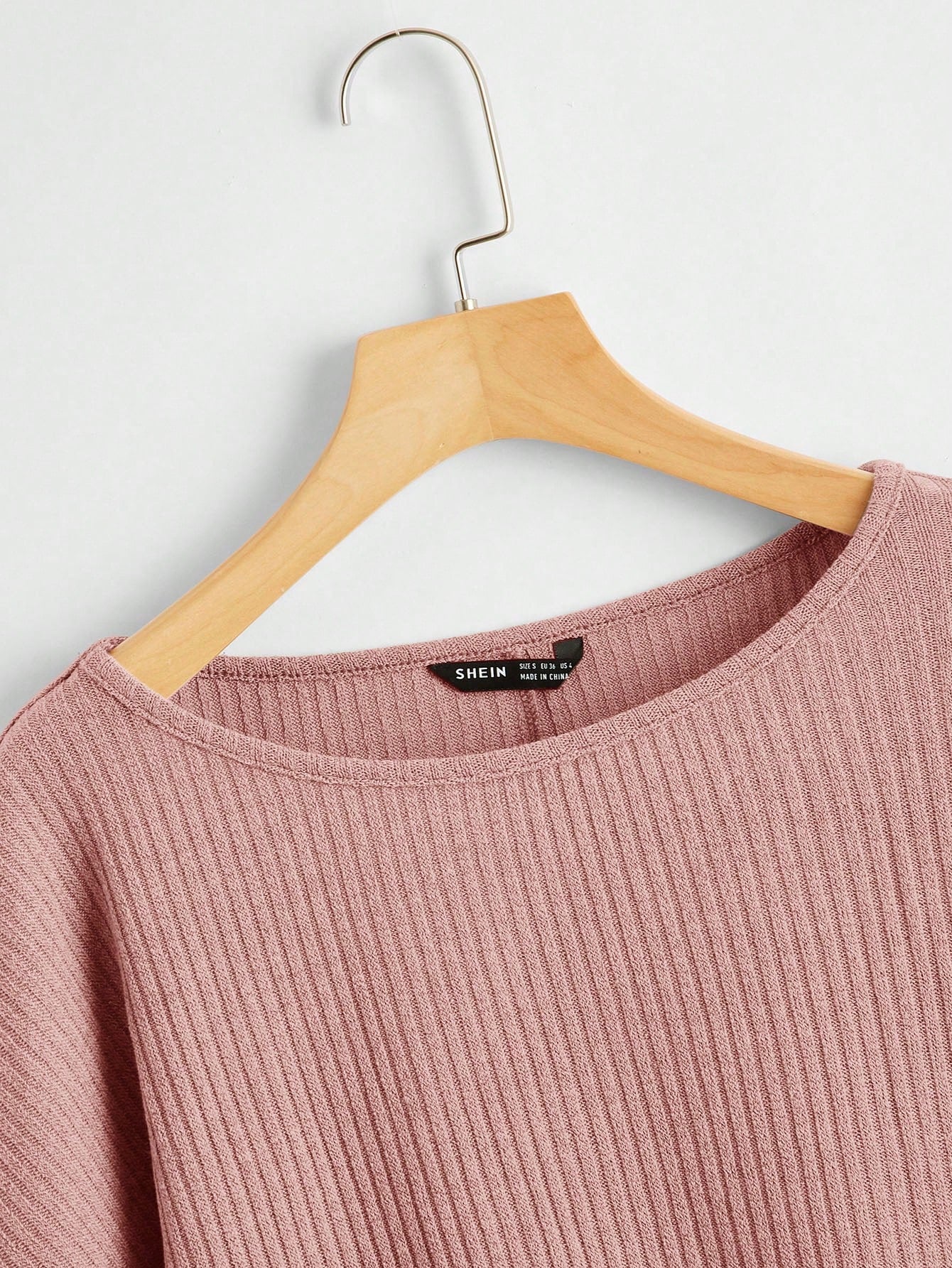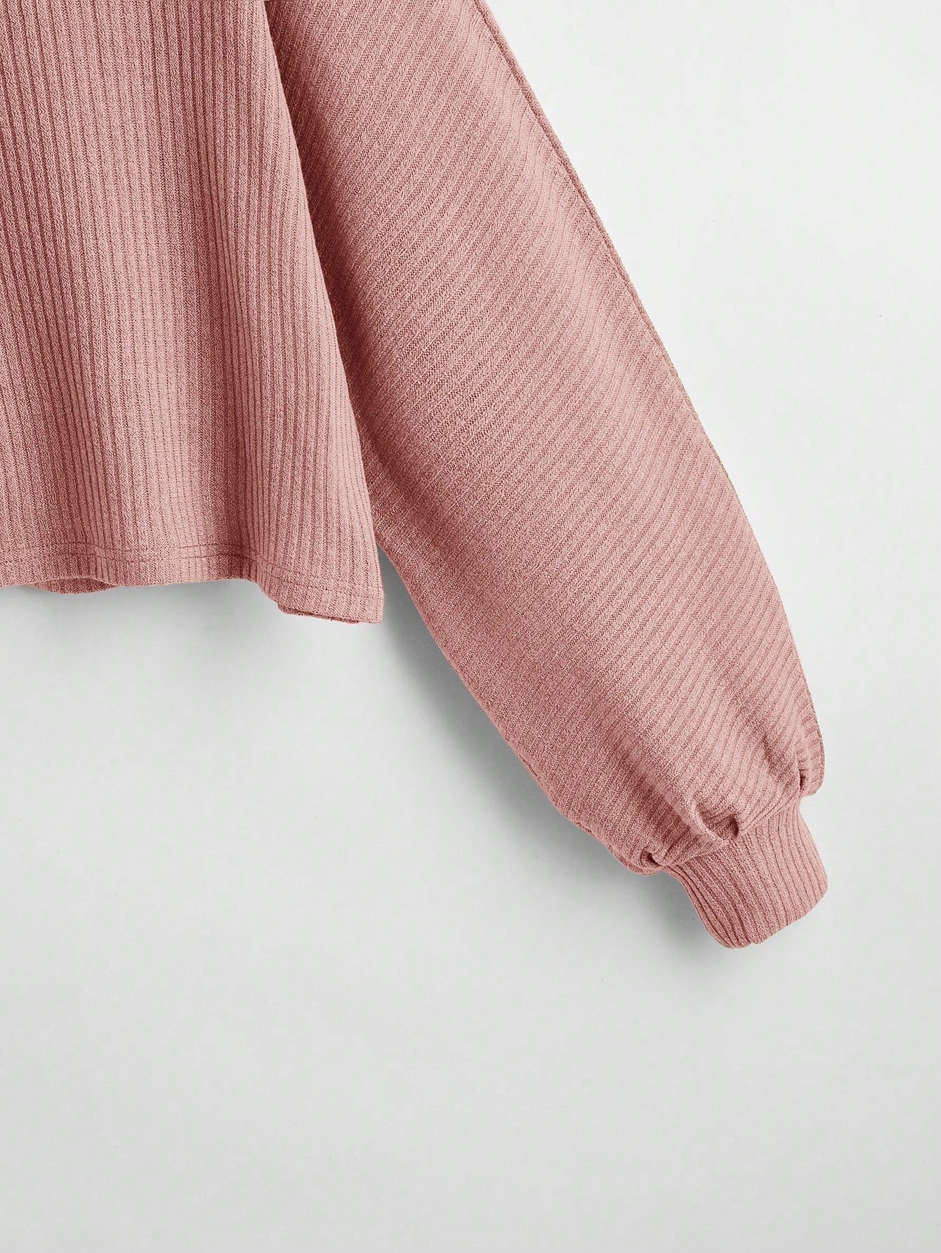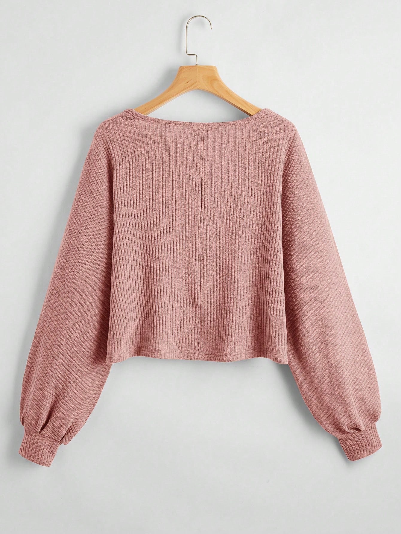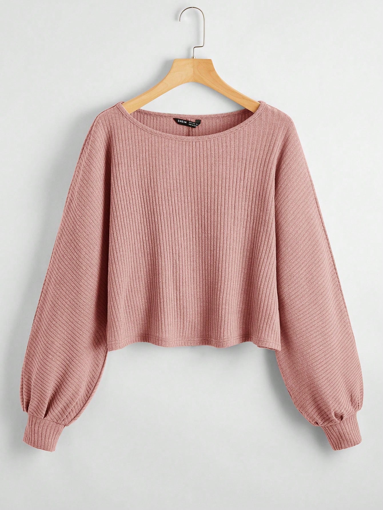 بلوزة رياضية أنيقة بياقة طاقم للنساء مع أكمام خفافيش فضفاضة للربيع والخريف