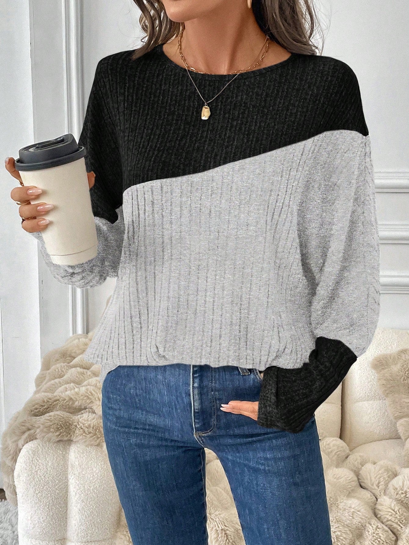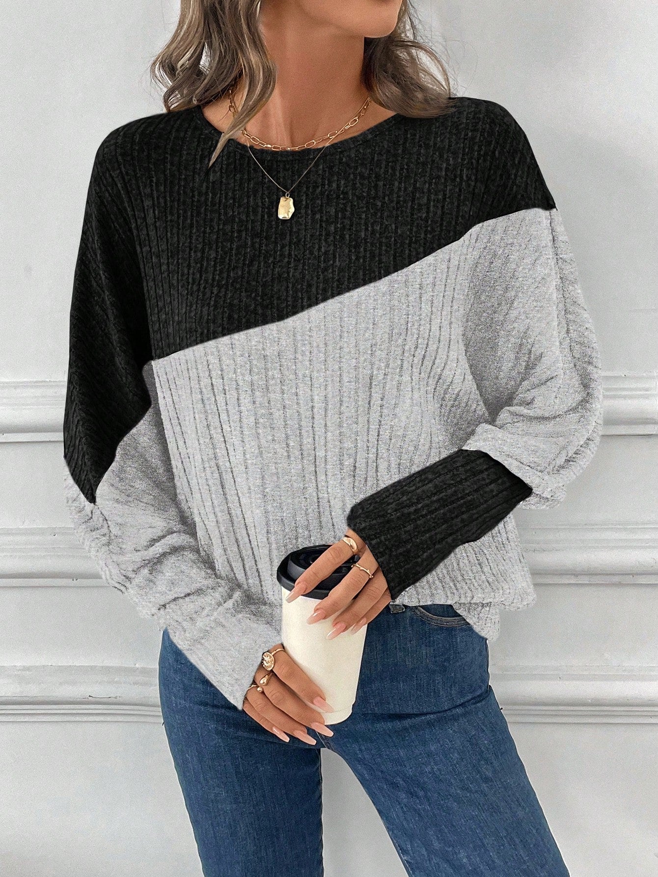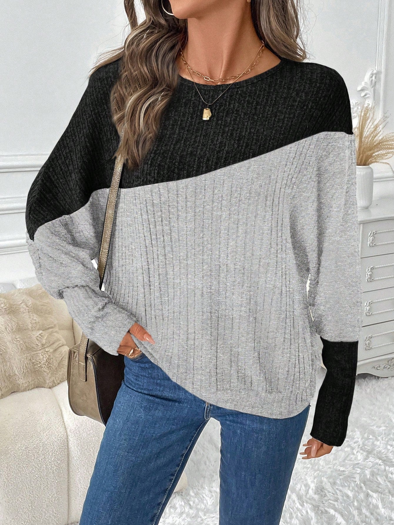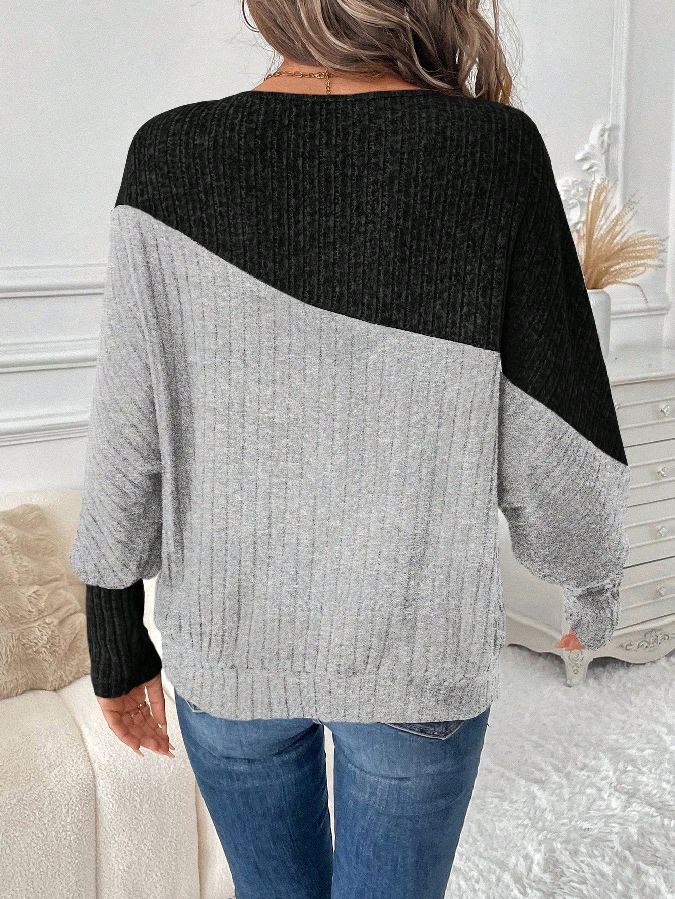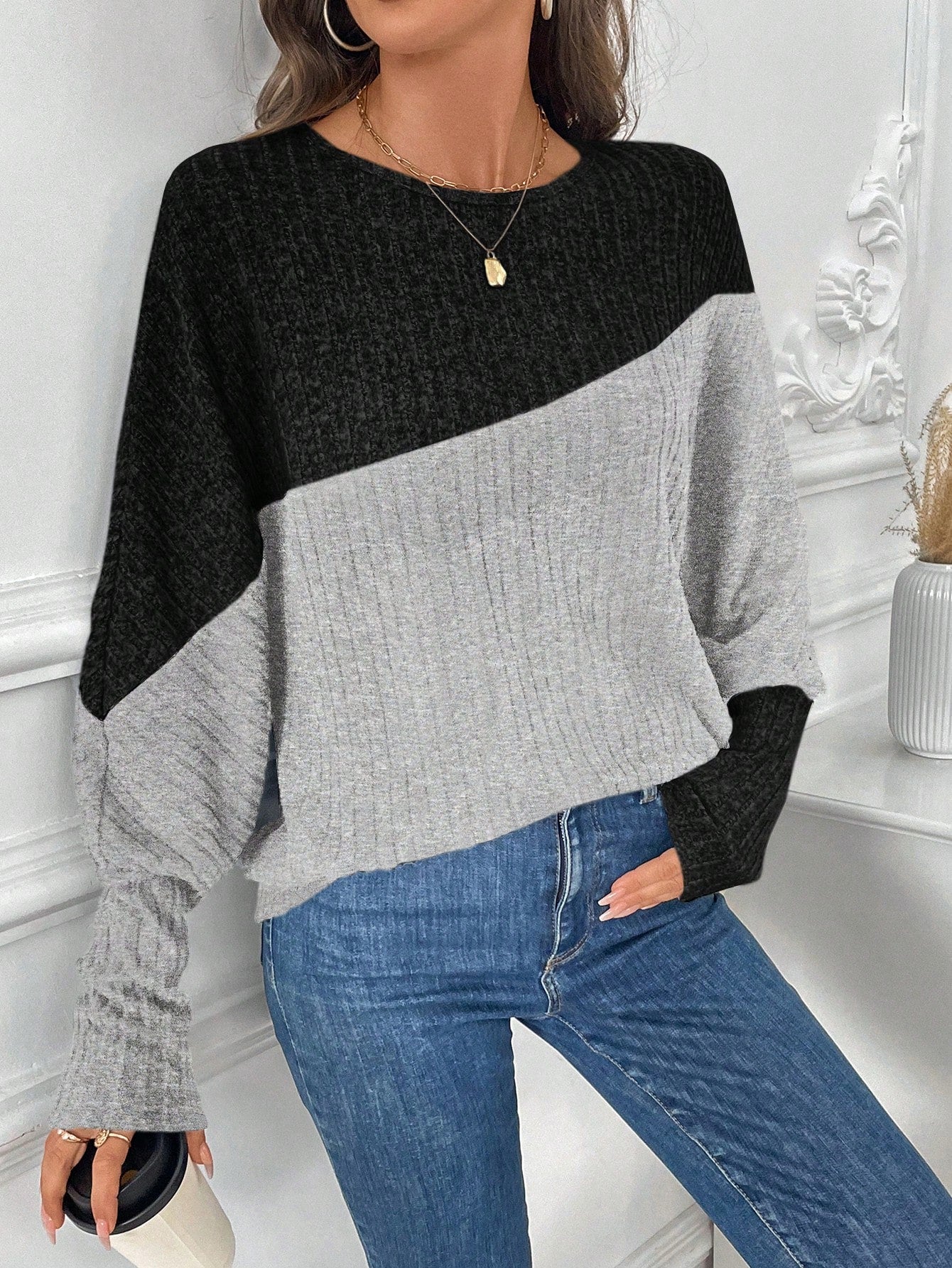 بلوزة رياضية فضفاضة ذات أكمام طويلة على شكل خفاش بألوان متباينة، للنساء
