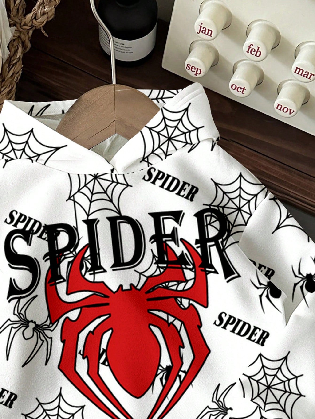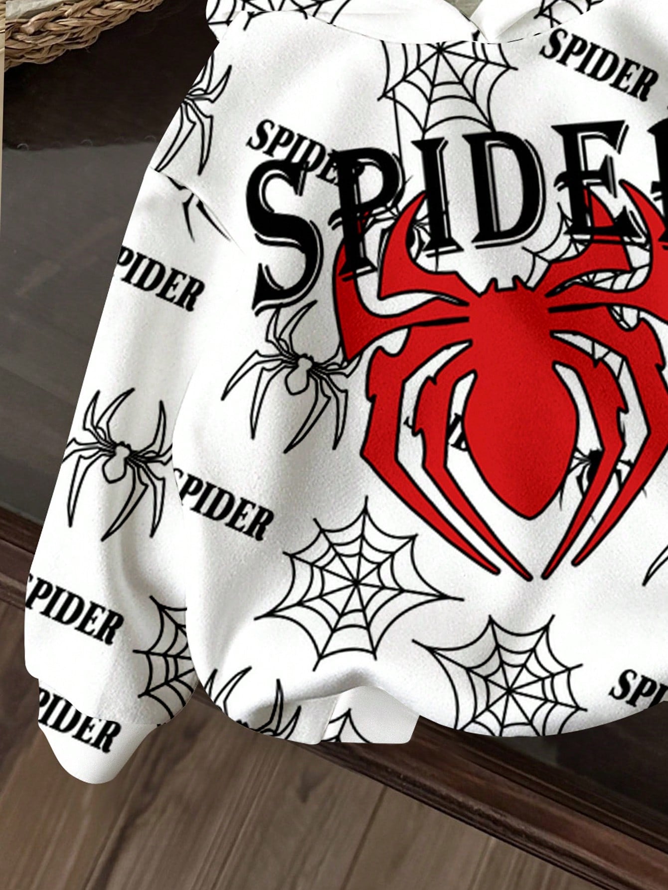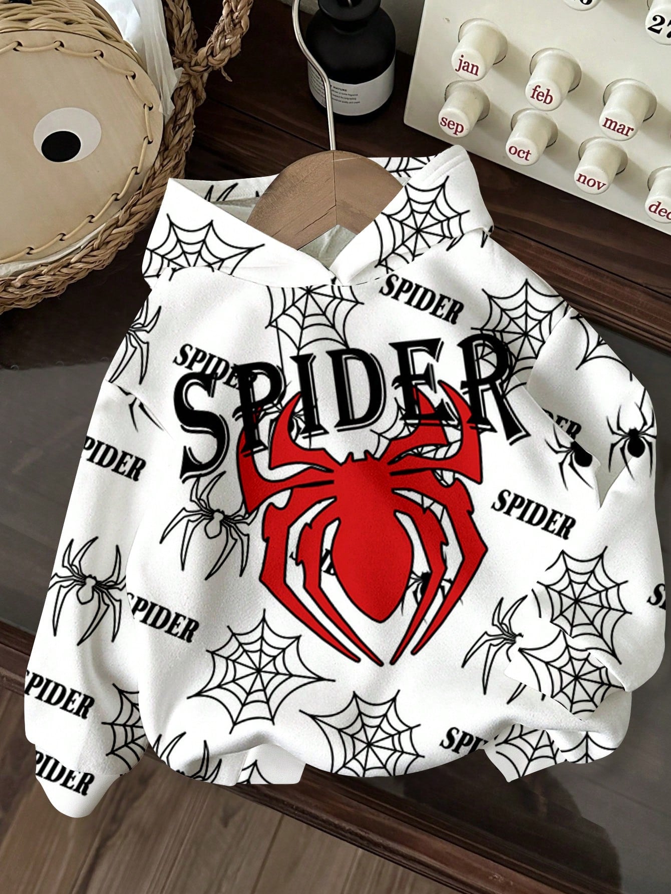 بلوزة صبياني كاجول فضفاضة مطبوعة برسمة العنكبوت مبطنة للقشعريرة