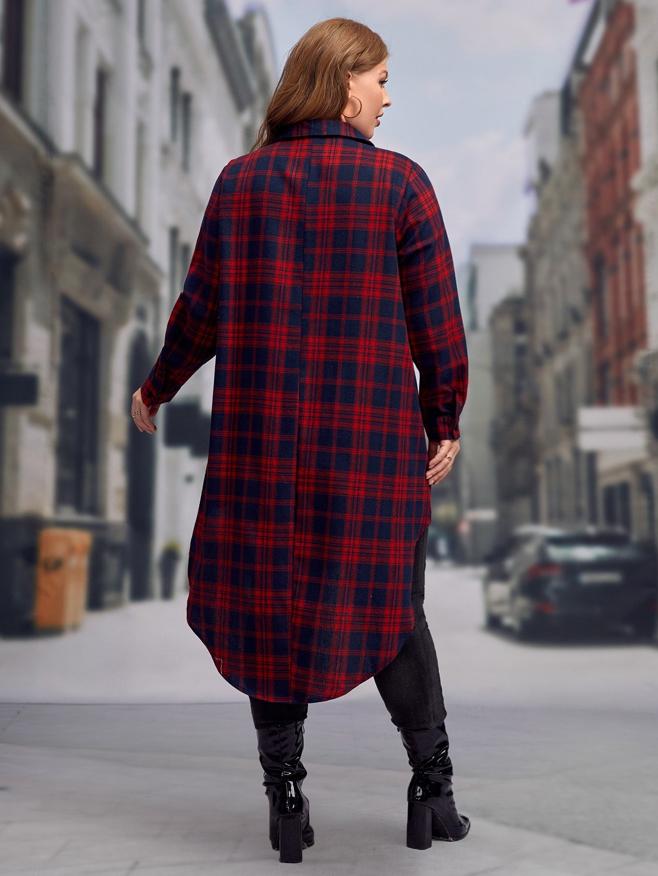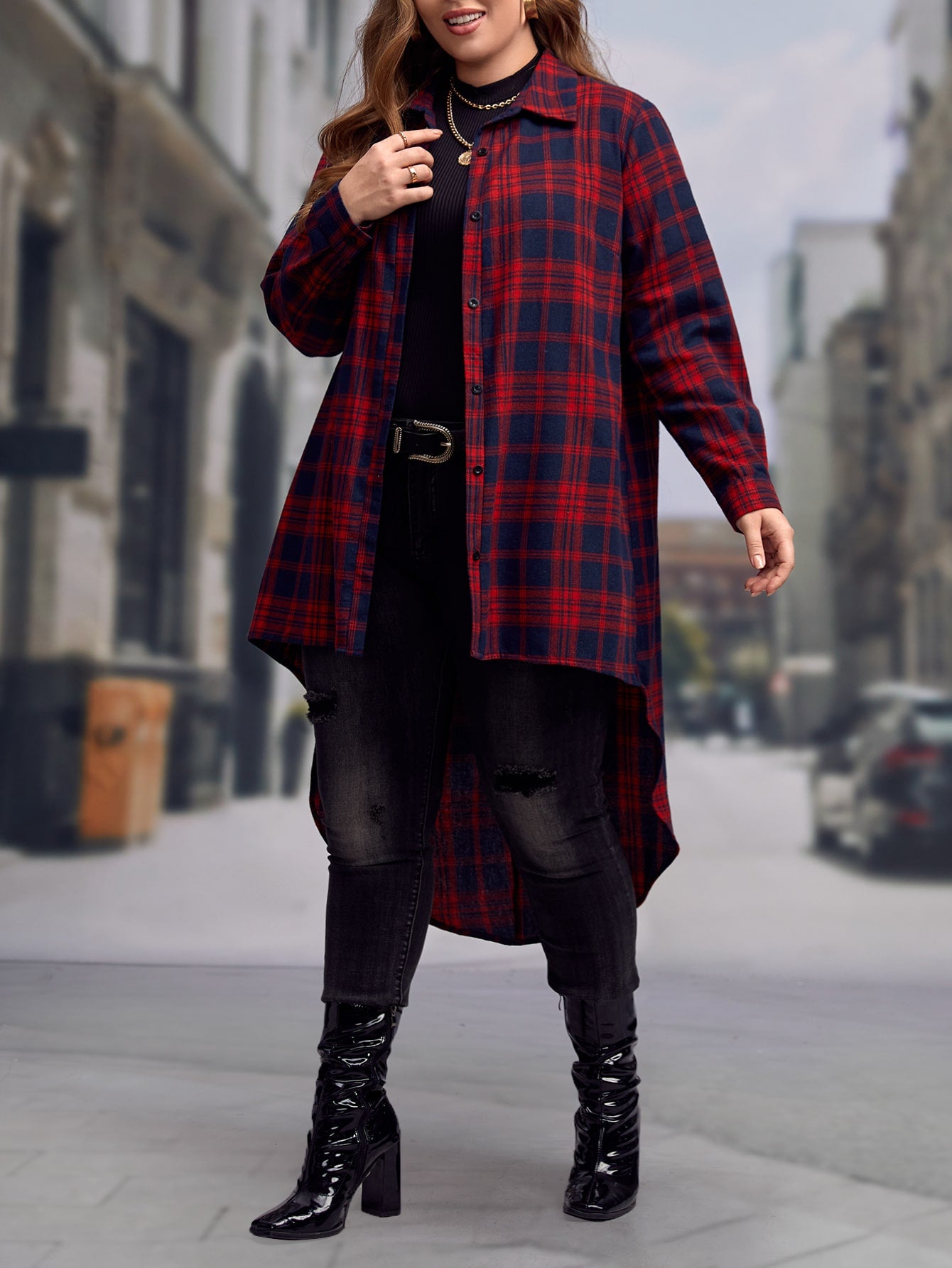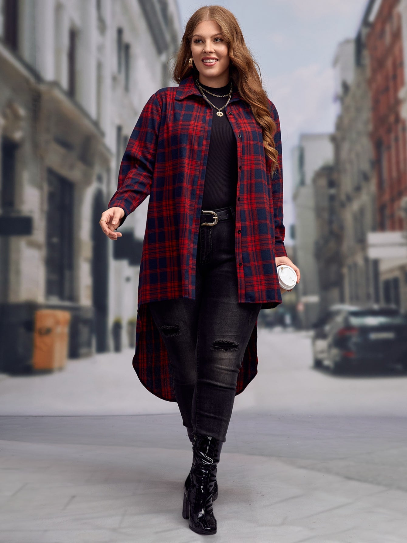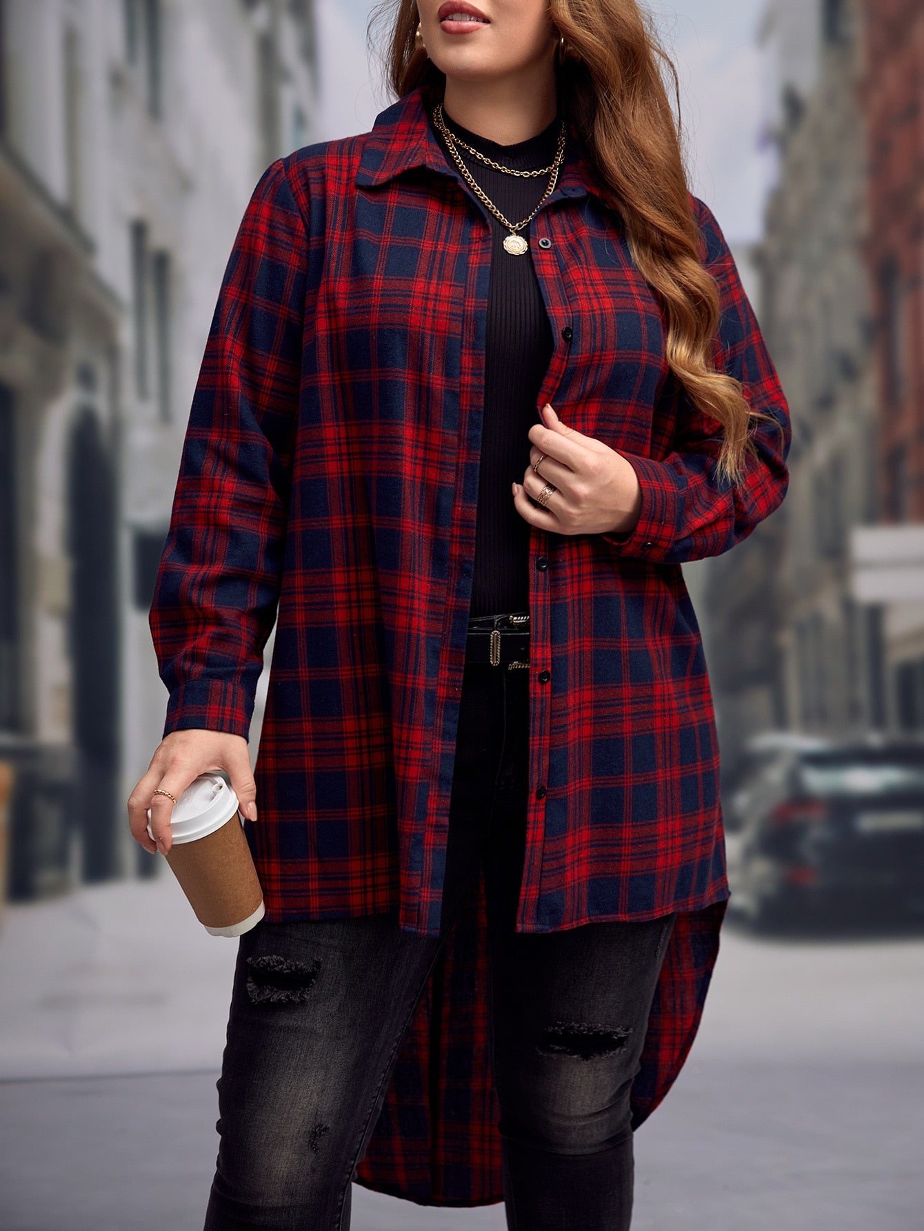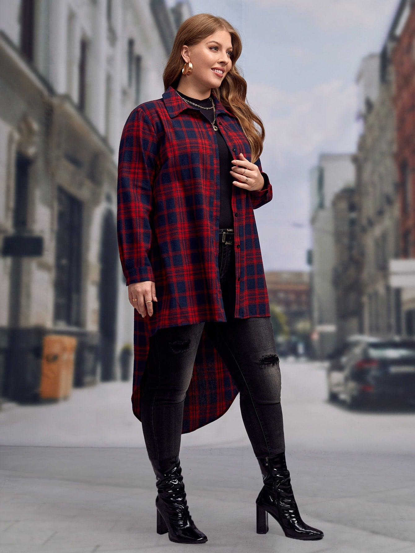 بلوزة طباعة مربع النقش بحافة عالي ومنخفض مقاس كبير