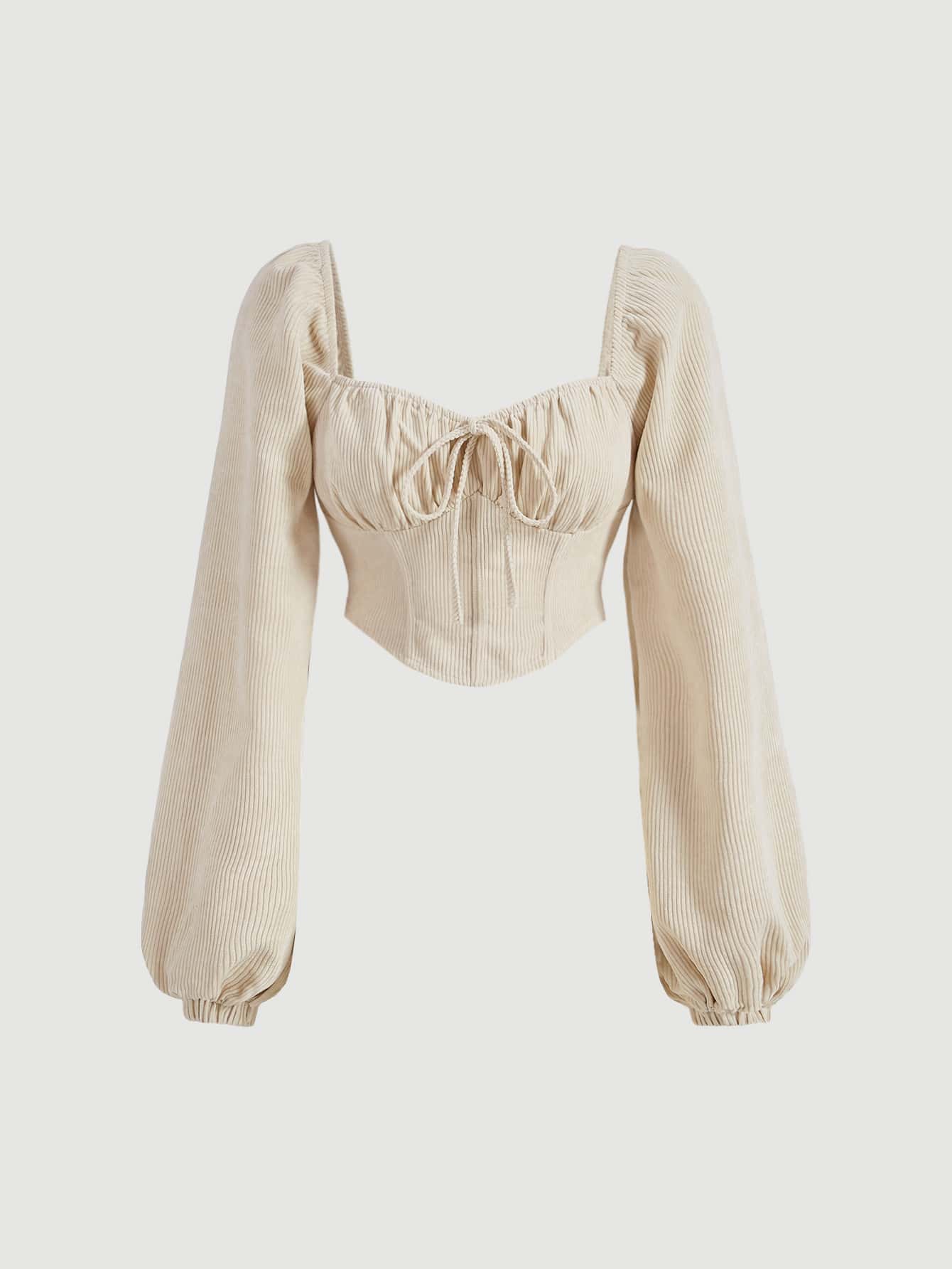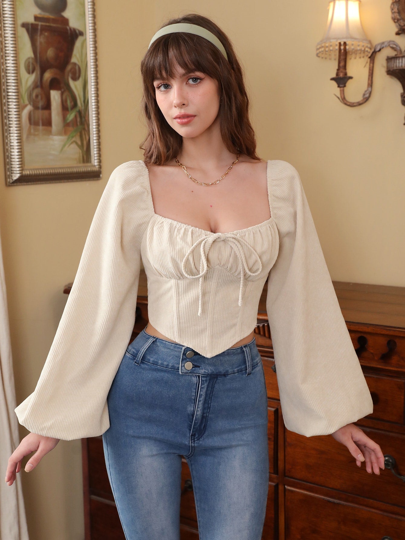 بلوزة قصيرة معقود من الأمام أكمام فانوس هافة باندانا