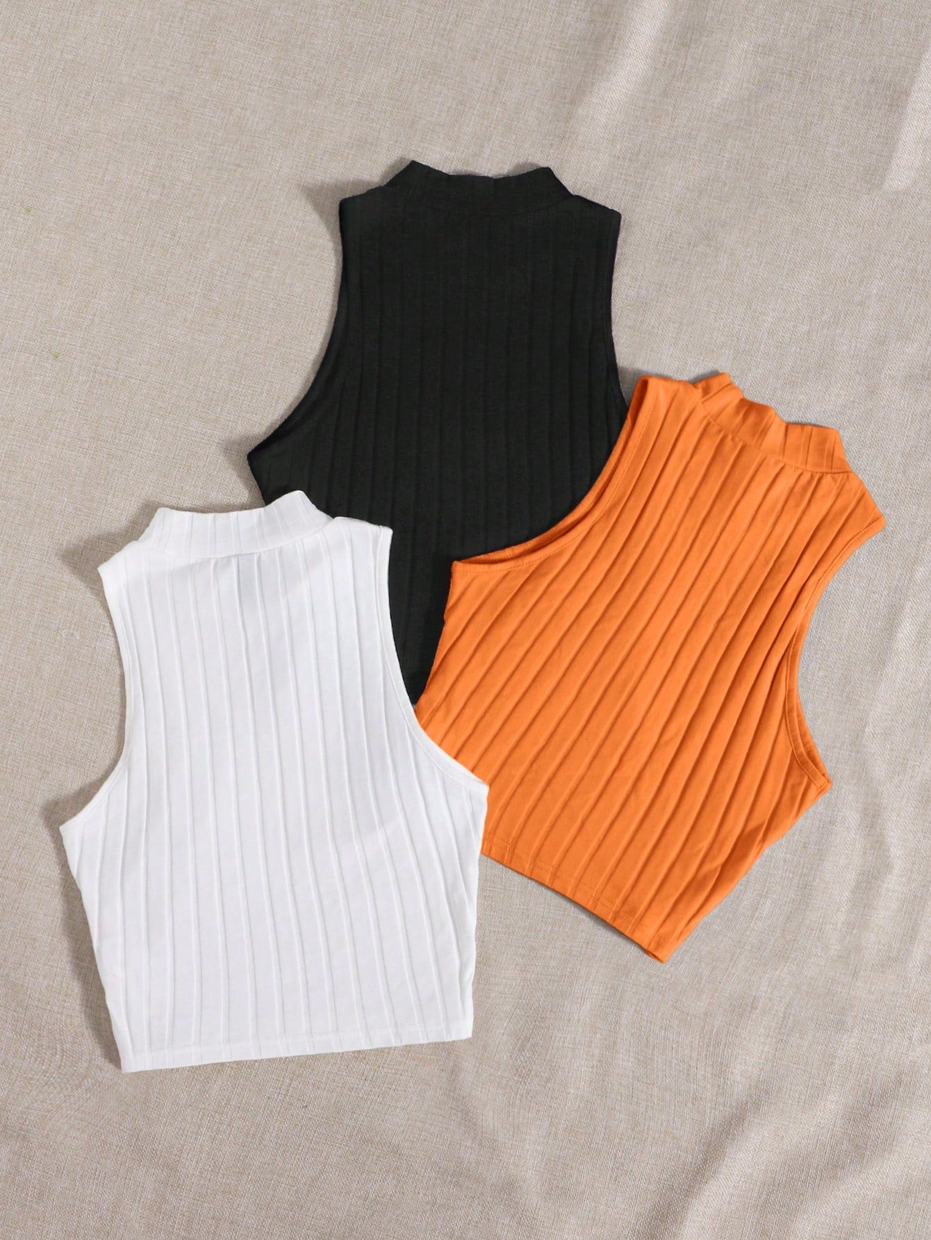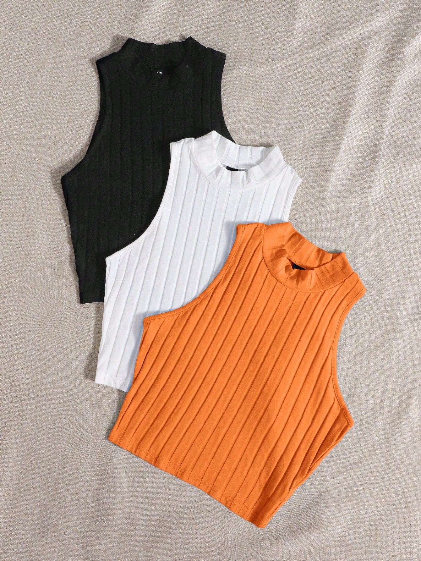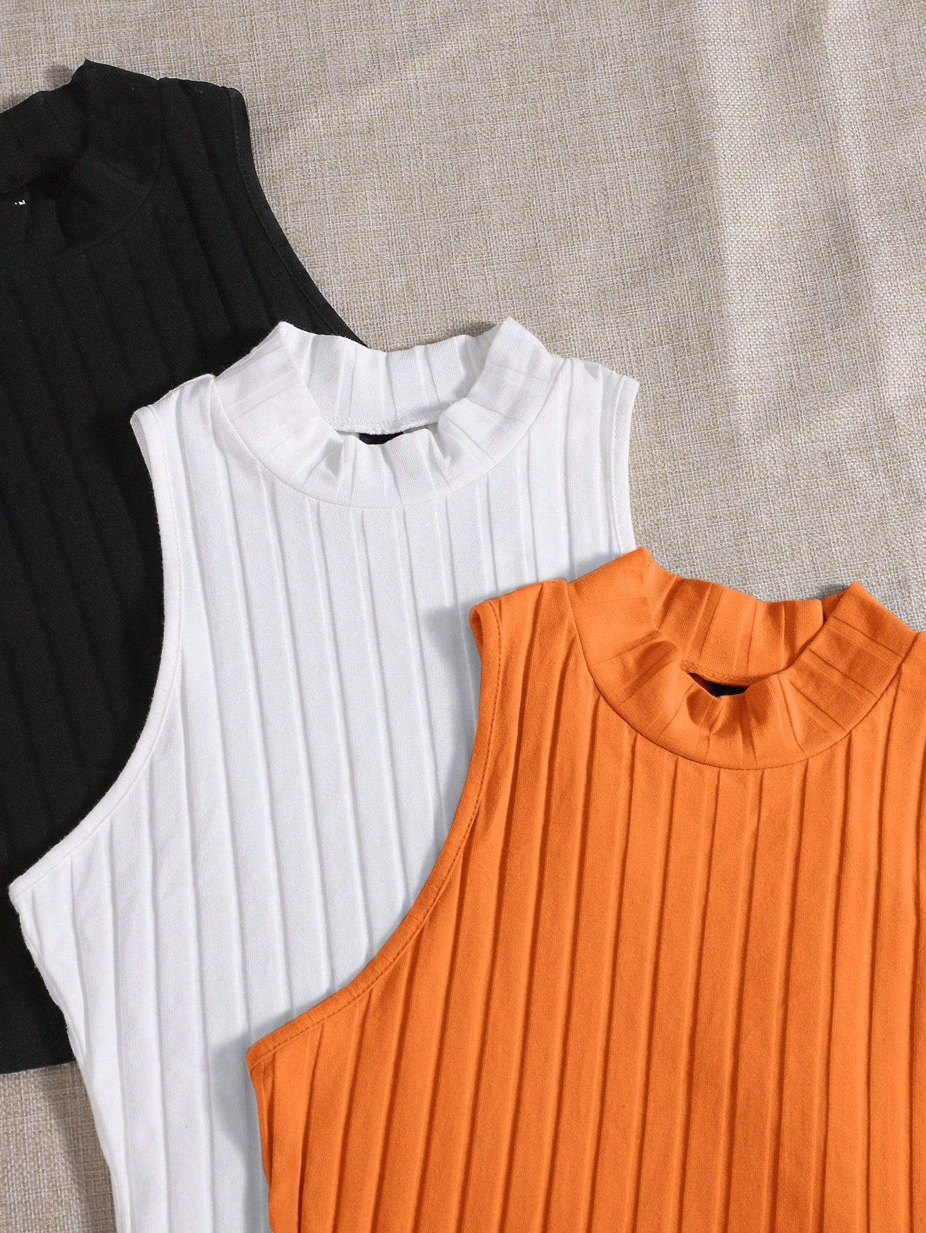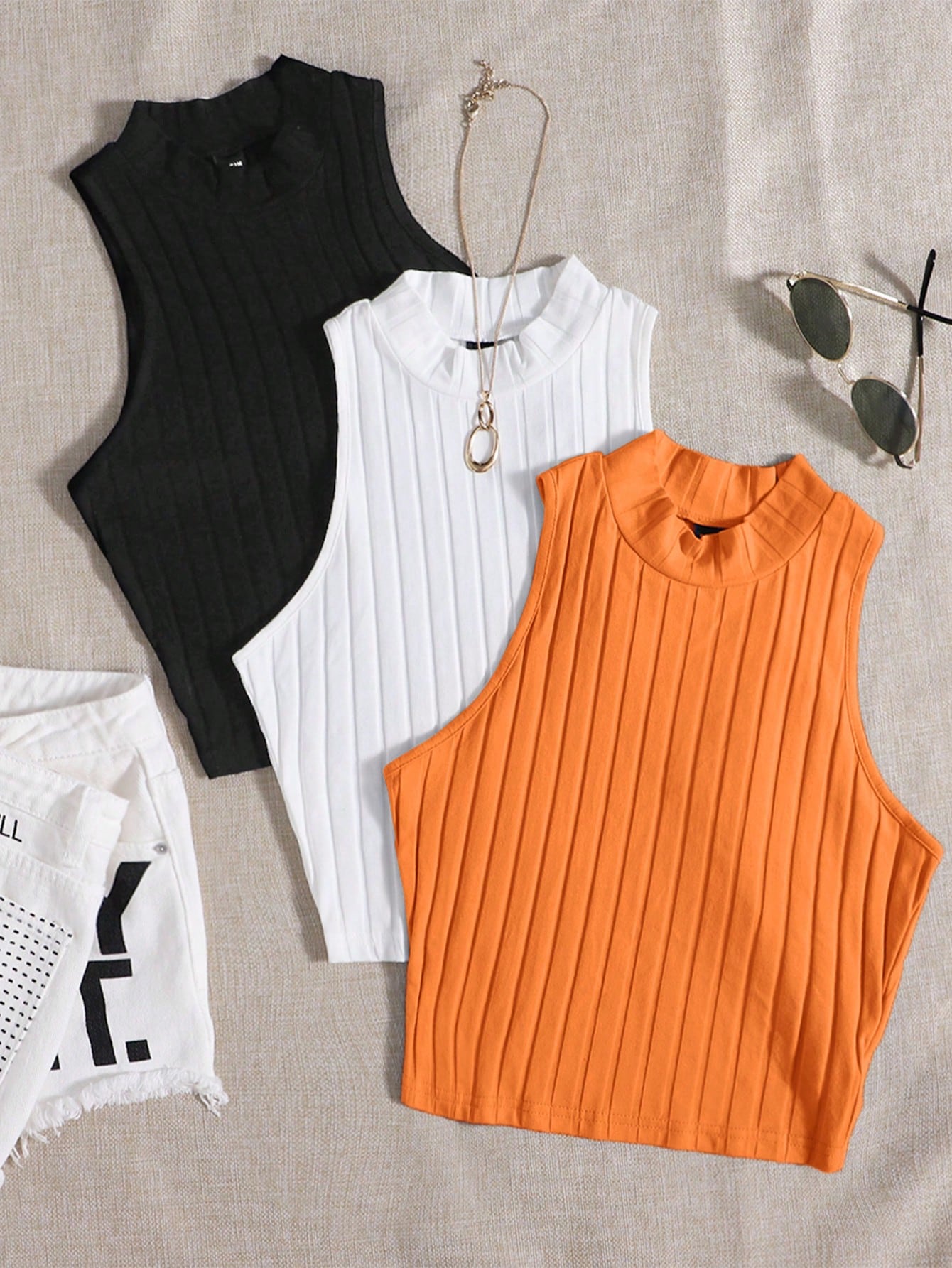 بلوزة نسائية بدون أكمام ذات لون سادة ورقبة