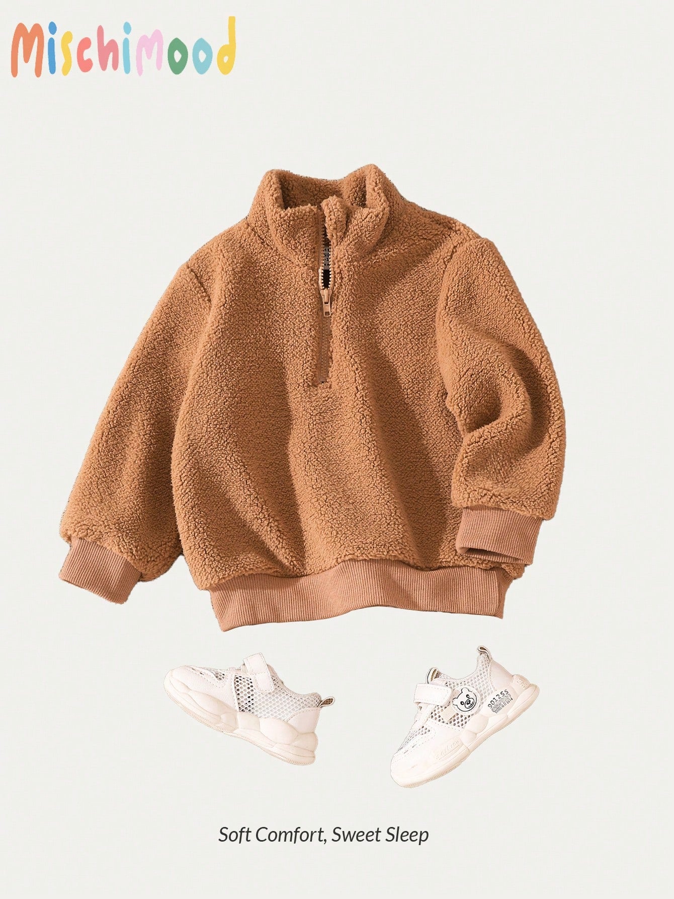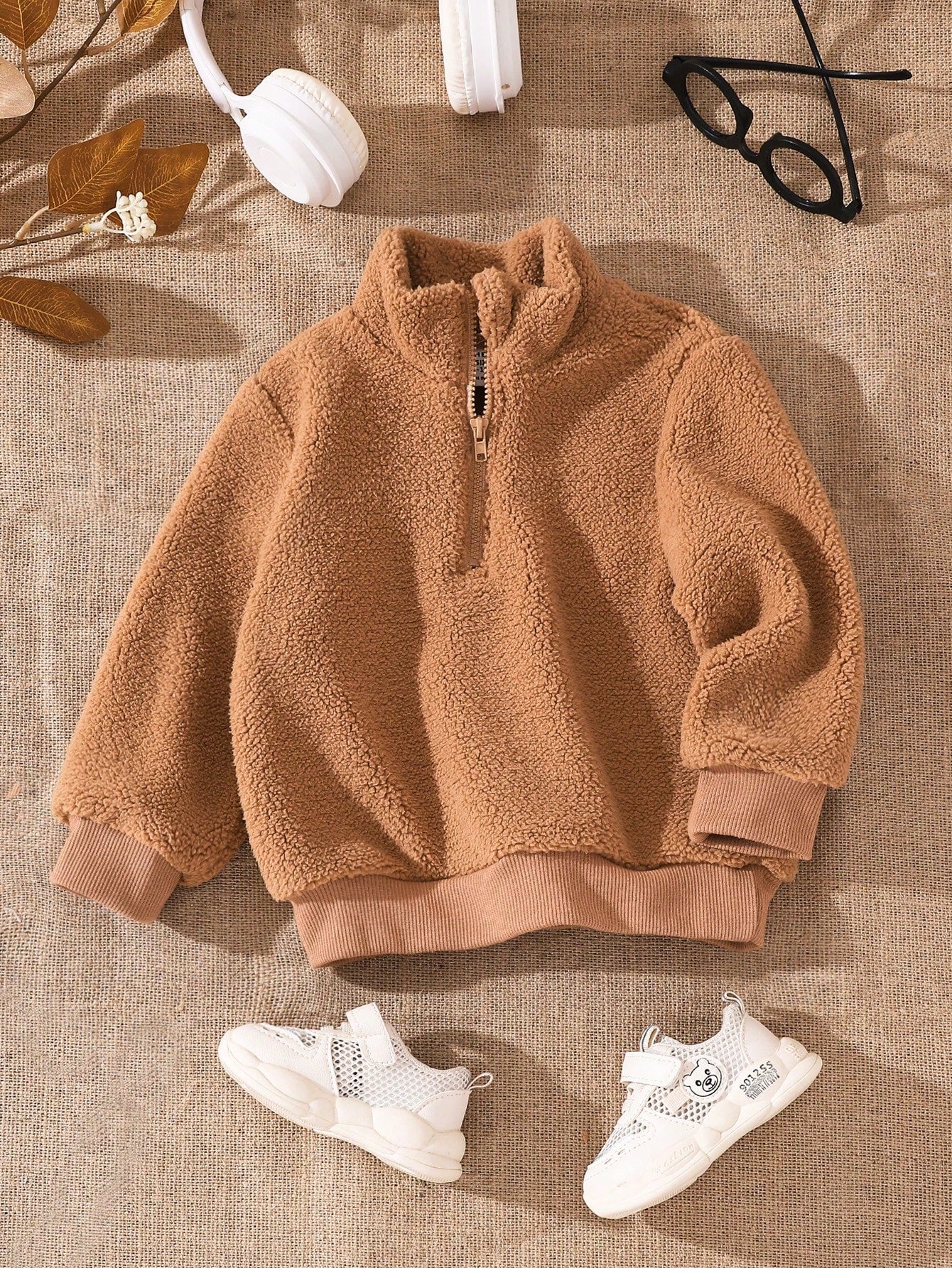 بلوزة هودي بأكمام طويلة مبطنة بالبر للرجال/أولاد الرضع خاكي عادي