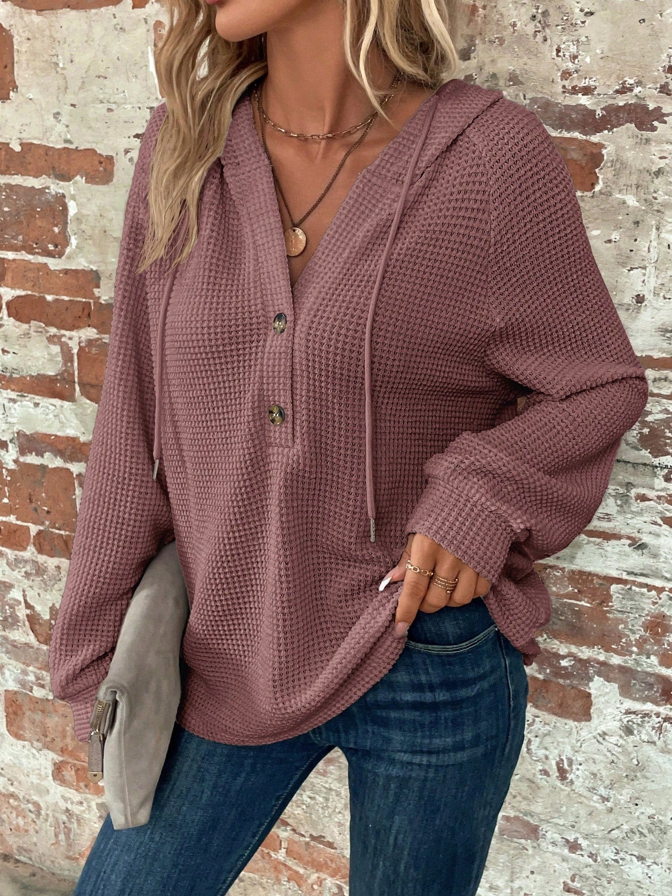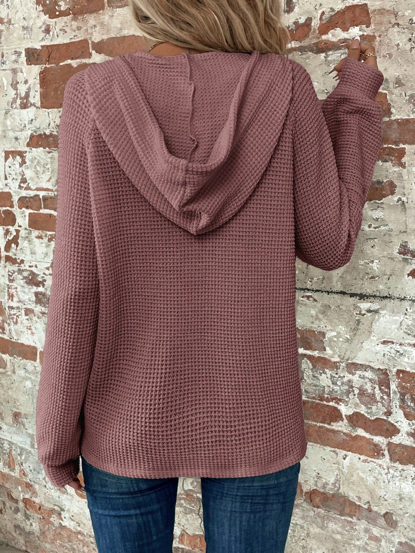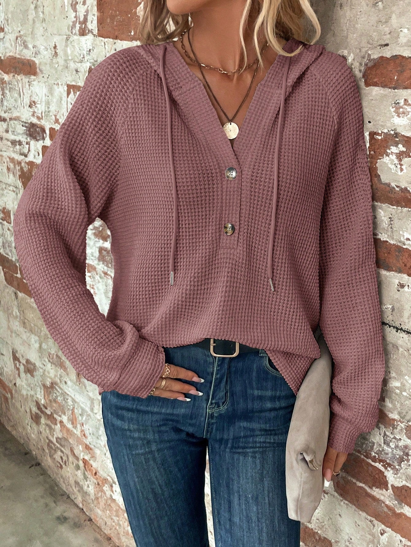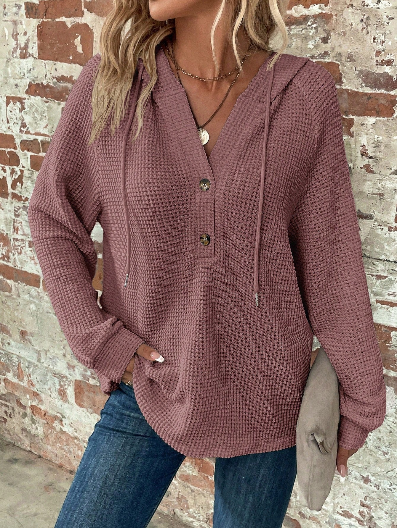بلوفر كنزة برباط خصر ذو أكمام رجلان بنصف زر وقشابية مصنوع من نسيج المفرقع، بأكمام طويلة