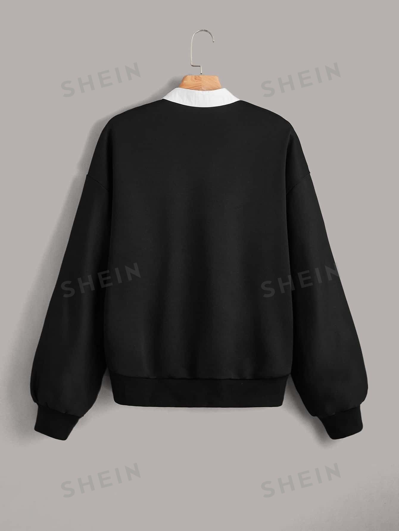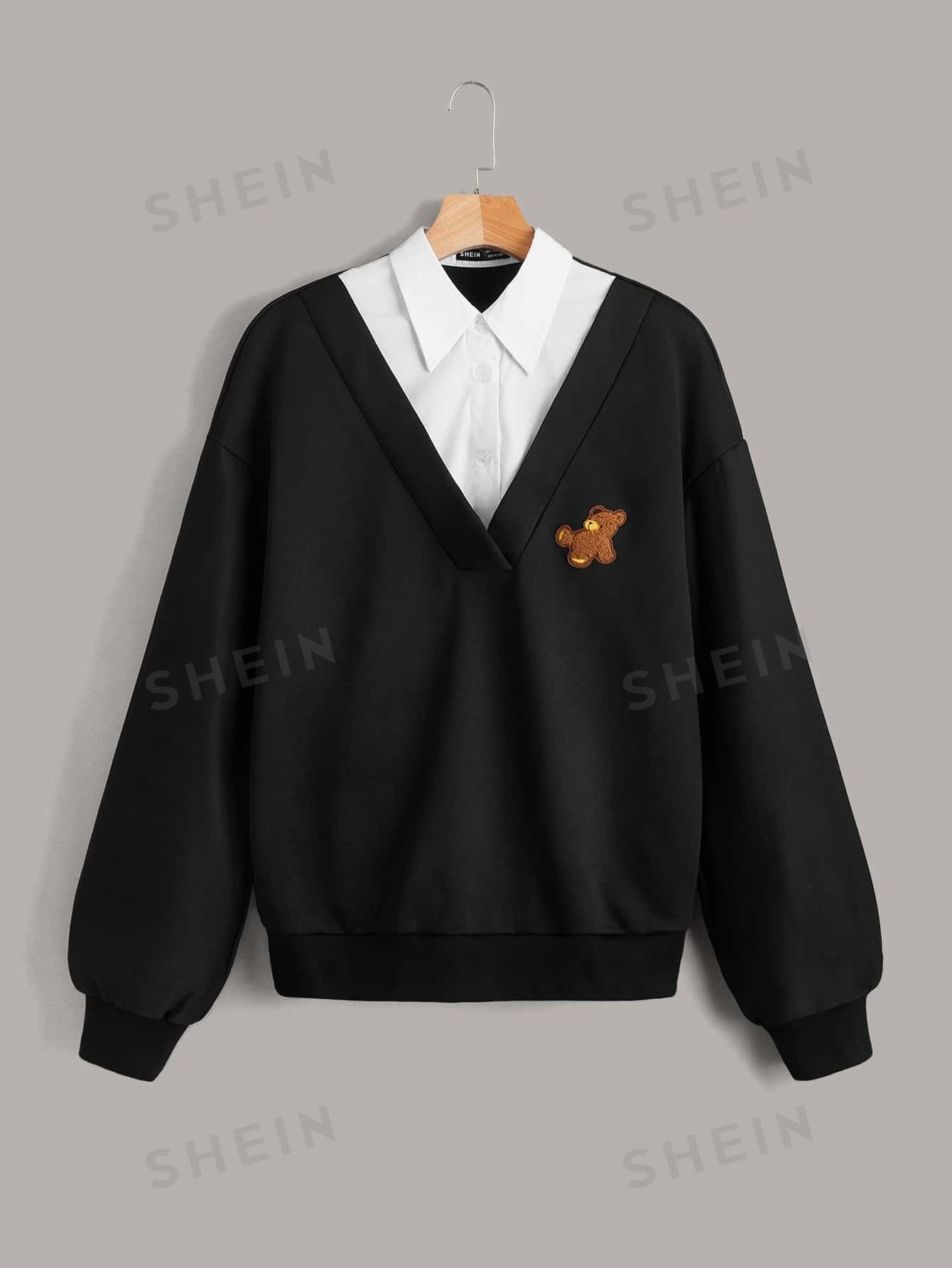 بلوفر ياقة متباينة مصحح بدب 2 في 1