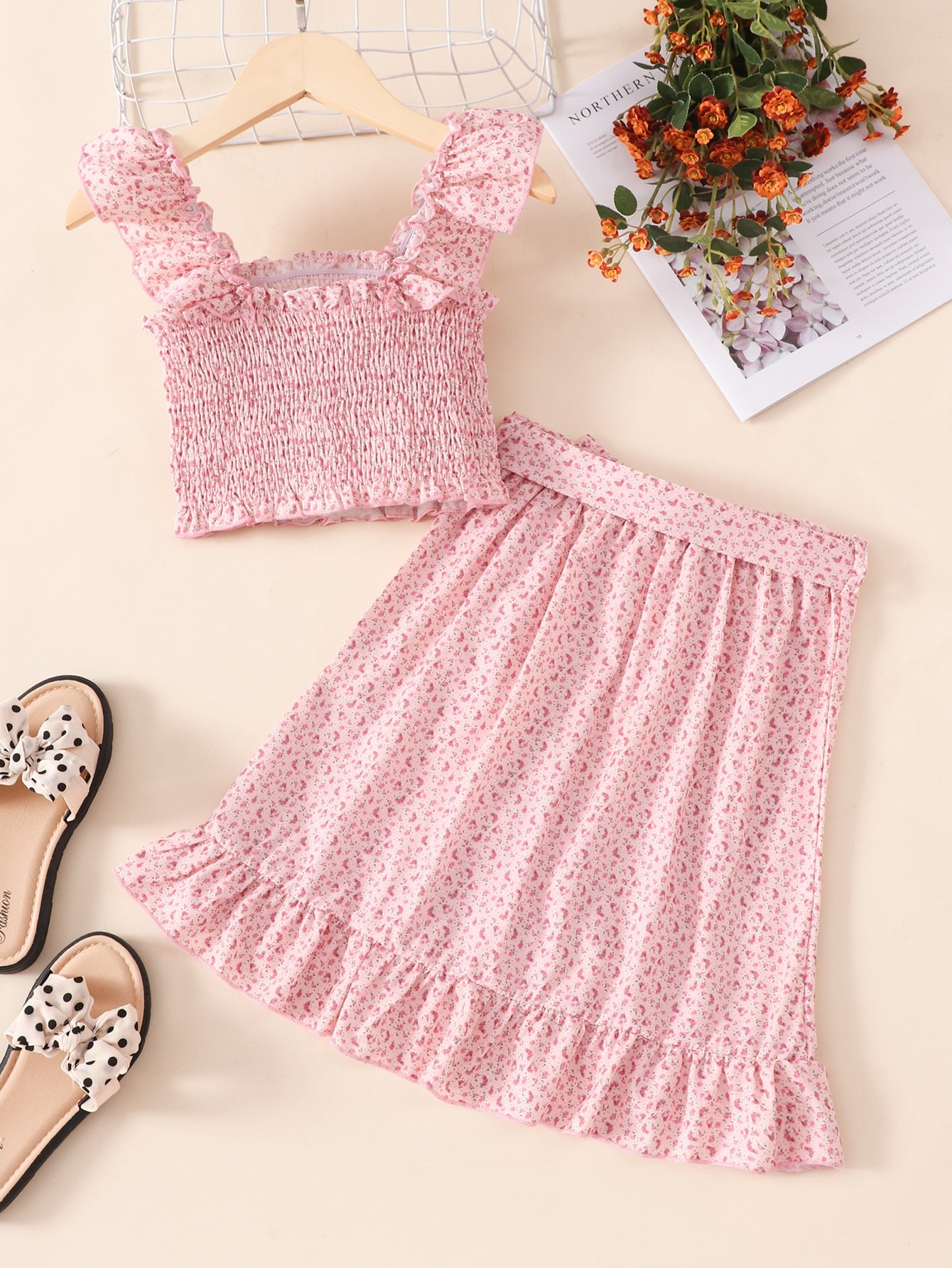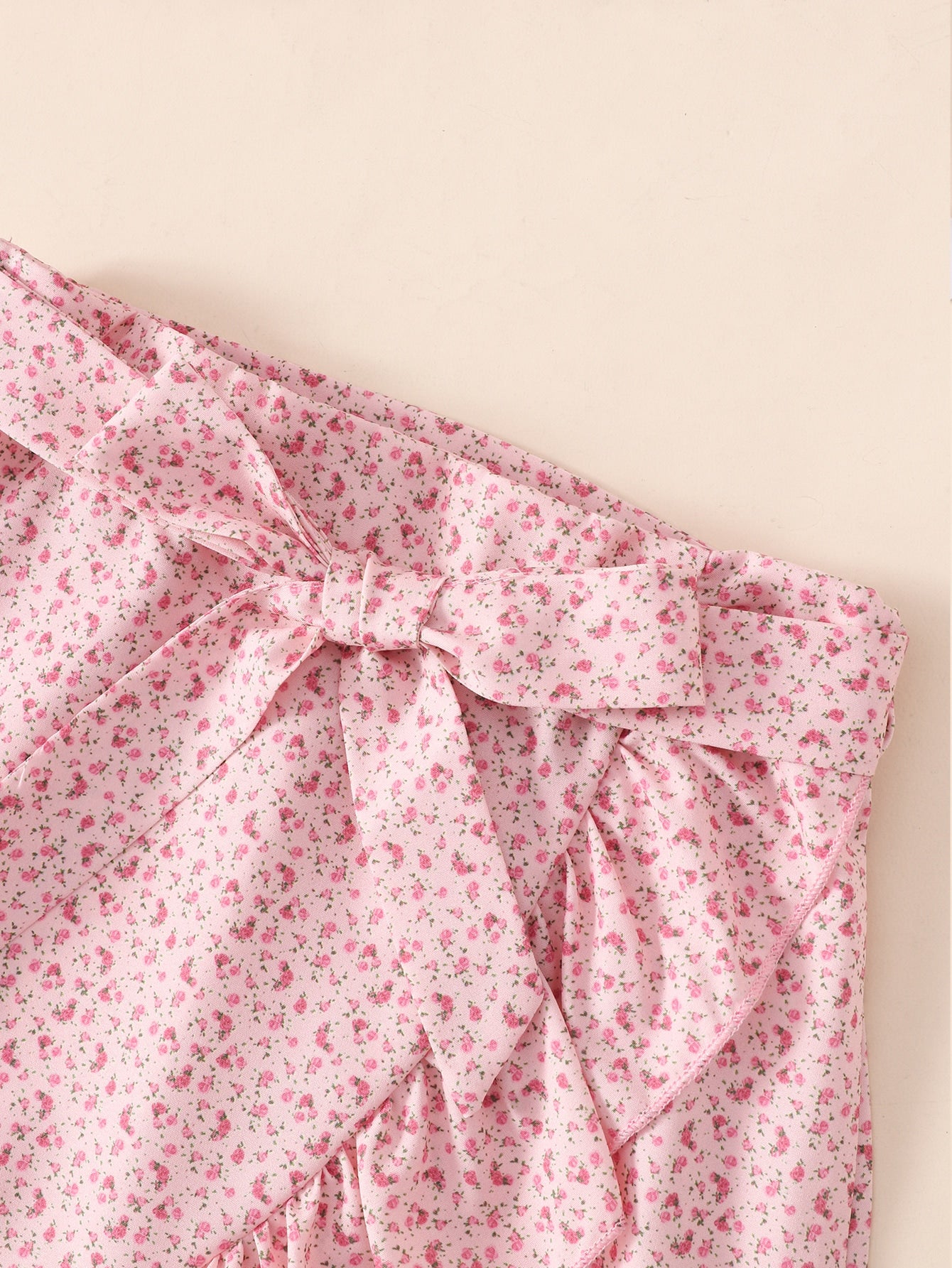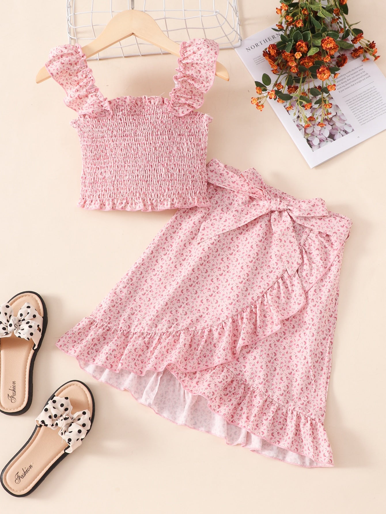 بنات زهر ديزي صدرية كامي مكشكش مع حزام تنورة ملفوفة