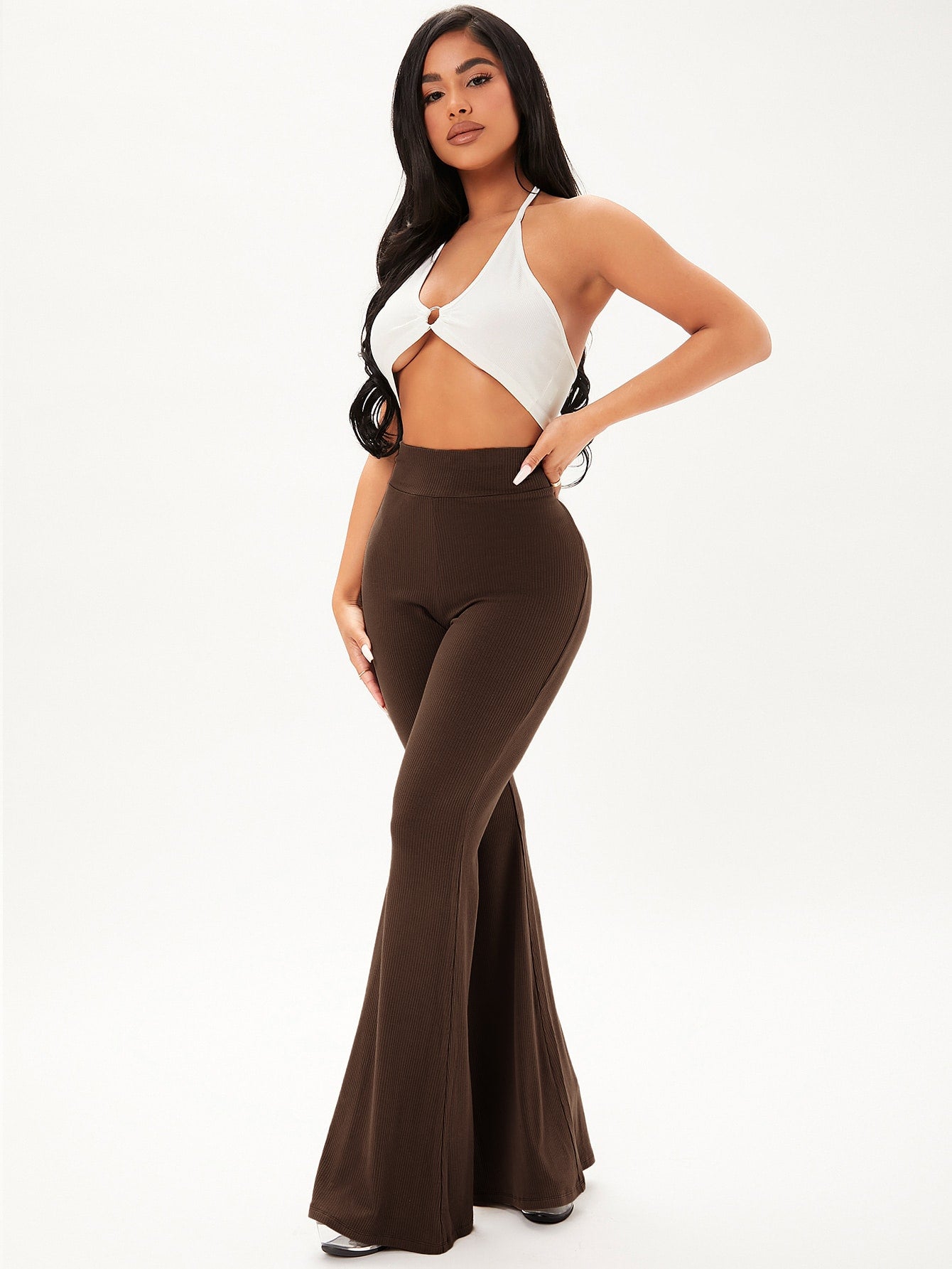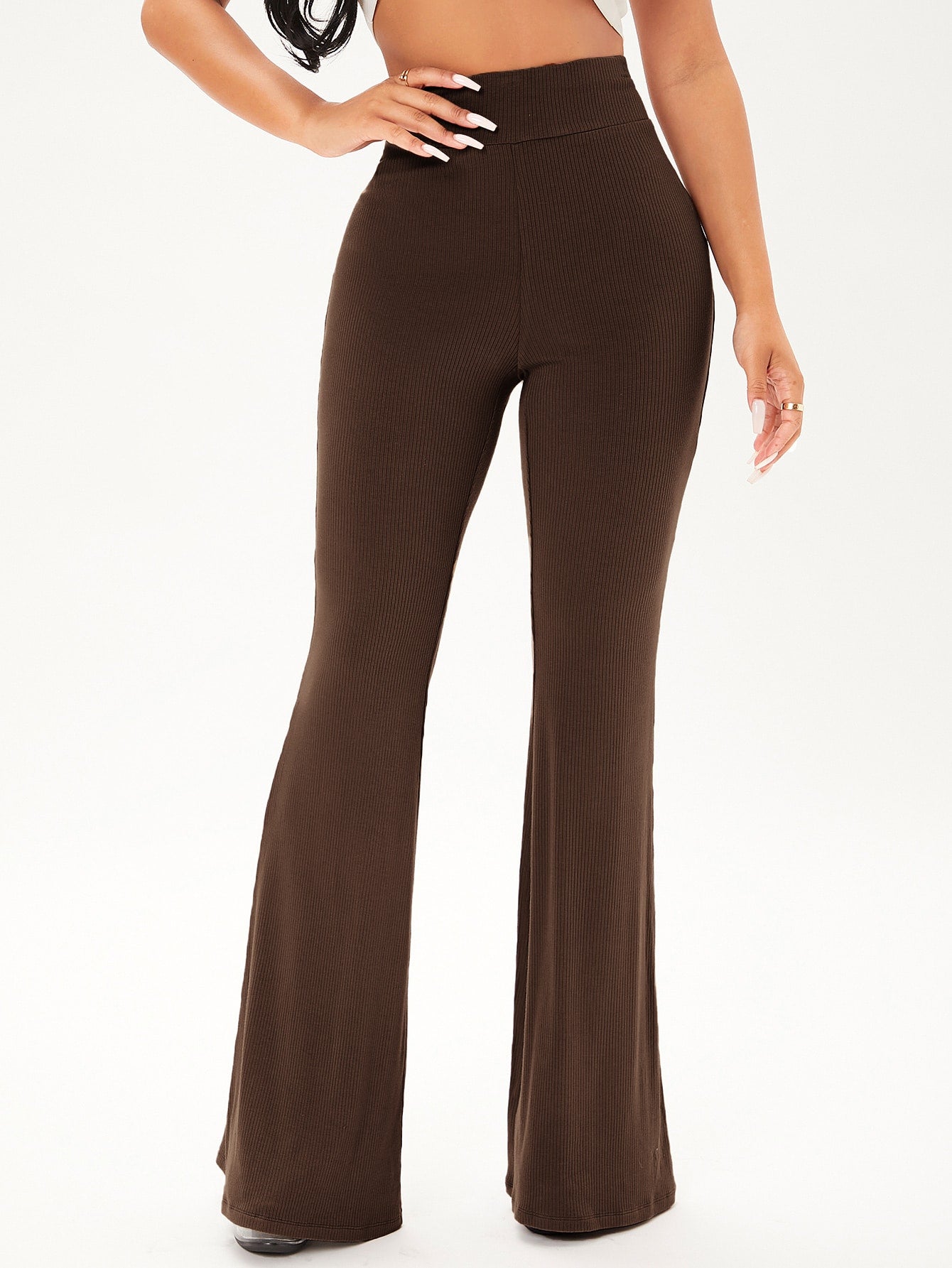 بناطيل بساق واسع موحدة اللون محبوك مضلع