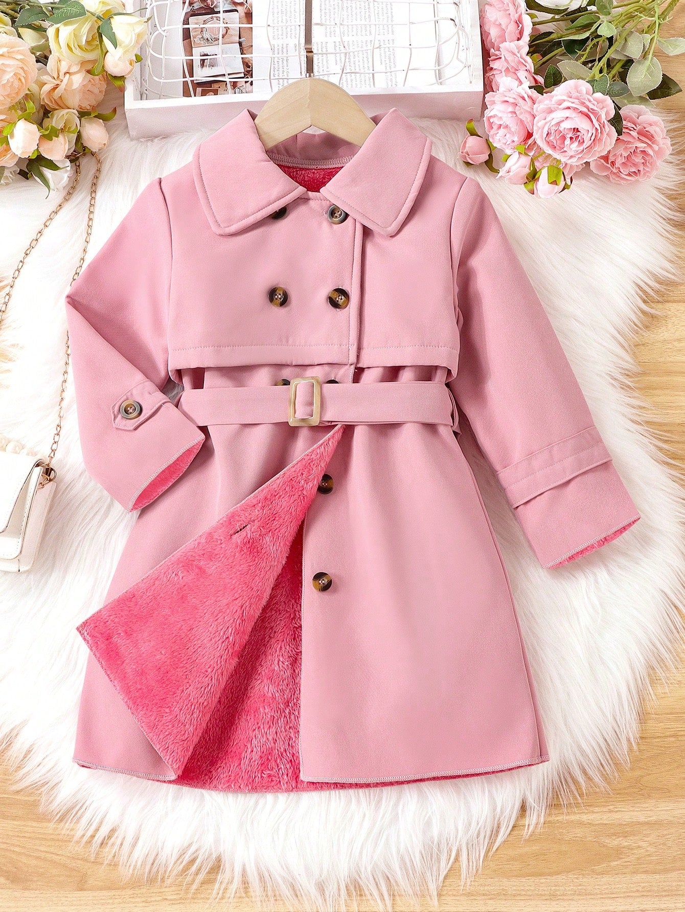 بنت طفل صف ازرار مزدوجة معطف مطر