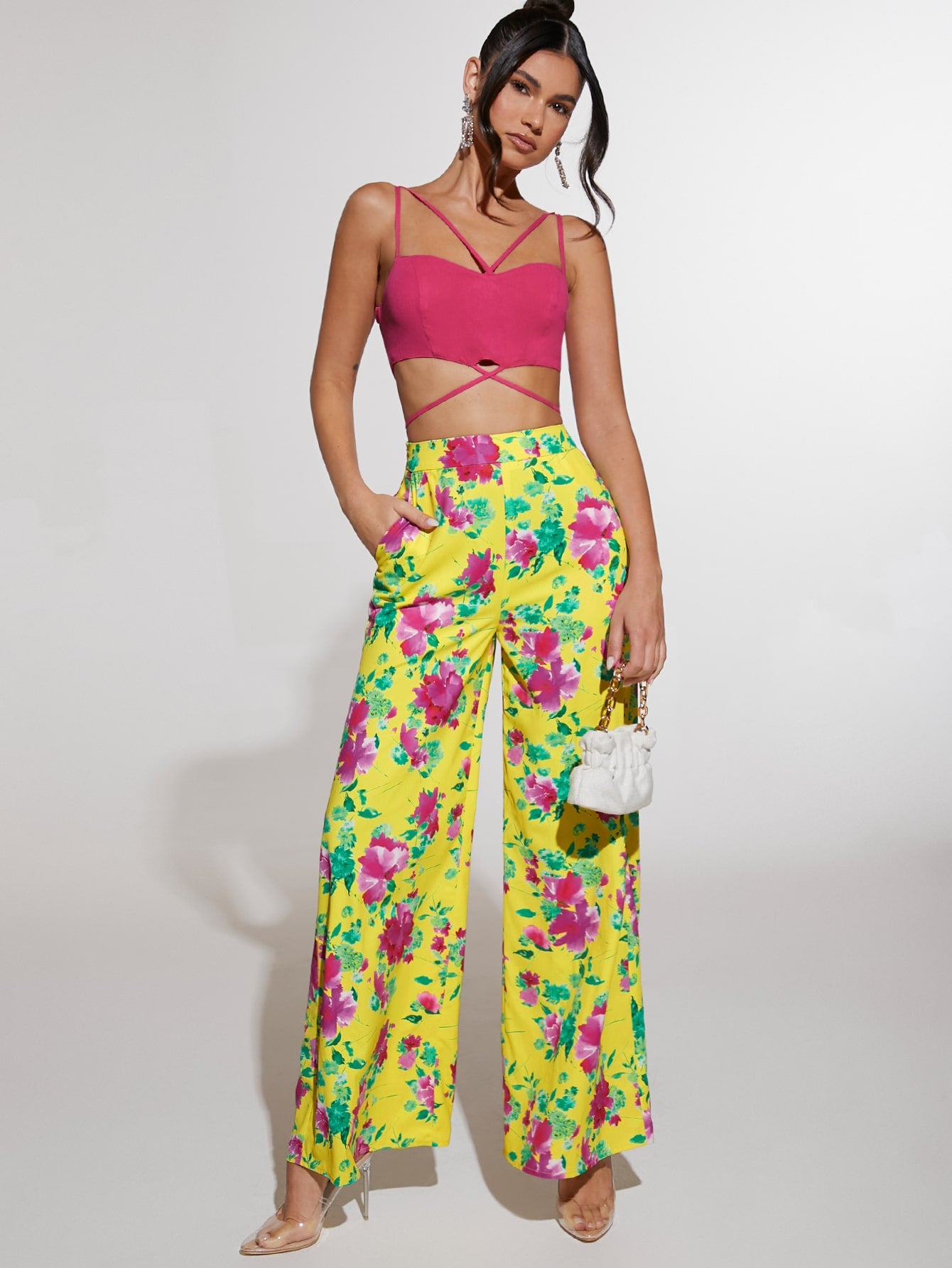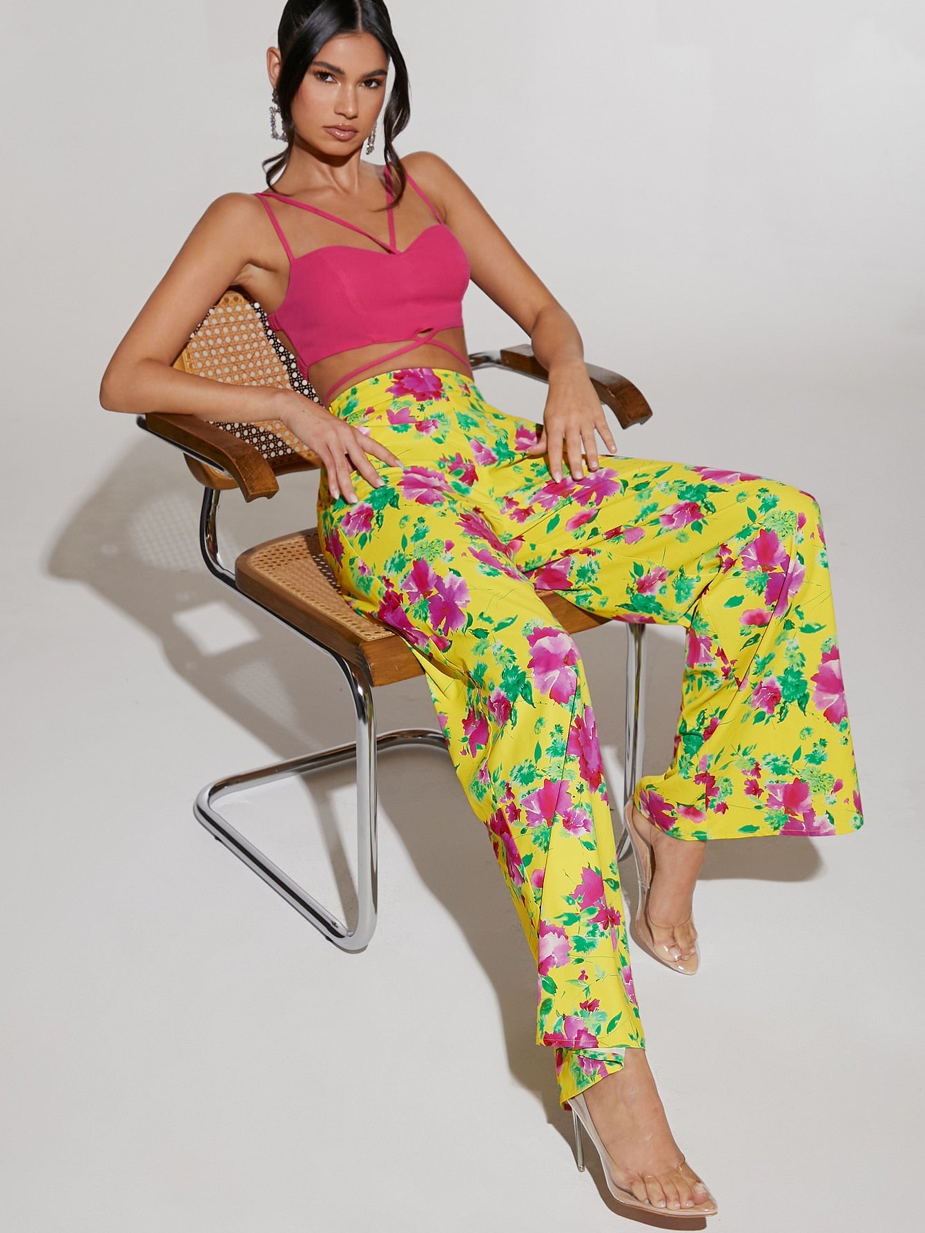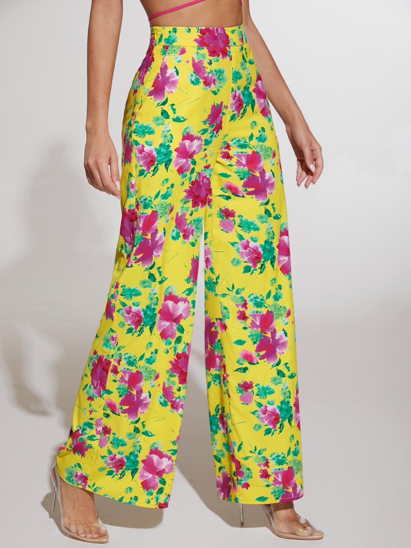 بنطلون بساق واسع طباعة الأزهار