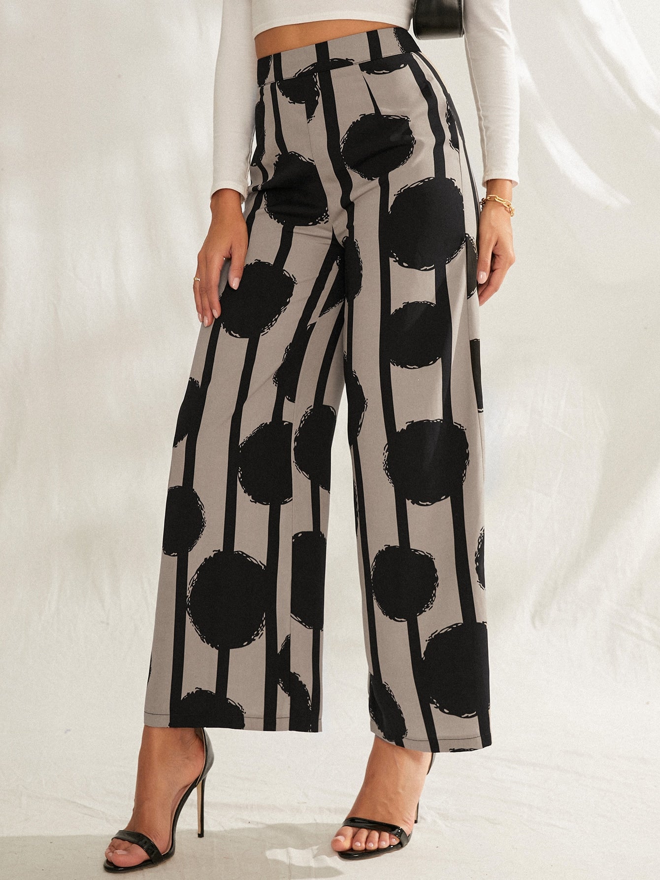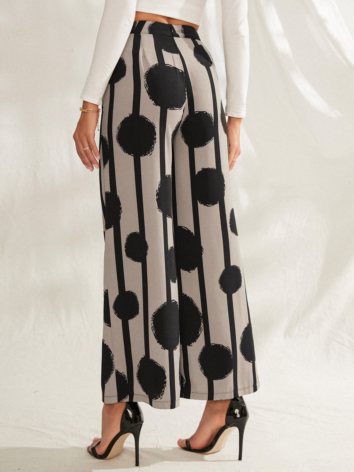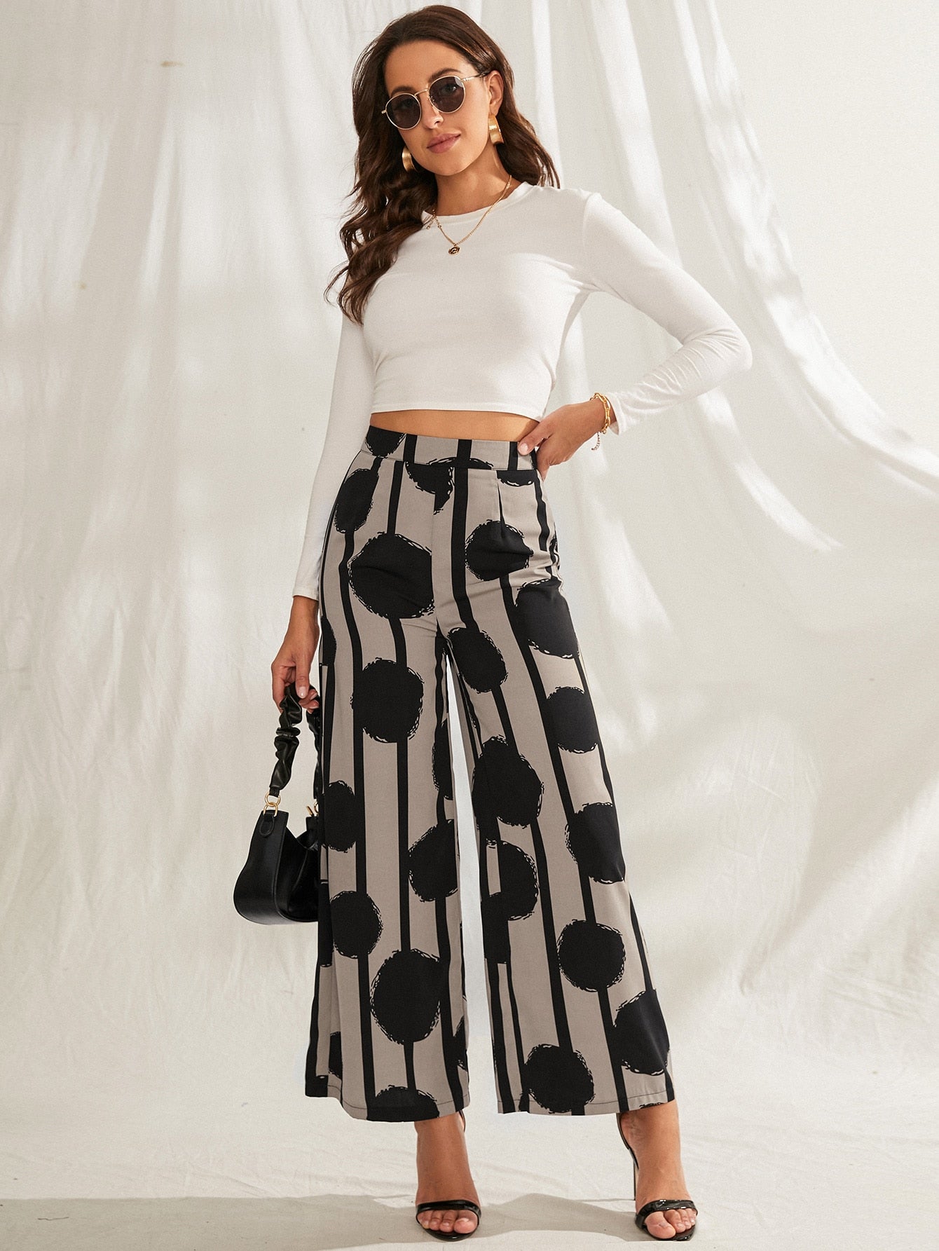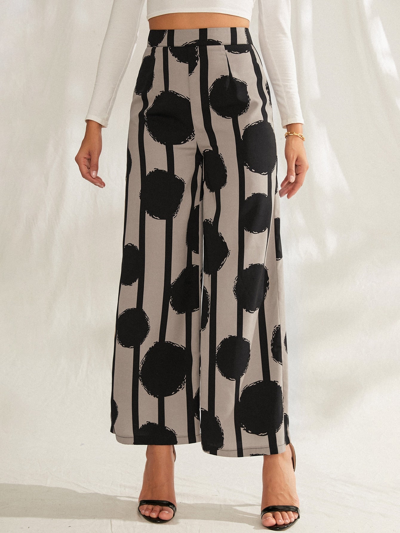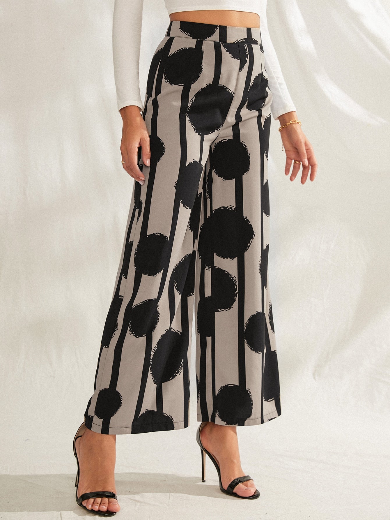 بنطلون بساق واسع مخطط و بطباعة منقط
