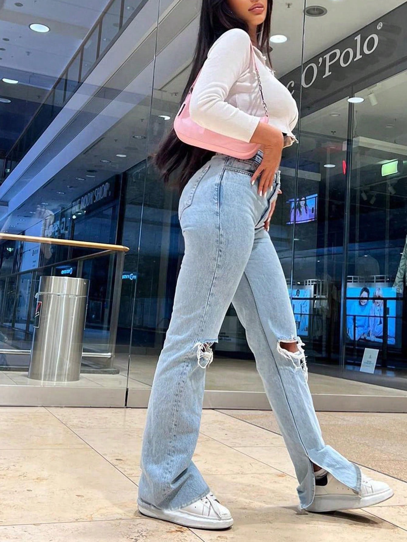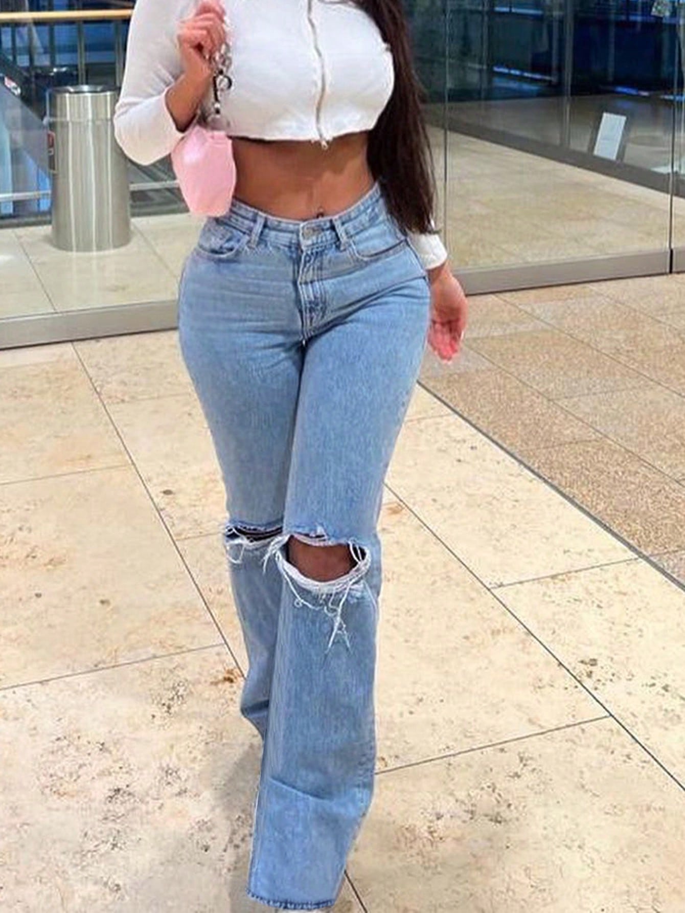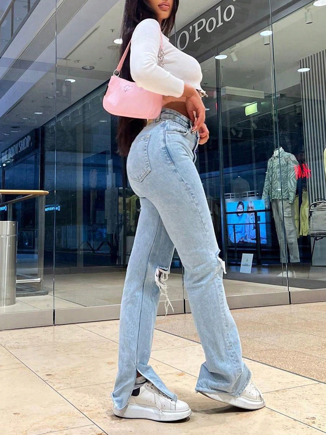 بنطلون جينز عاري الدم ذو فتحات وشقوق ، عصري ومثالي للإطلالة الكاجوال