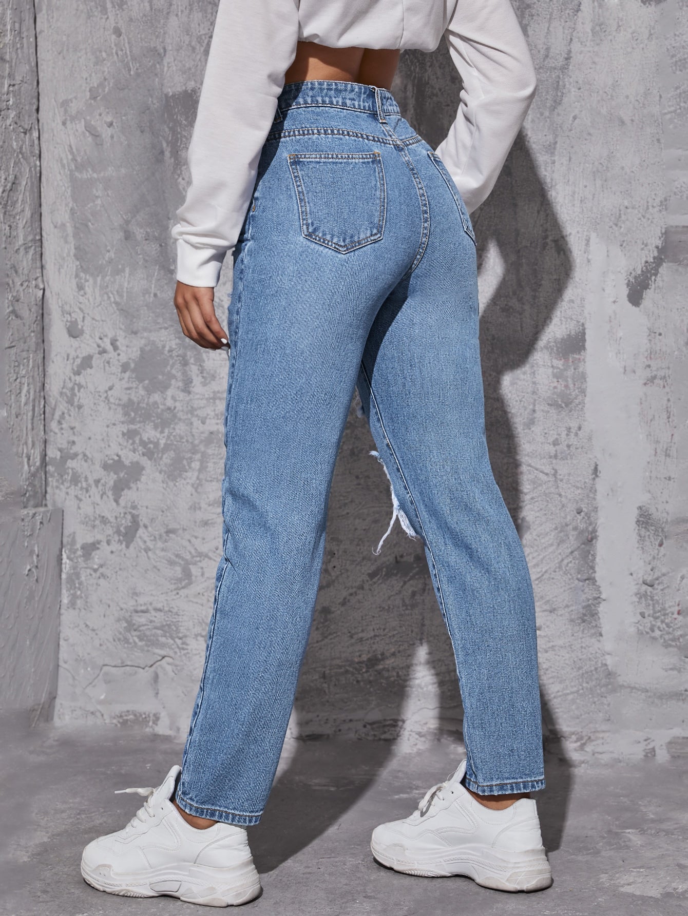 بنطلون جينز مدبب ممزق مهتري الحواف