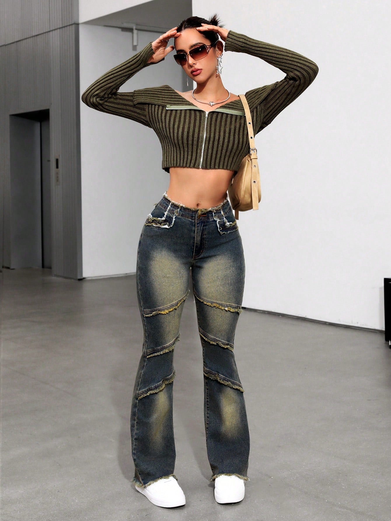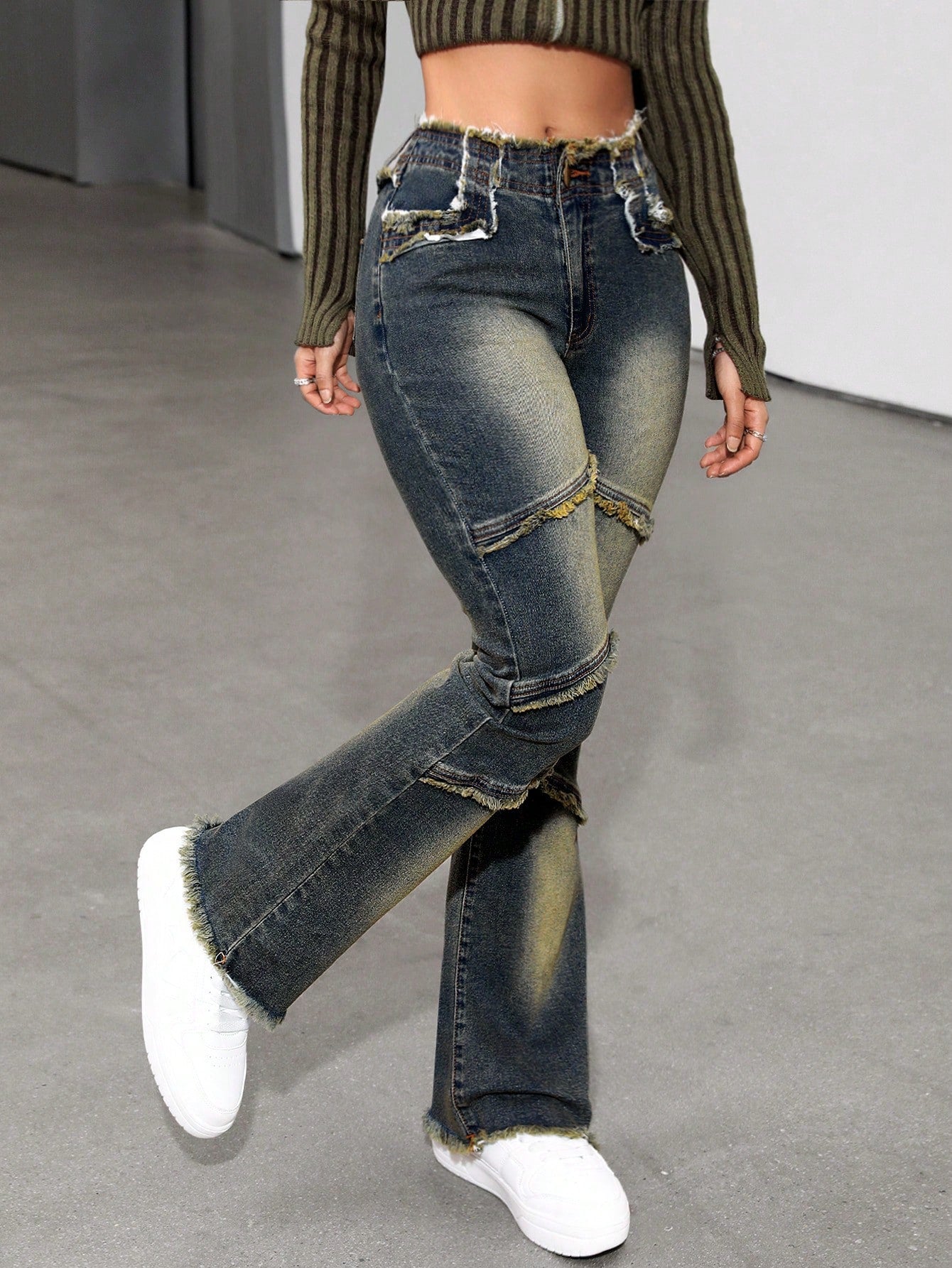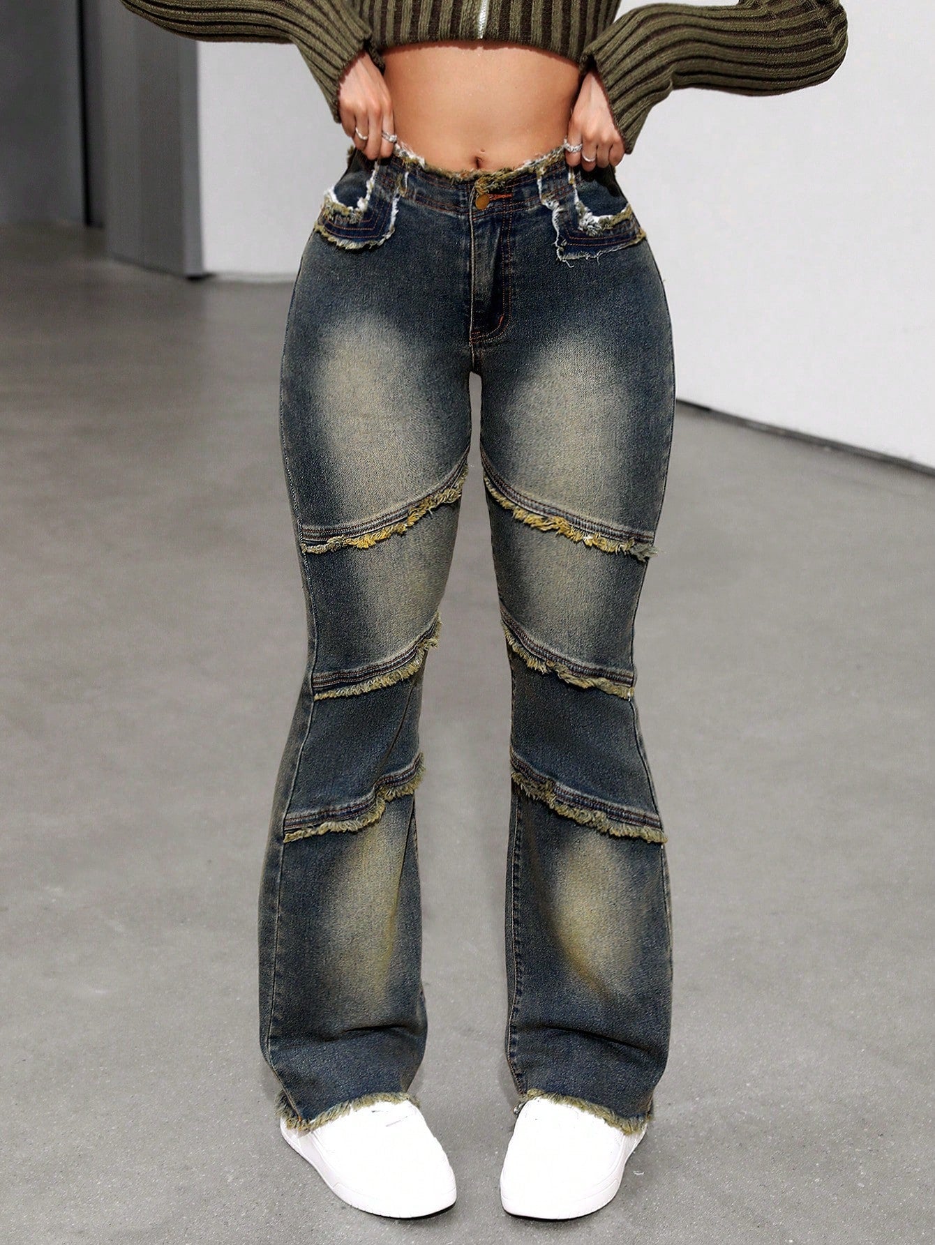 بنطلون جينز موسع للساقين بطرف ممزق مغسول بالماء