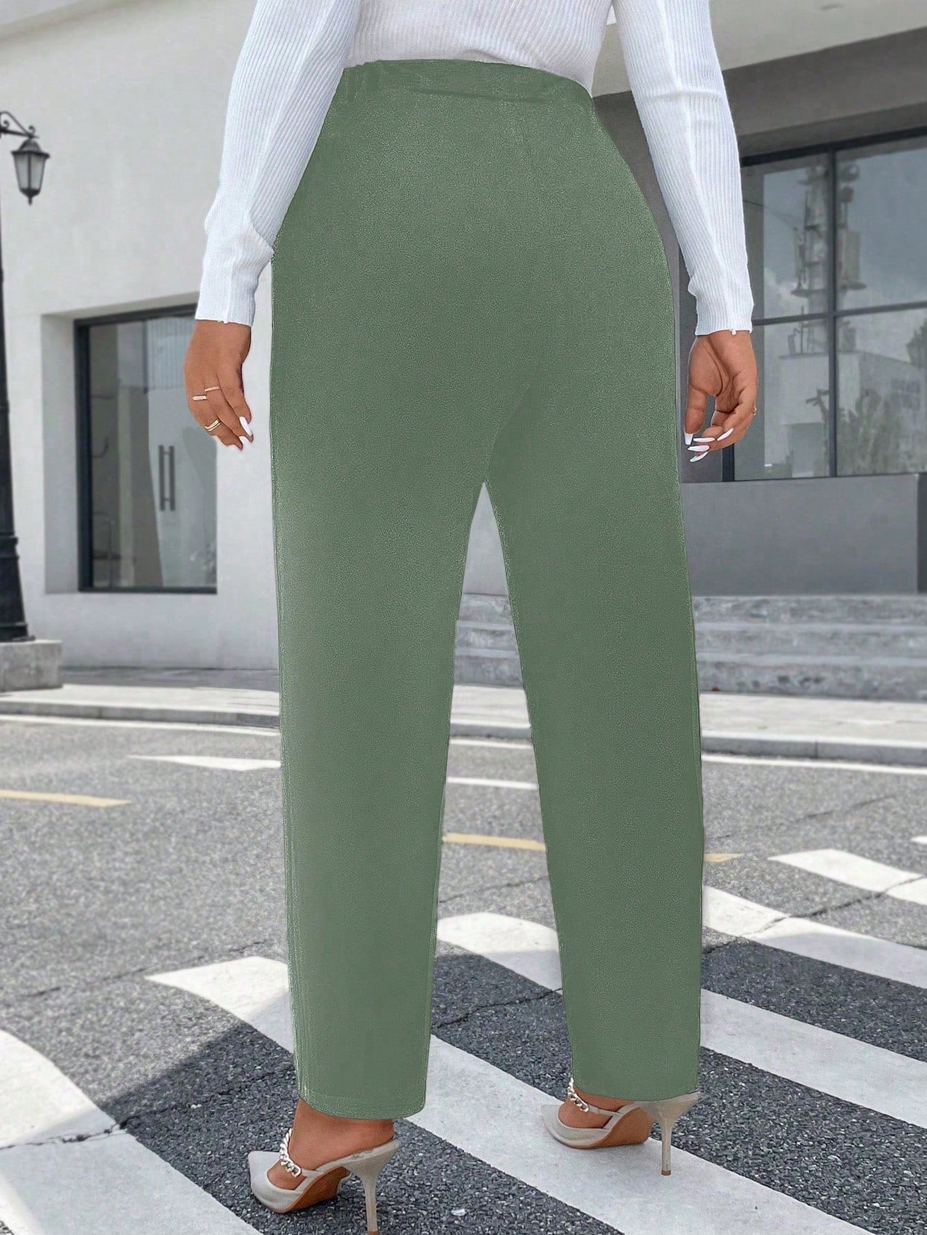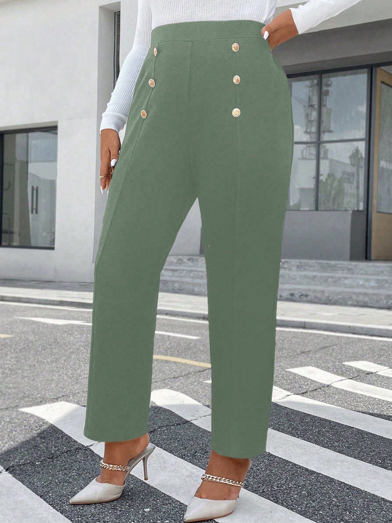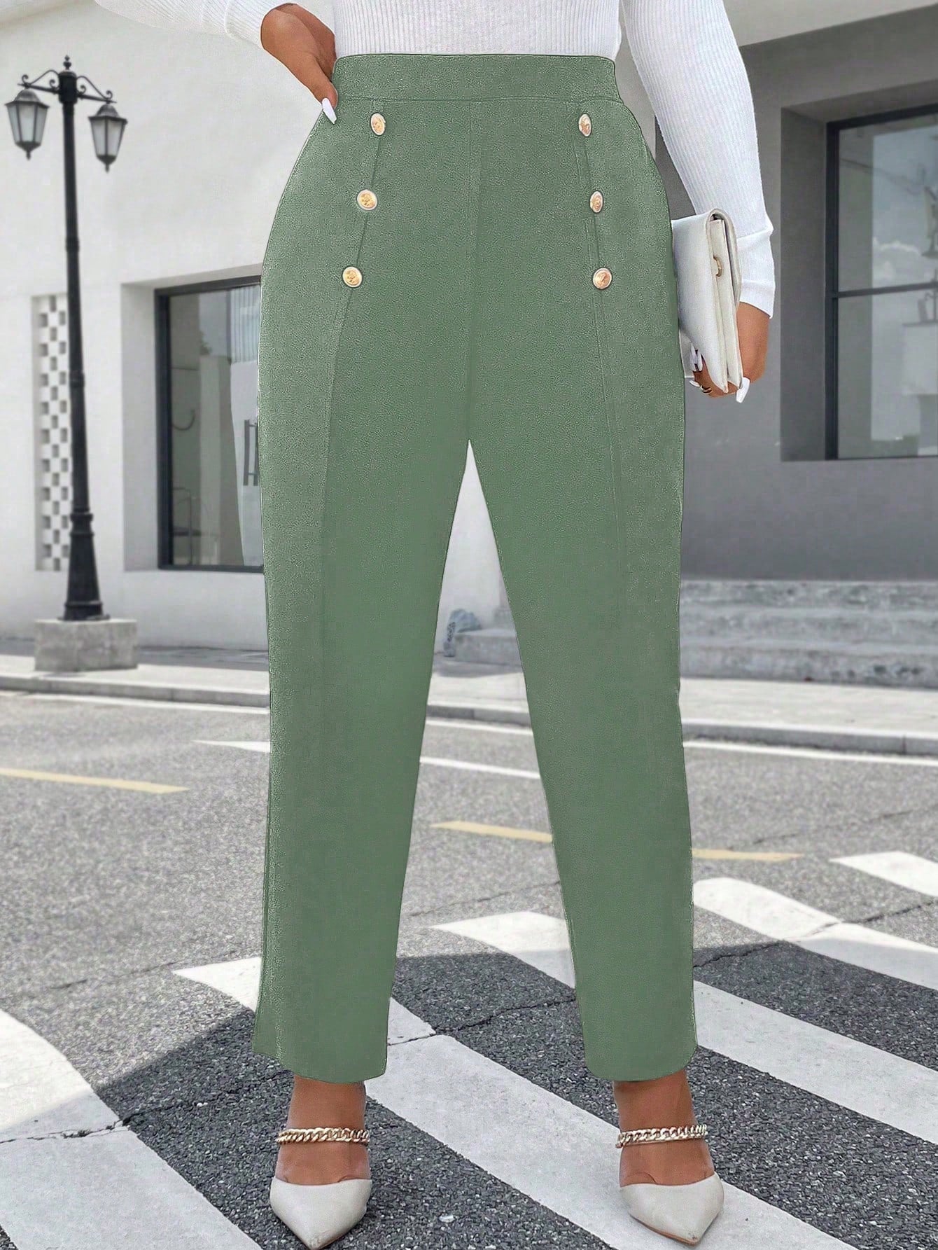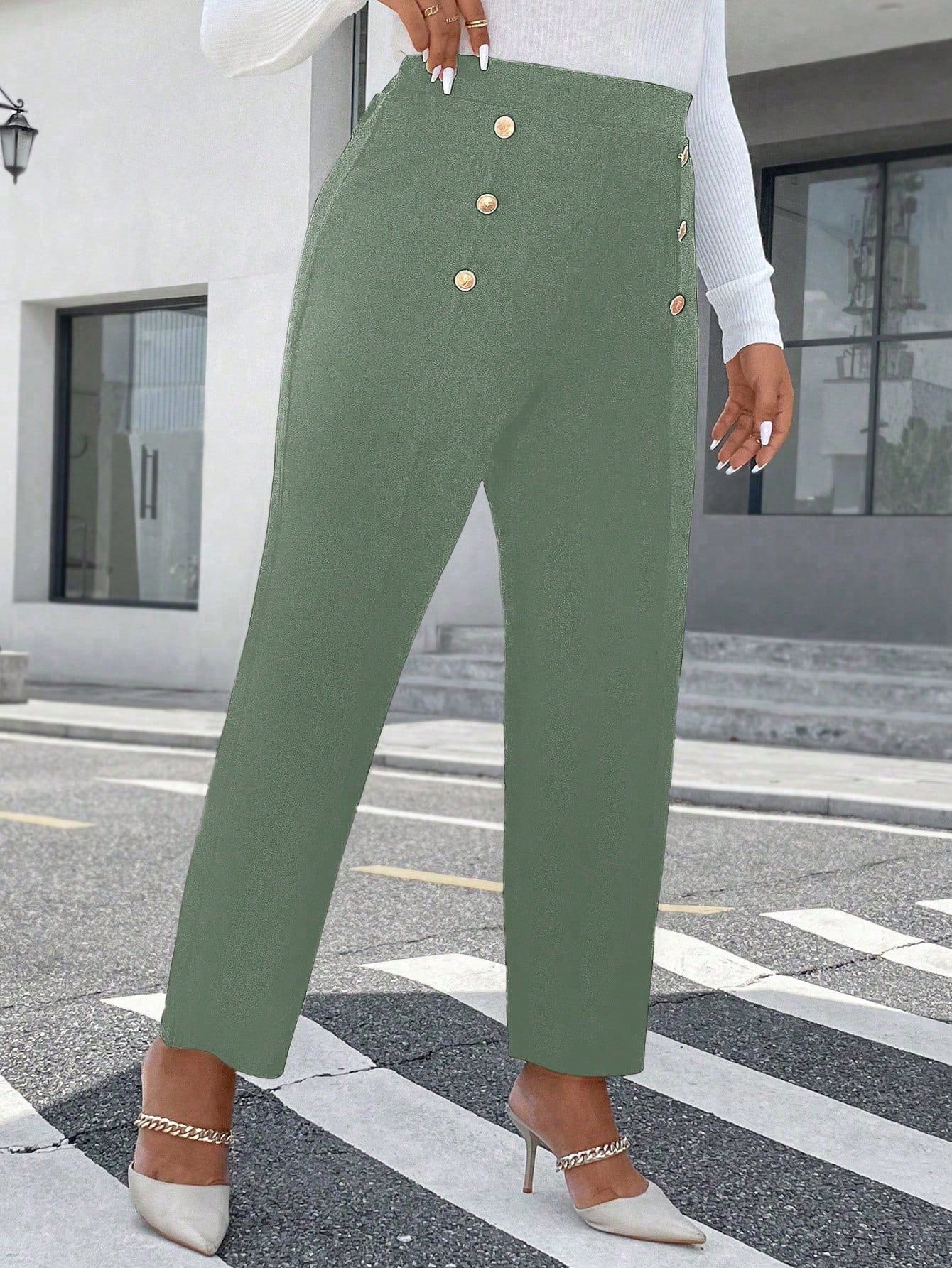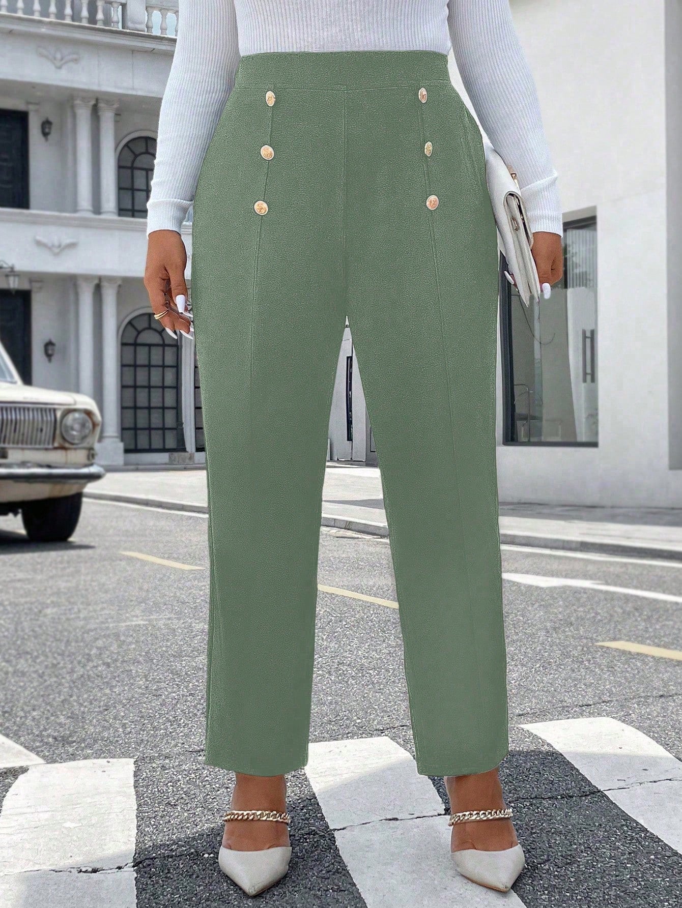 بنطلون رائج وأنيق ذو تصميم مزدوج الصدر للنساء من مقاس كبير