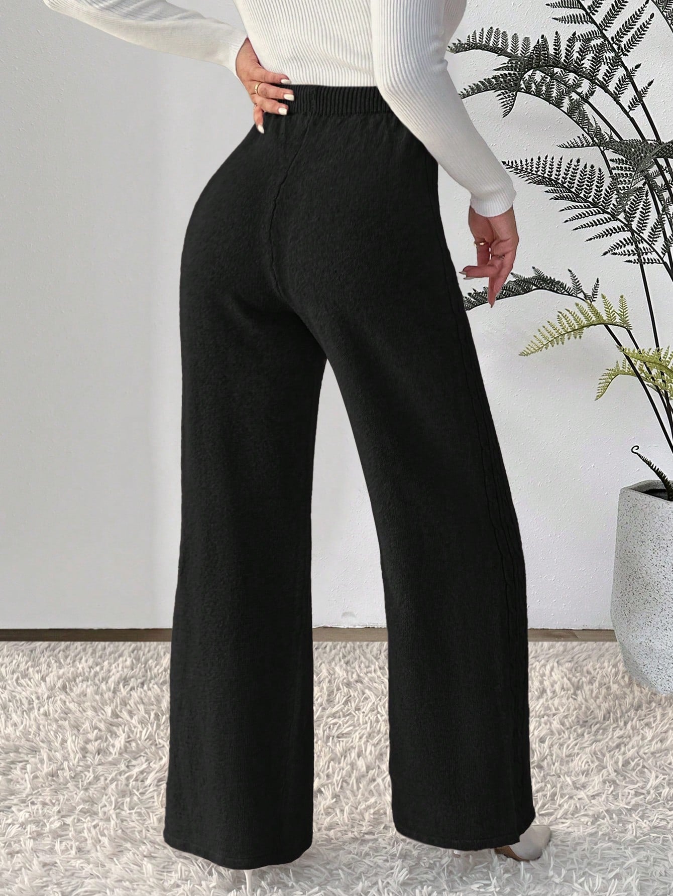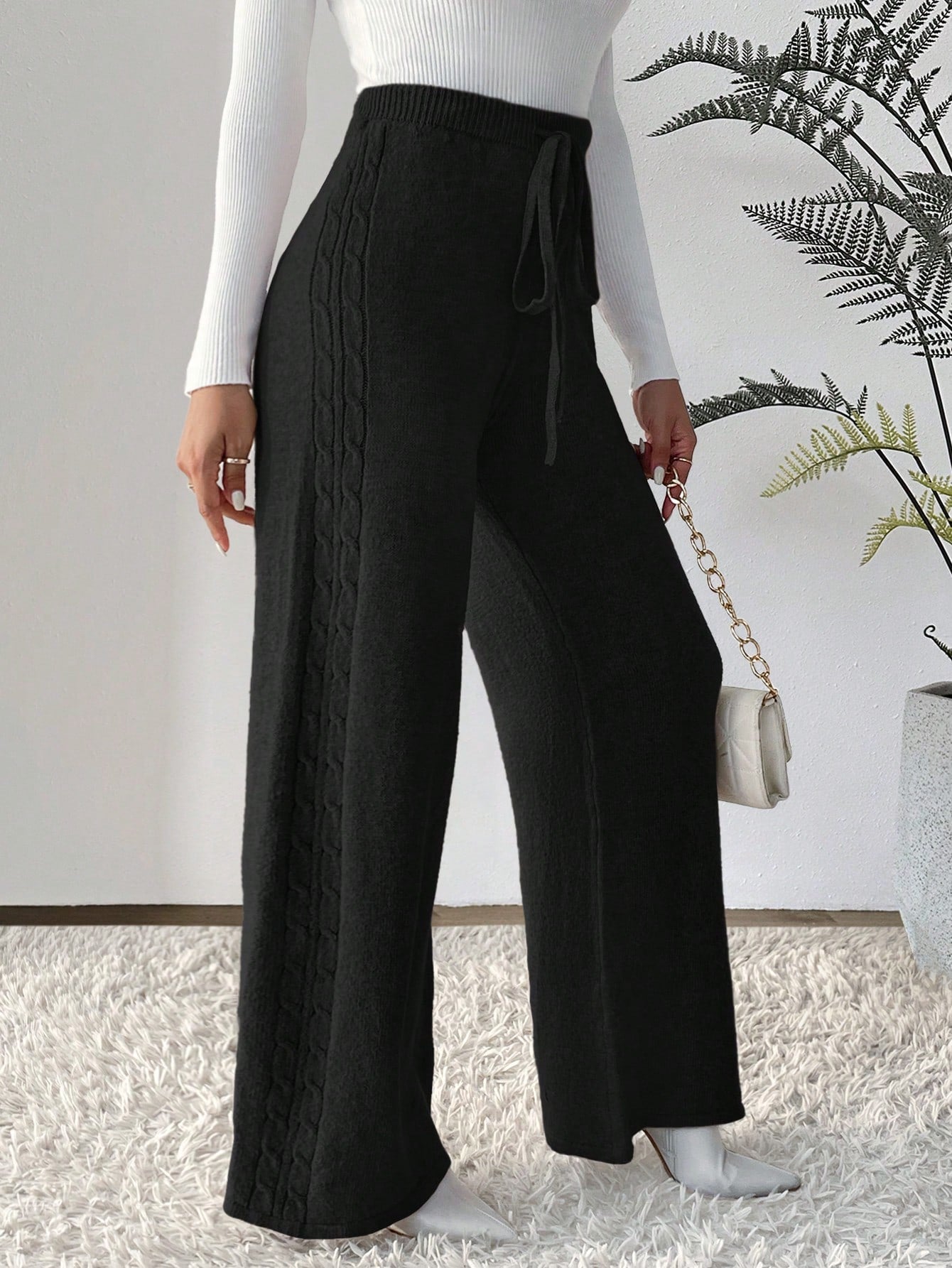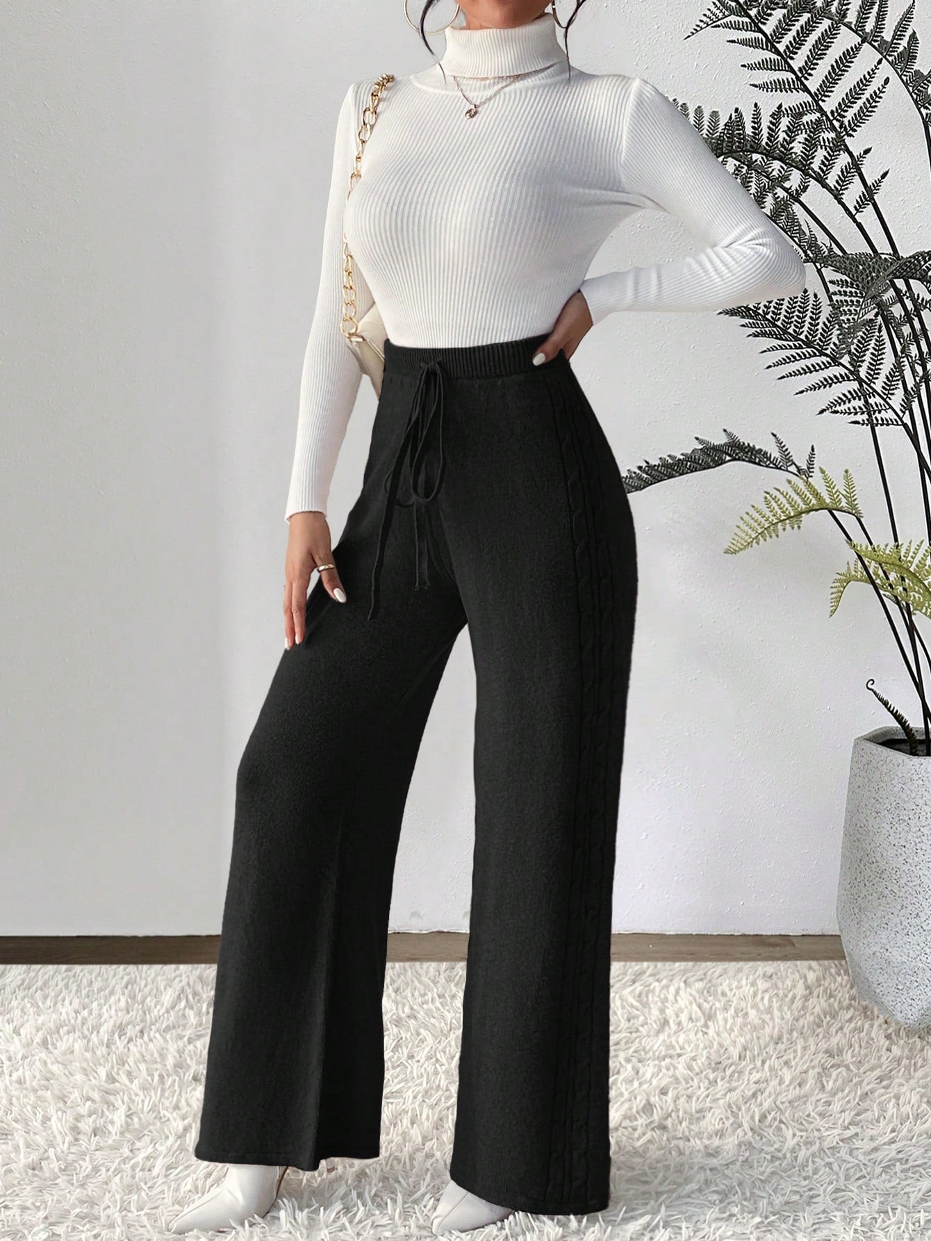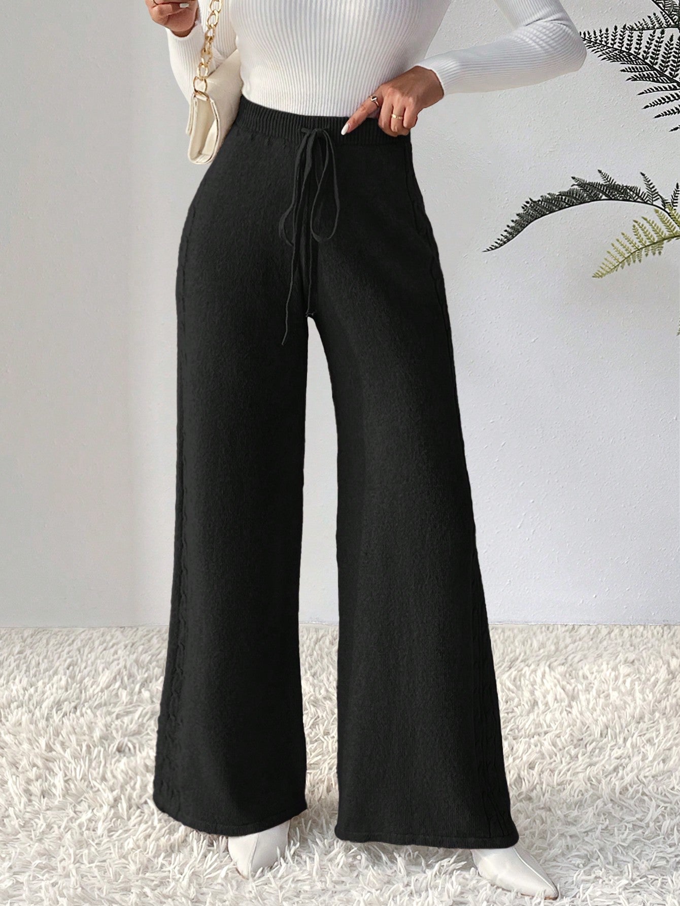 بنطلون رباط خصر ساق عريضة حياكة