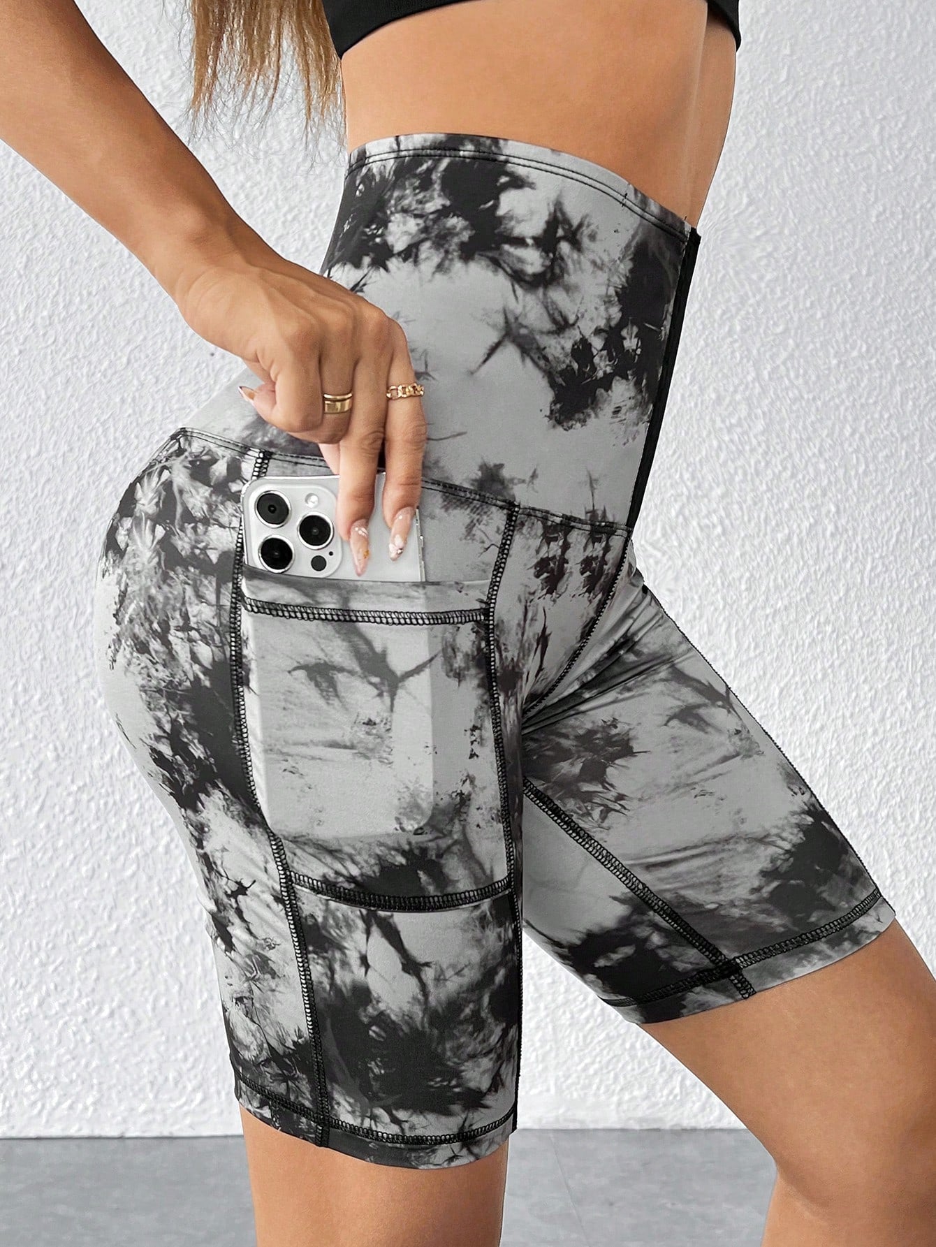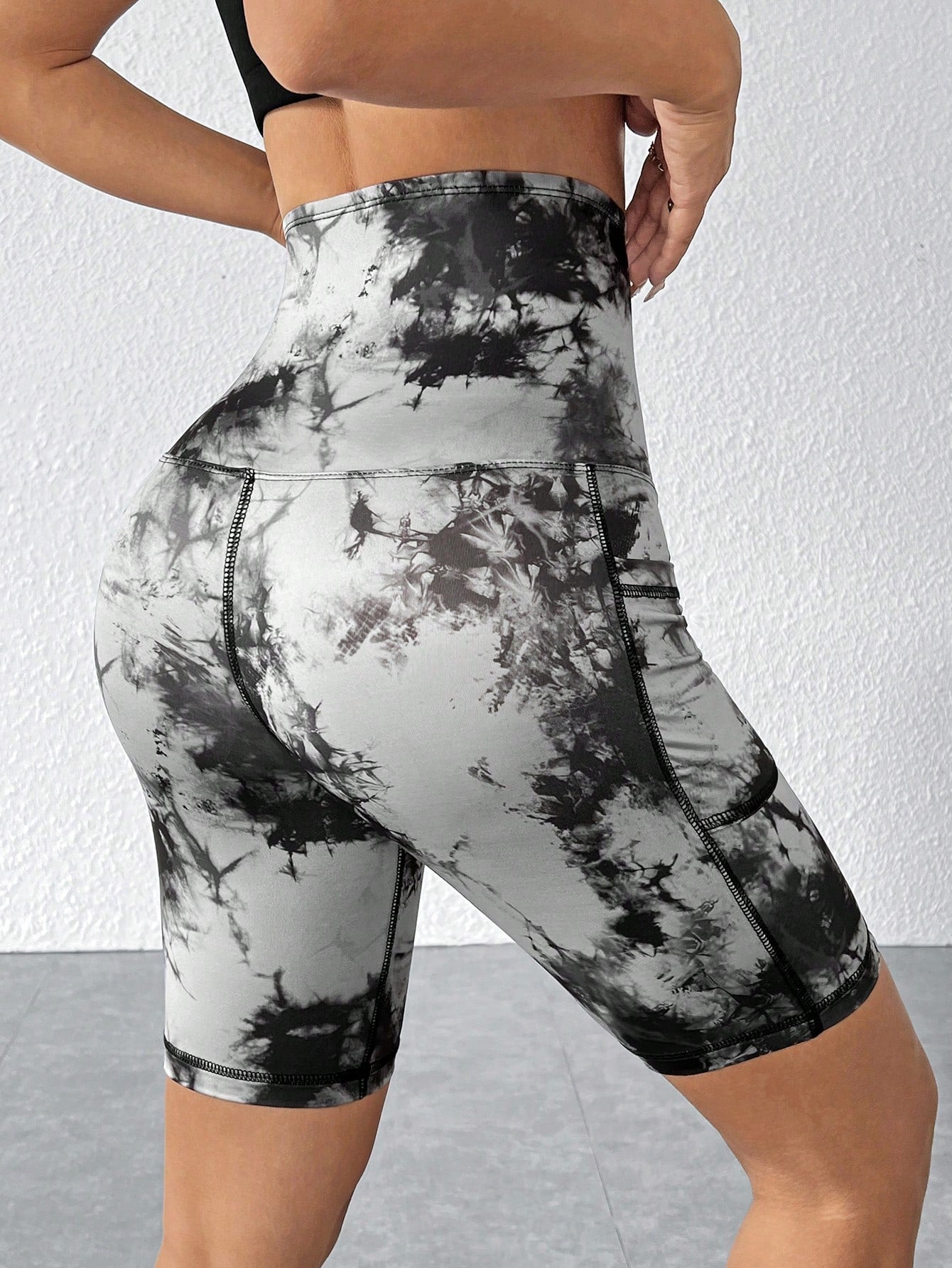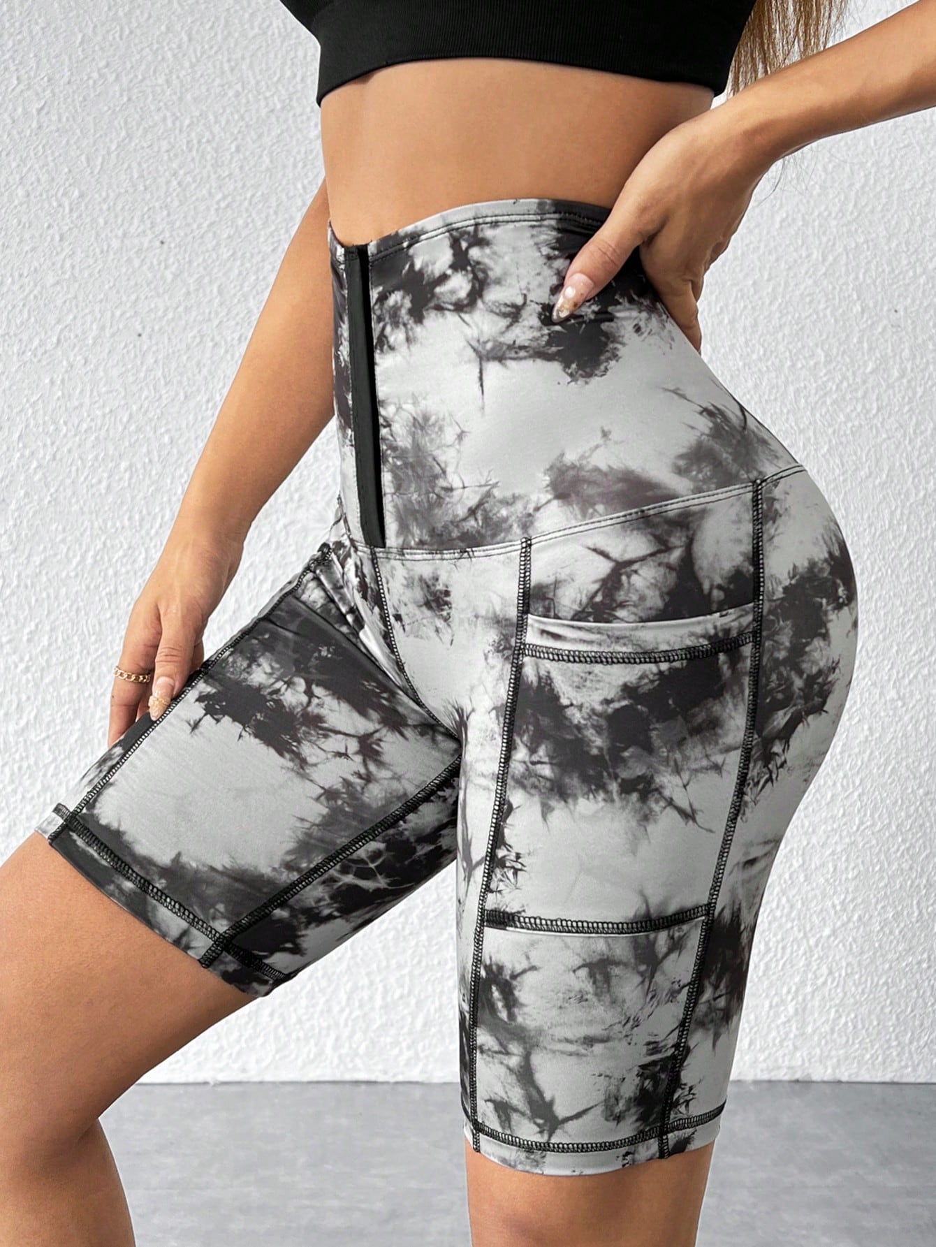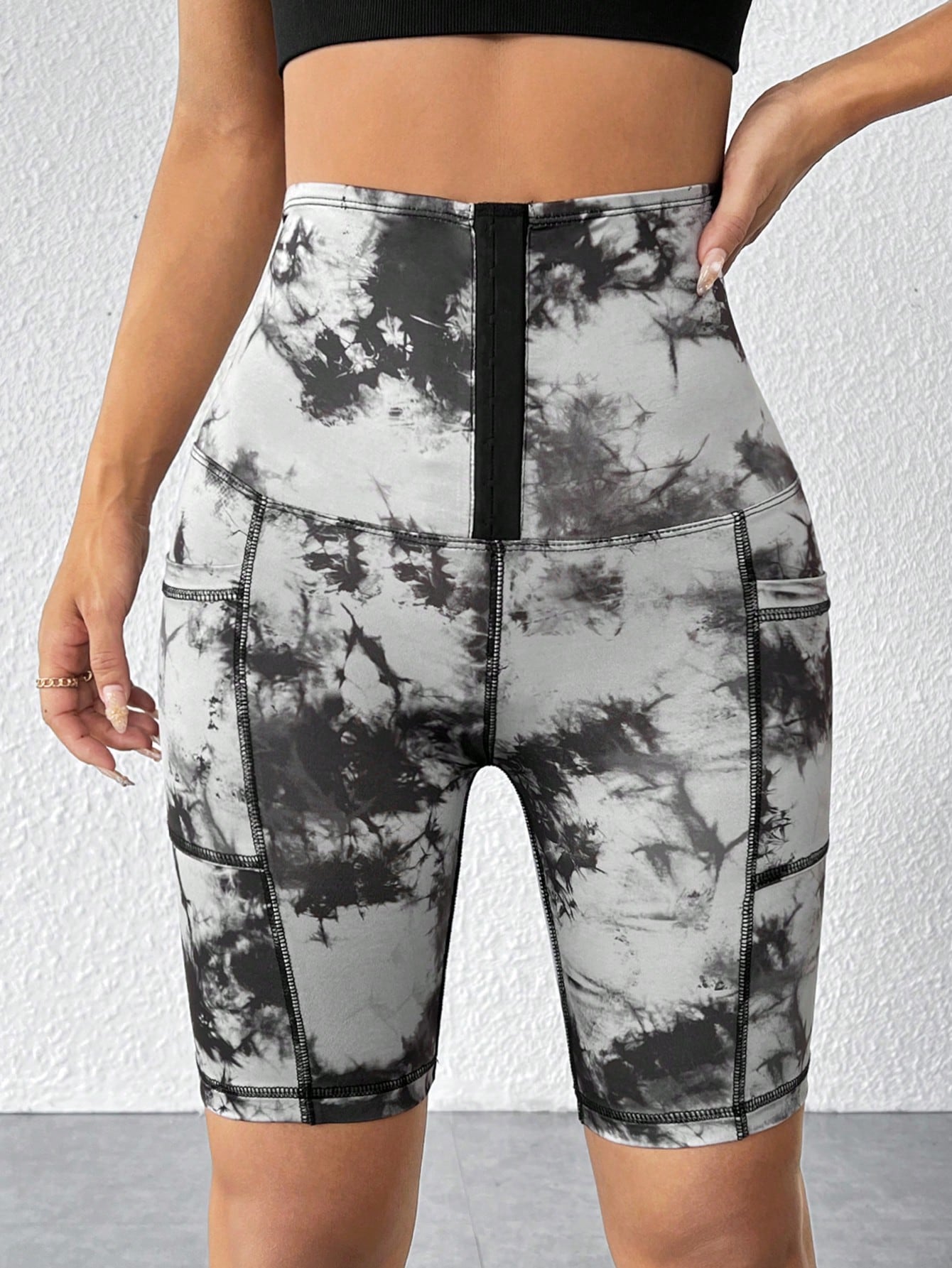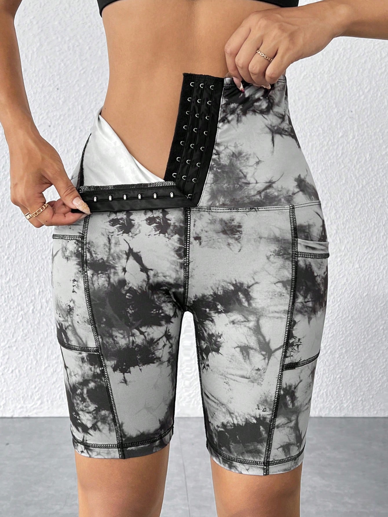 بنطلون ضيق عالي المرونة بعصابة شديدة التحديد وخصر عالي بزر للنساء بتأثير الصباغة