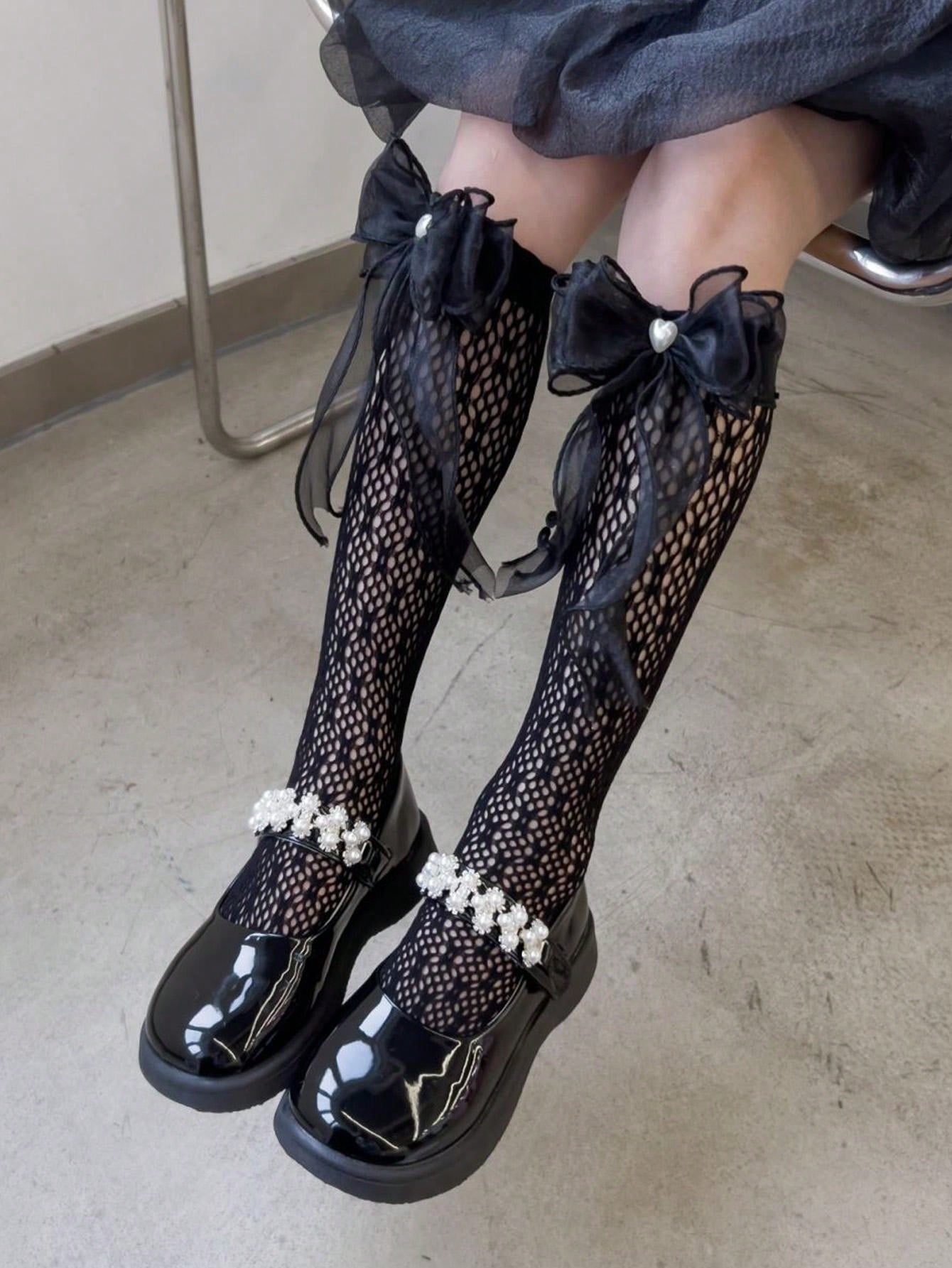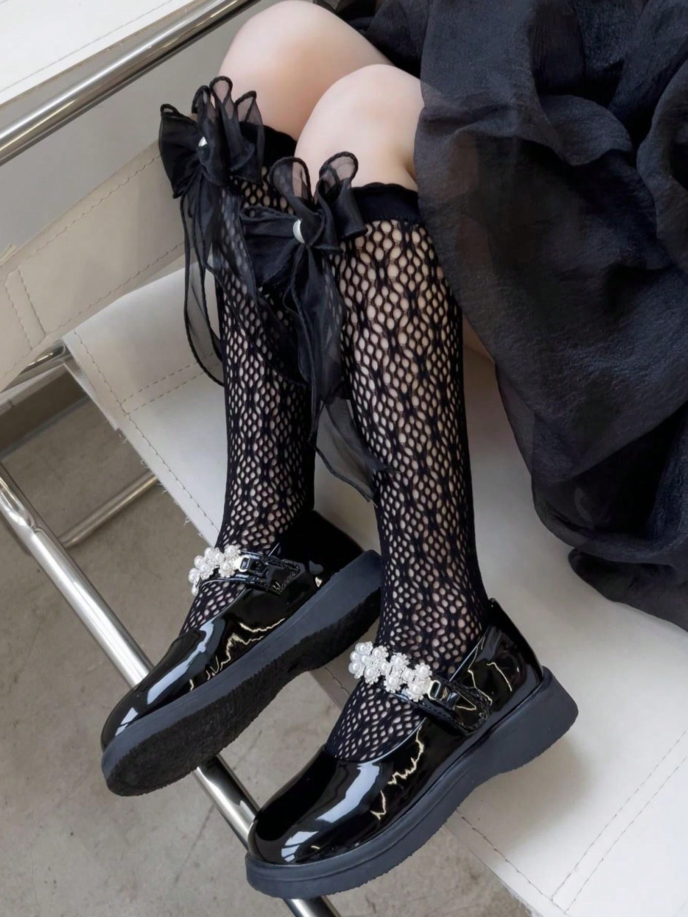 بنطلون ضيق للفتيات للربيع والصيف مع جوارب عالية الركبة من الدانتيل و الشبكة ومزينة باللؤلؤ للطبقة الأساسية