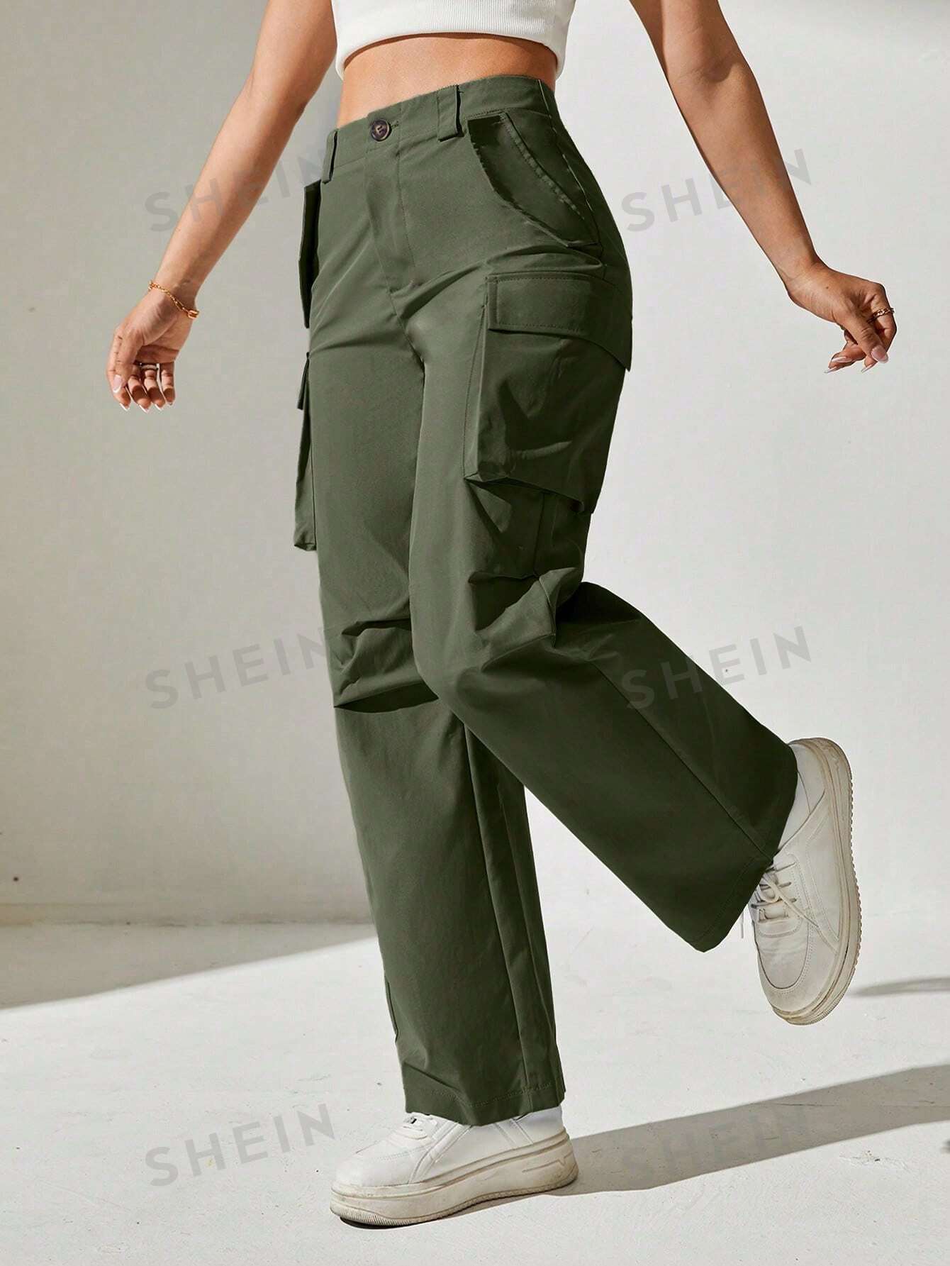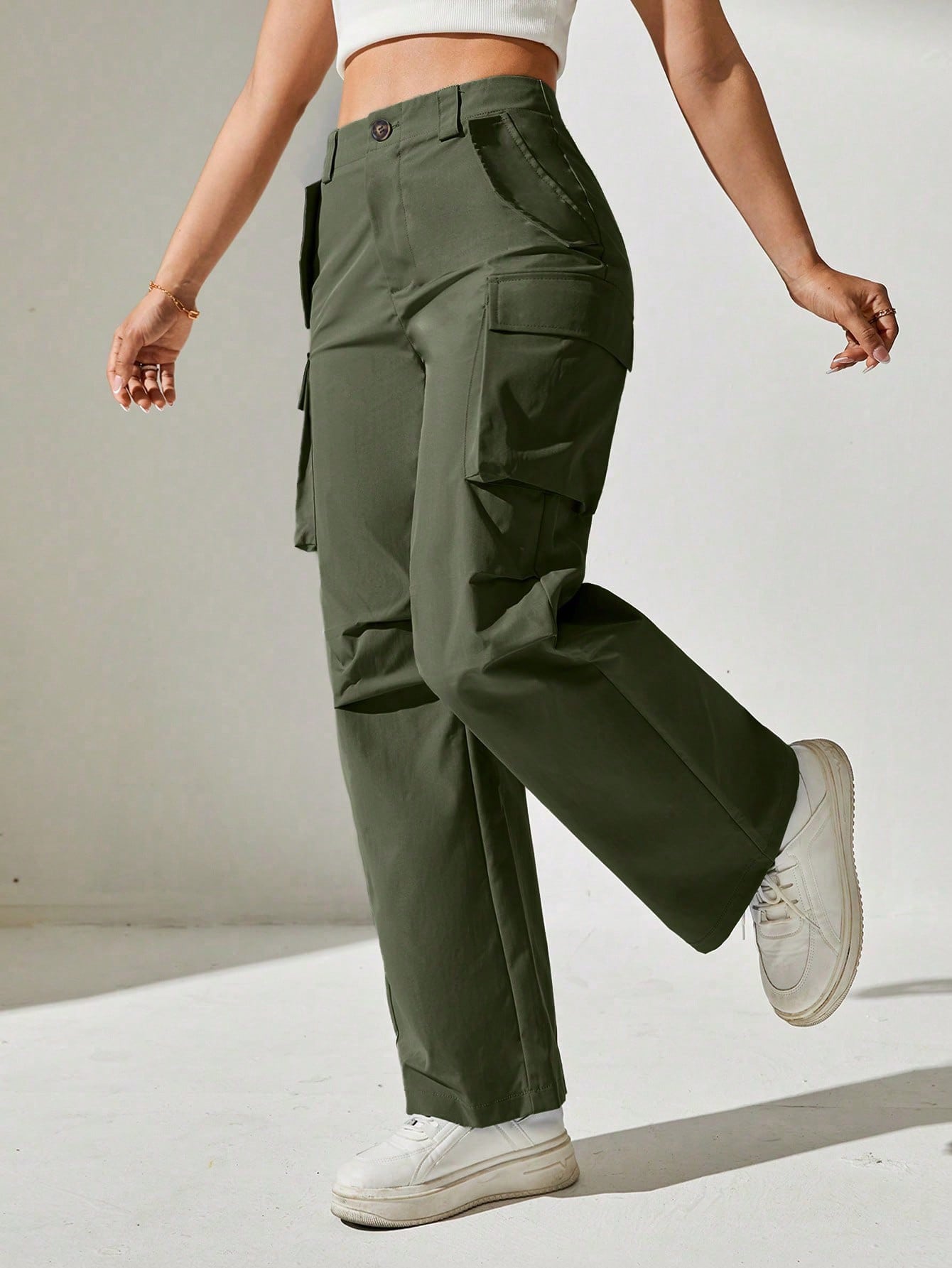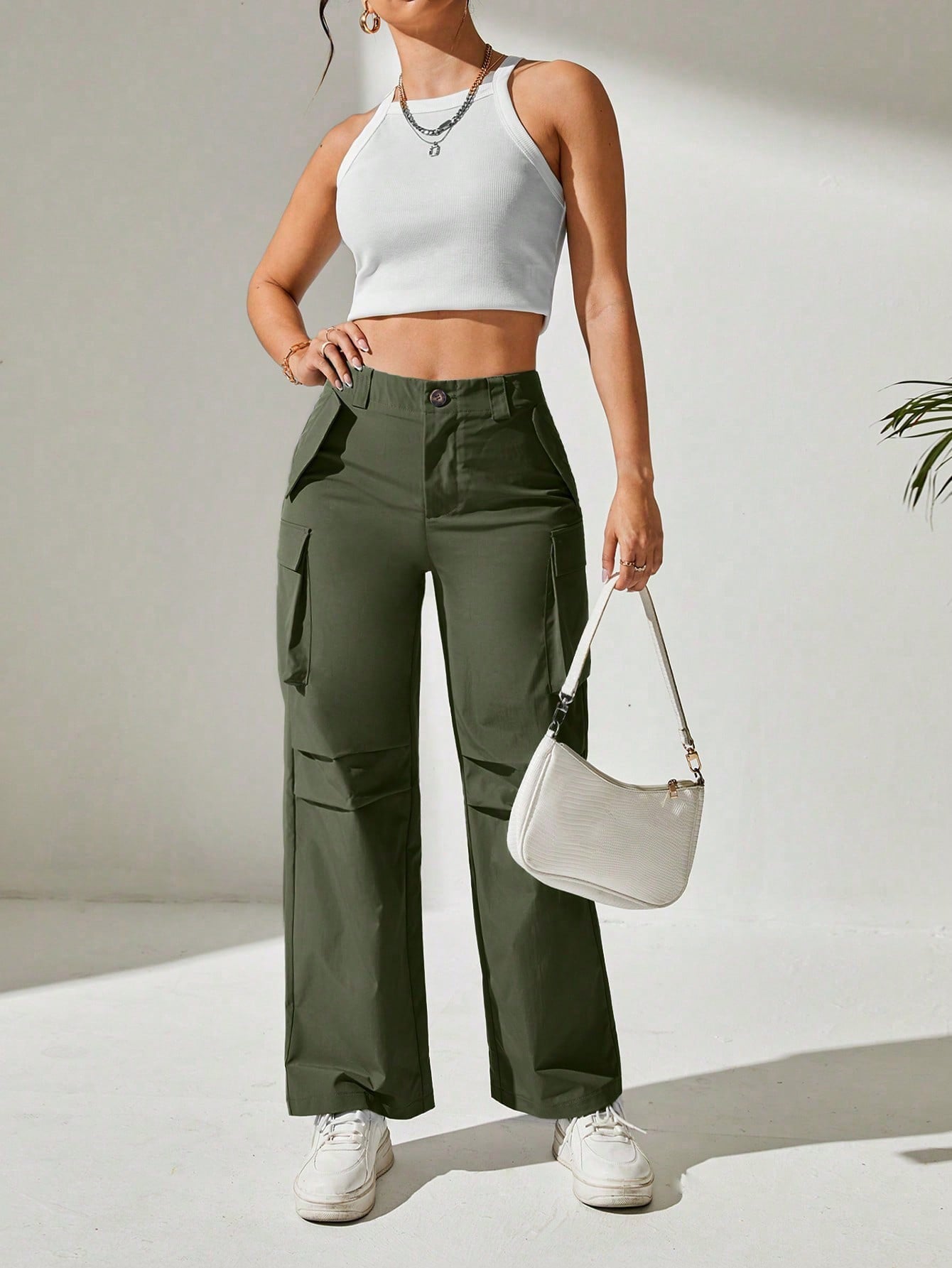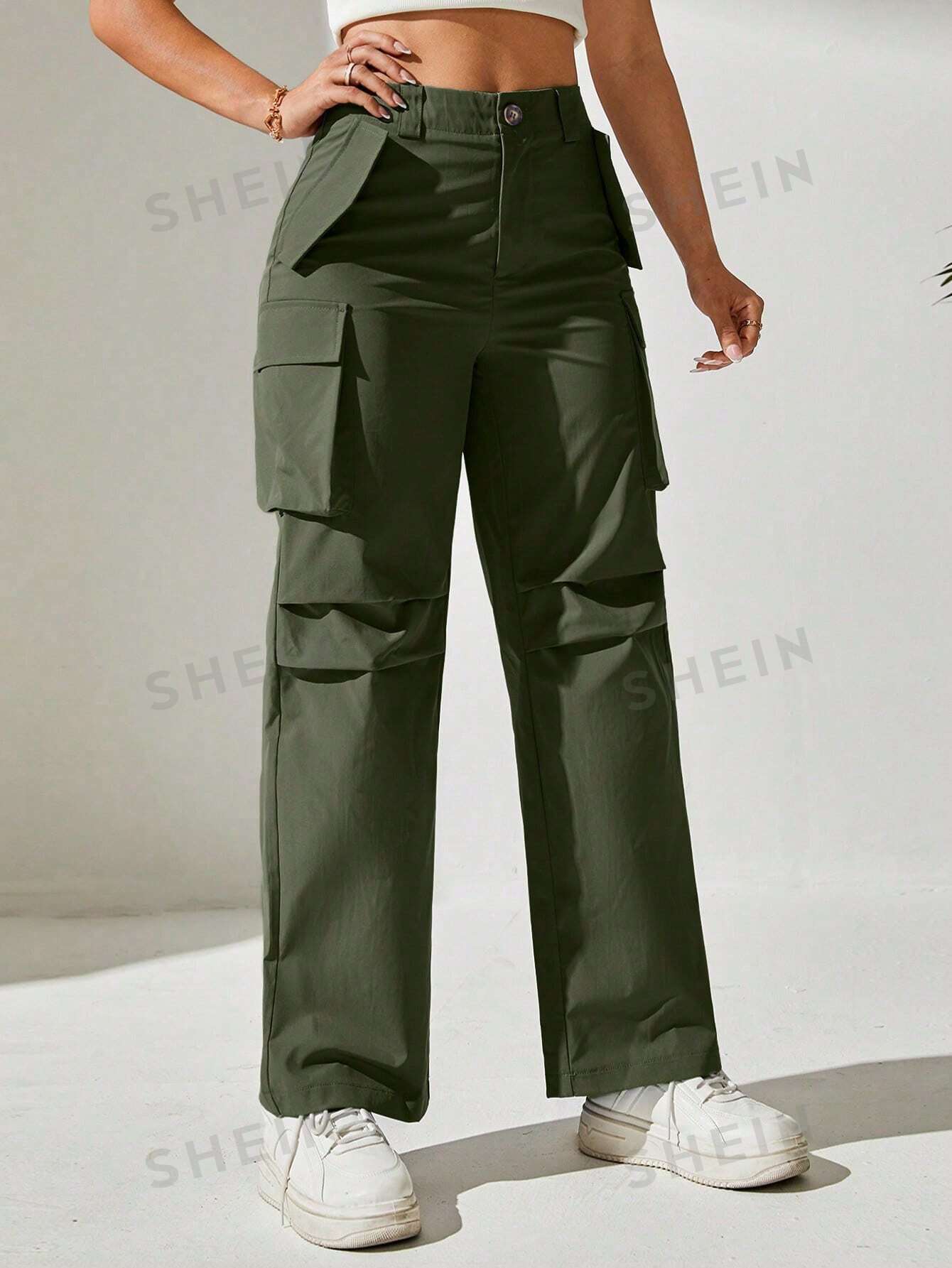 بنطلون كارجو موحدة اللون جيب قلاب