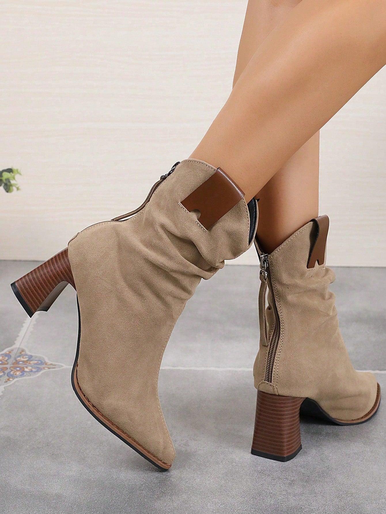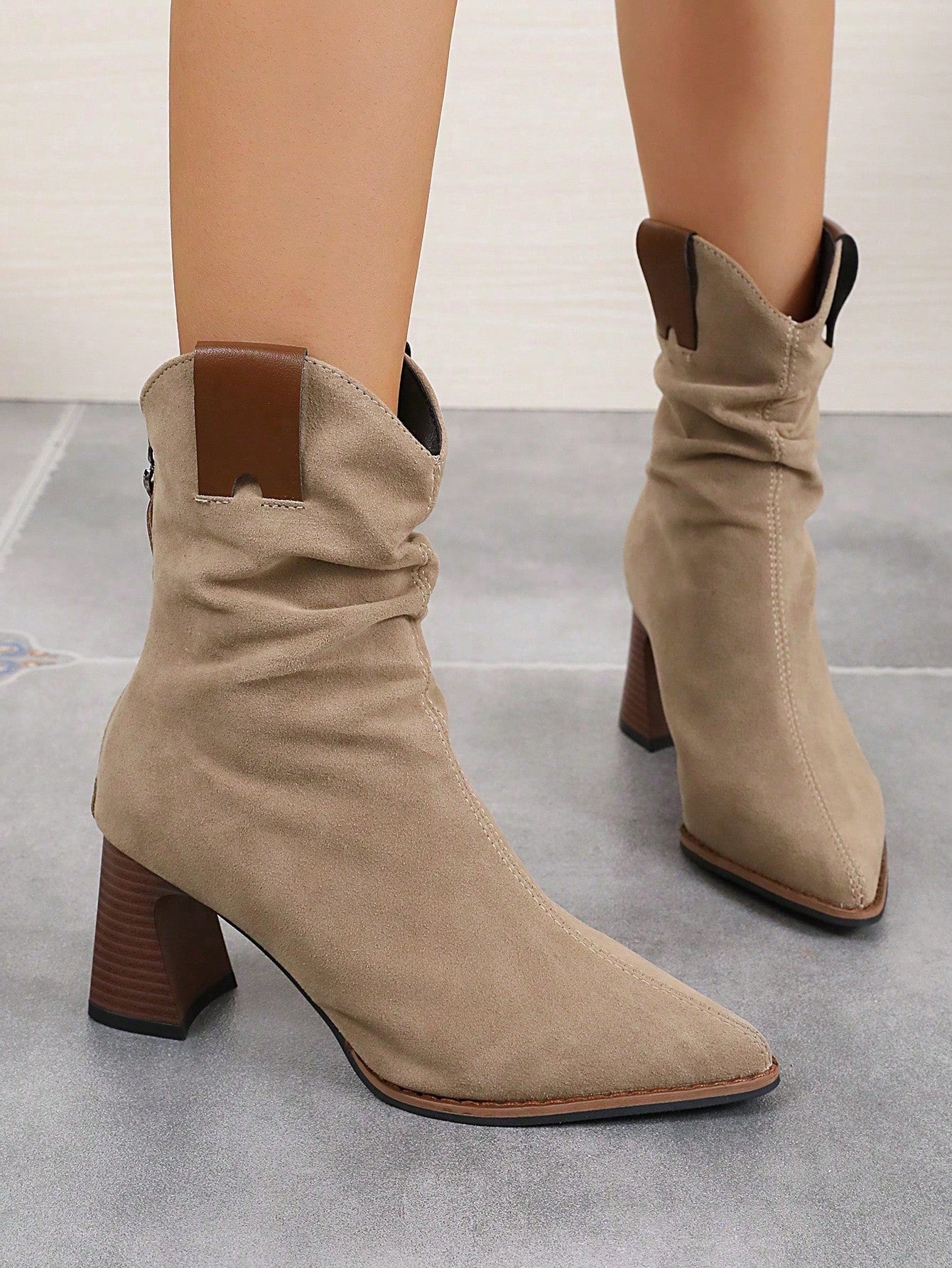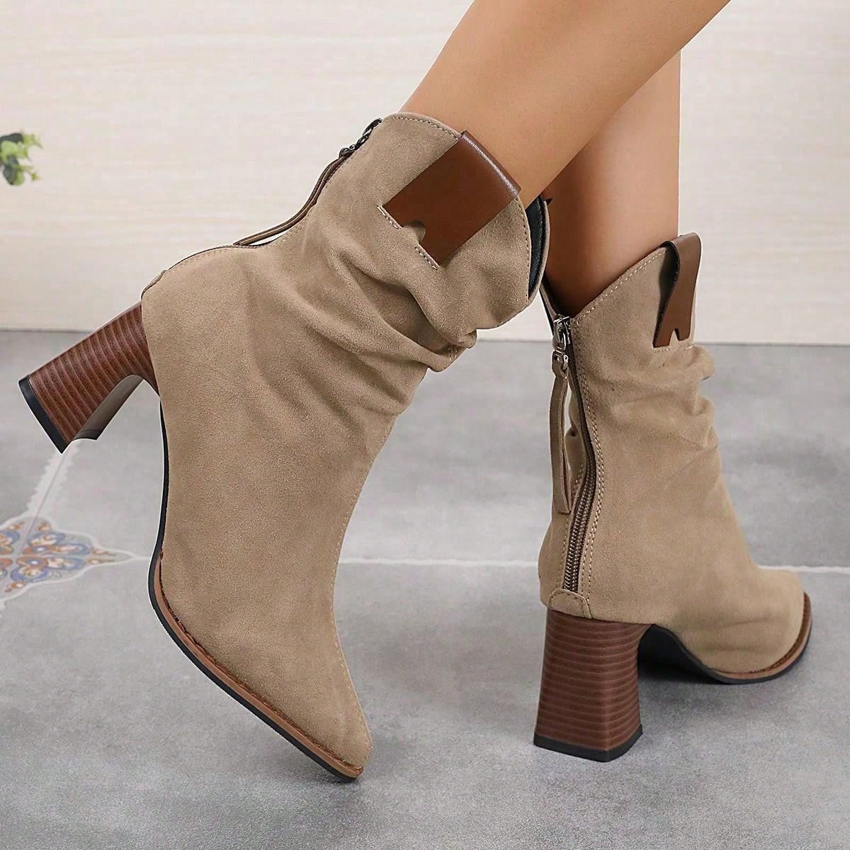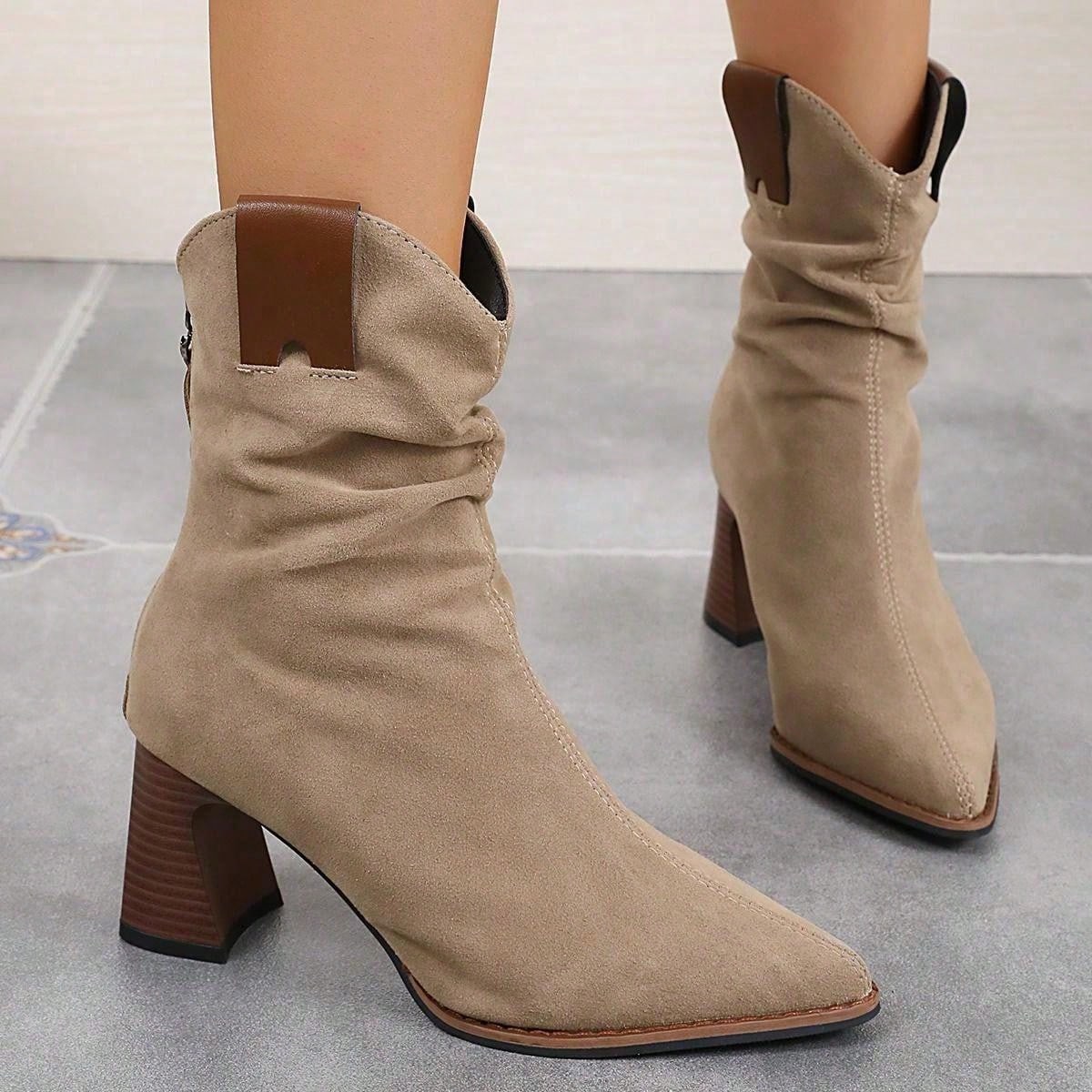 بوت الكاحل الكاجوال للنساء ،بوت ويسترن مصنوعة يدويًا من جلد الغزال الرجعي بكعب كتلي