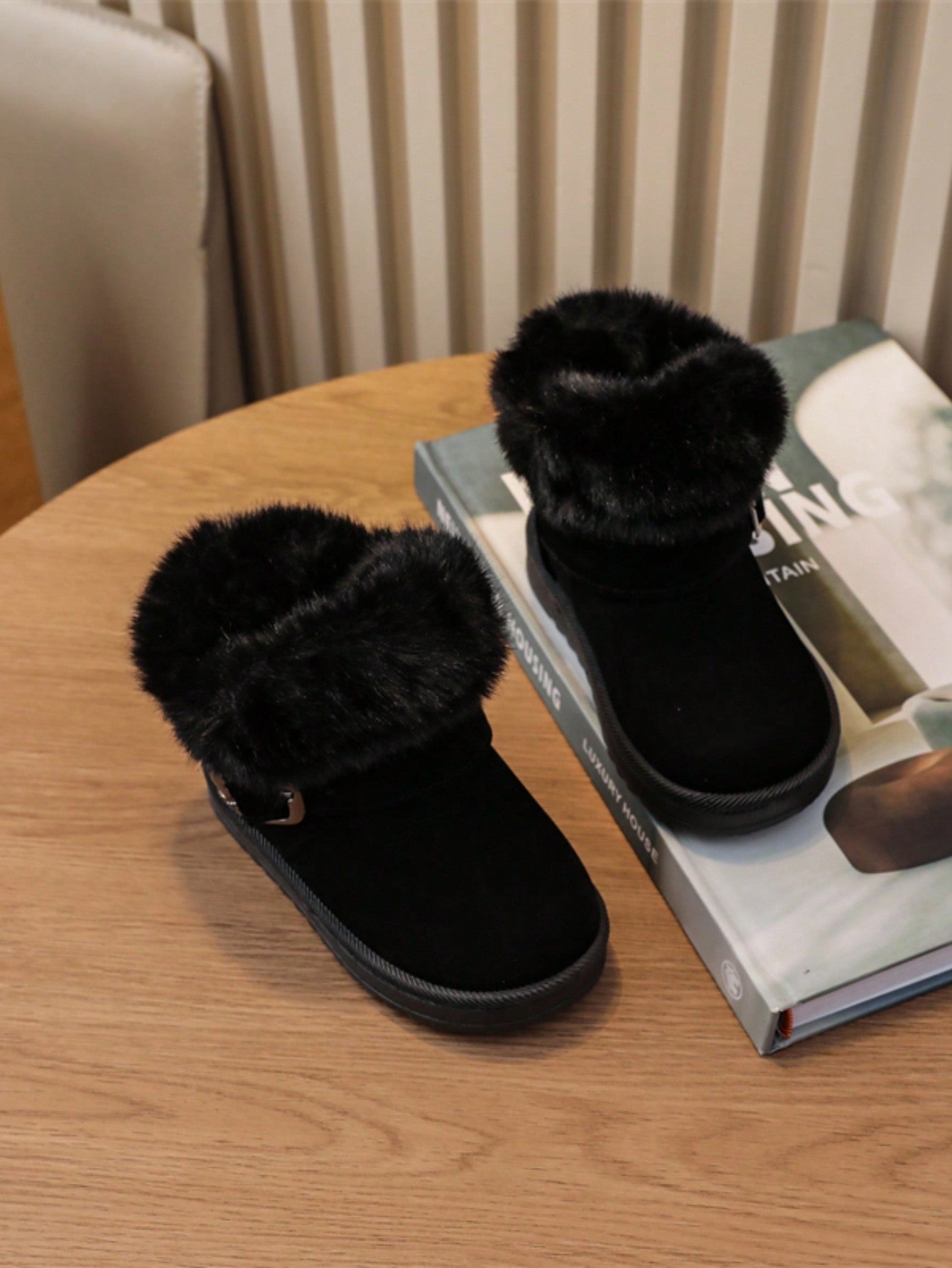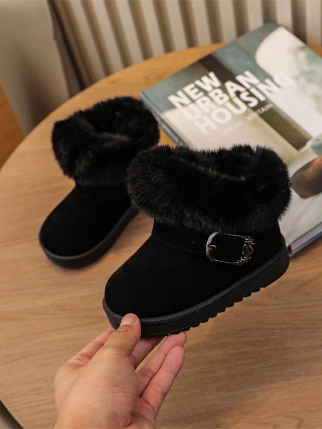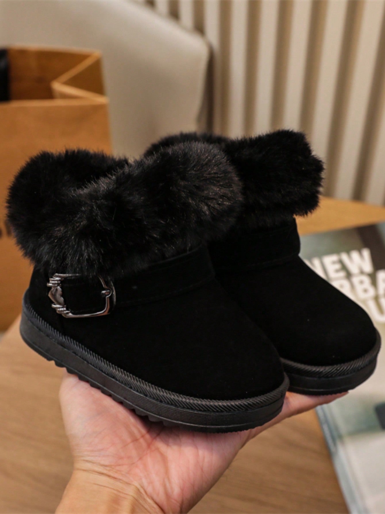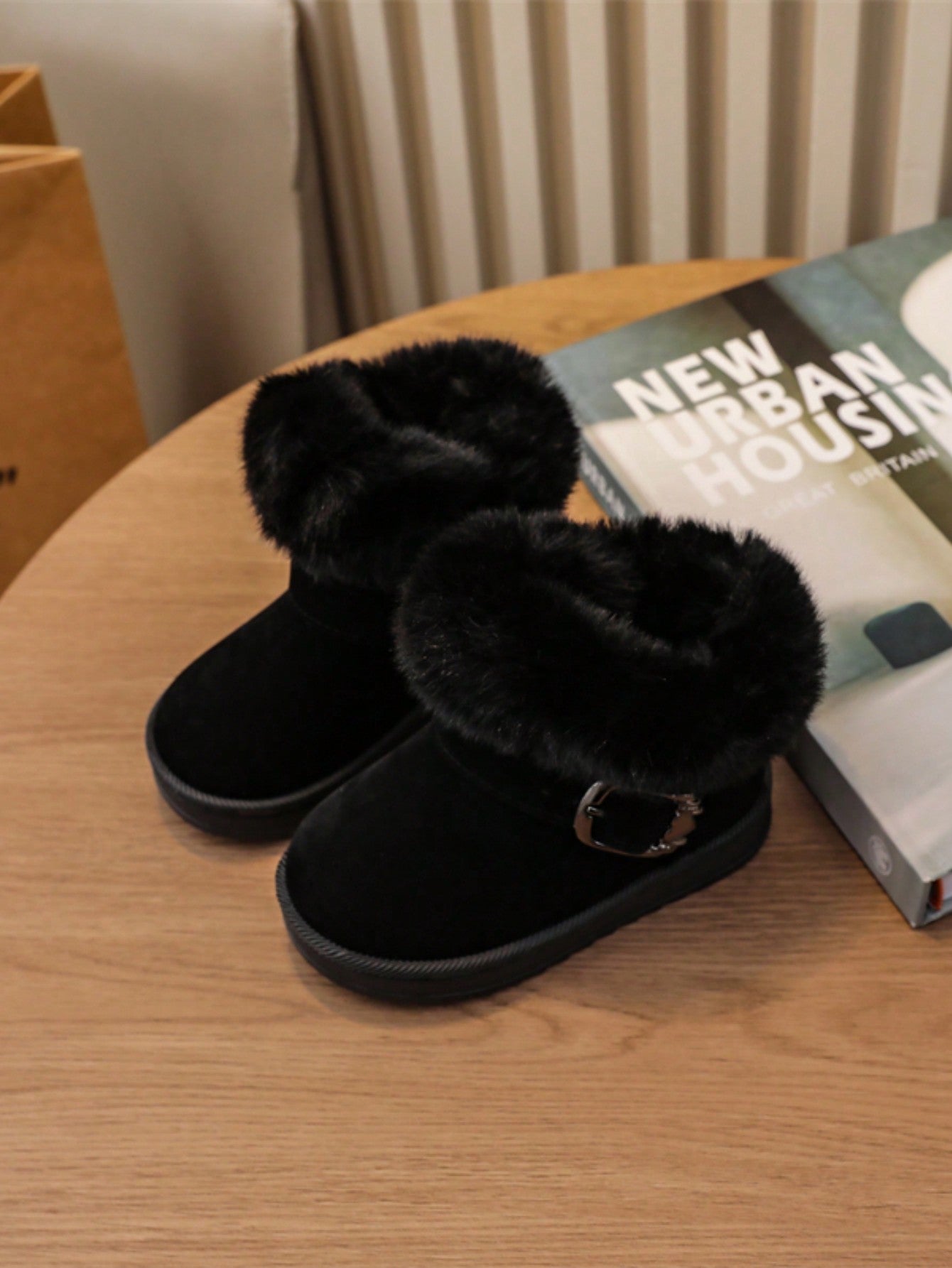 بوت ثلج سميكة وساخنة مزينة بشريط فرو أطفال وإبزيم