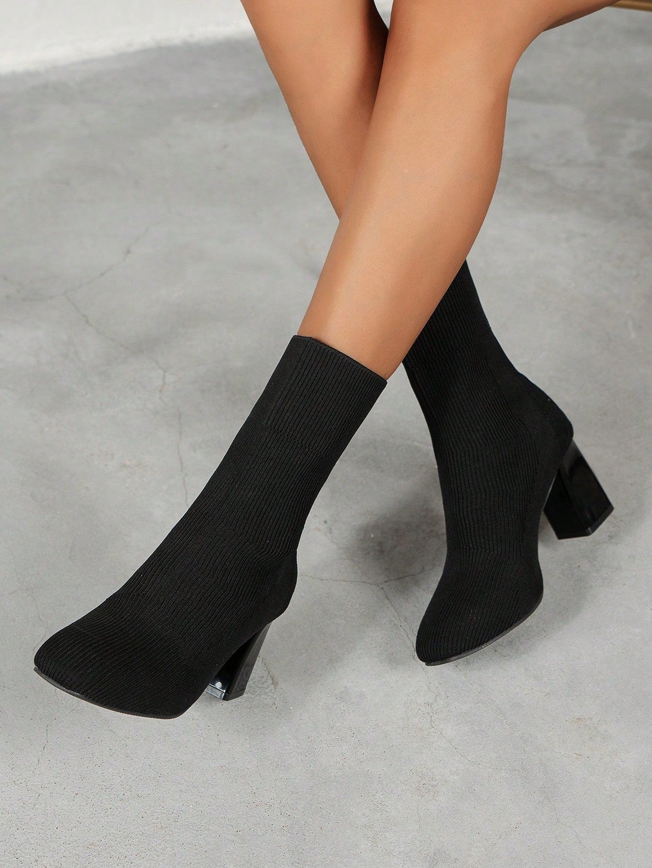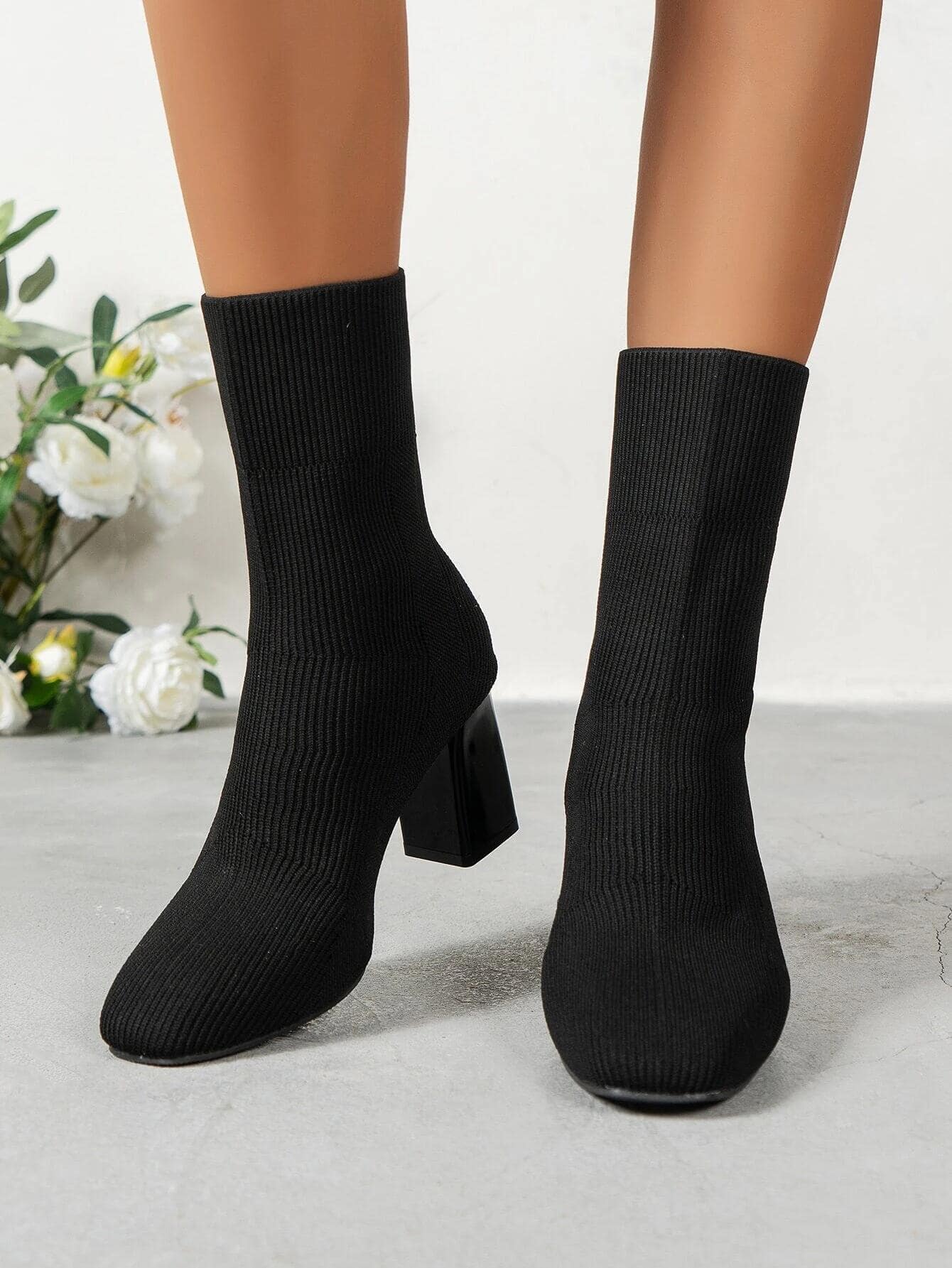 بوت غربية ذات كعب سميك مربعة الرأس للنساء
