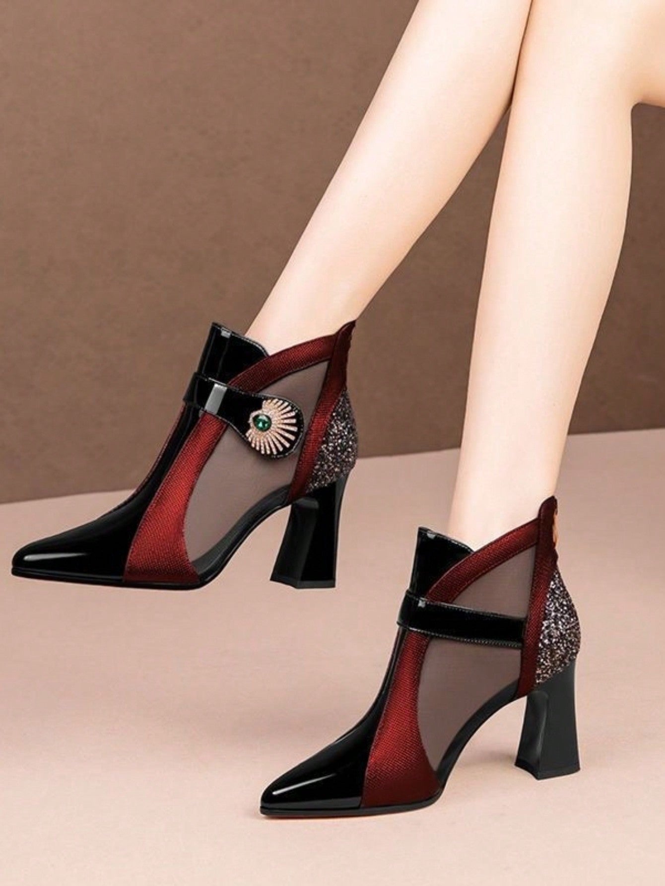 بوت كاحل بكعب عالي من الشبكة التنفسية للنساء