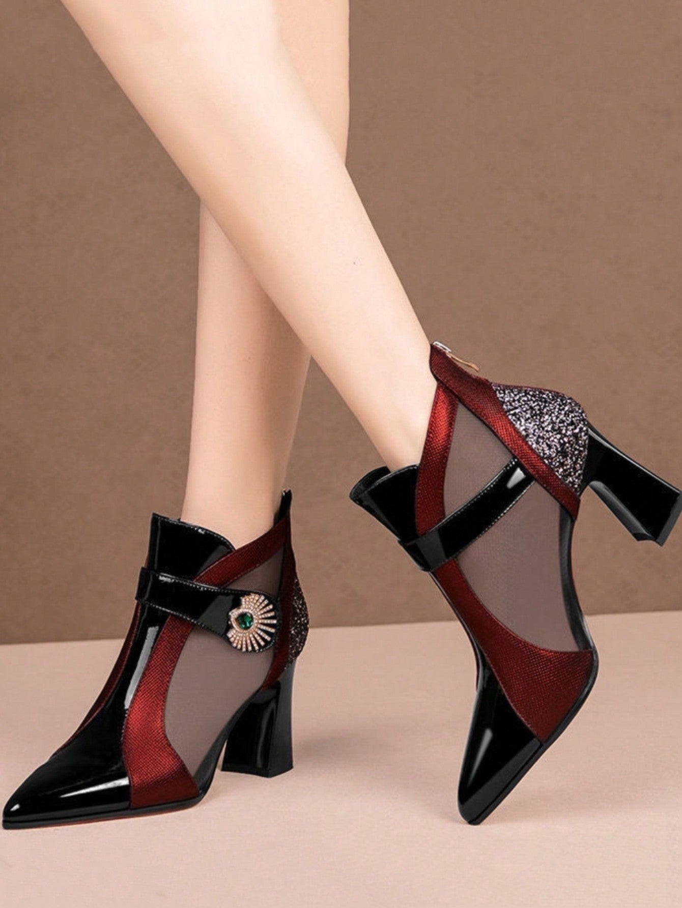 بوت كاحل بكعب عالي من الشبكة التنفسية للنساء، بوت قصيرة بكعب سميك