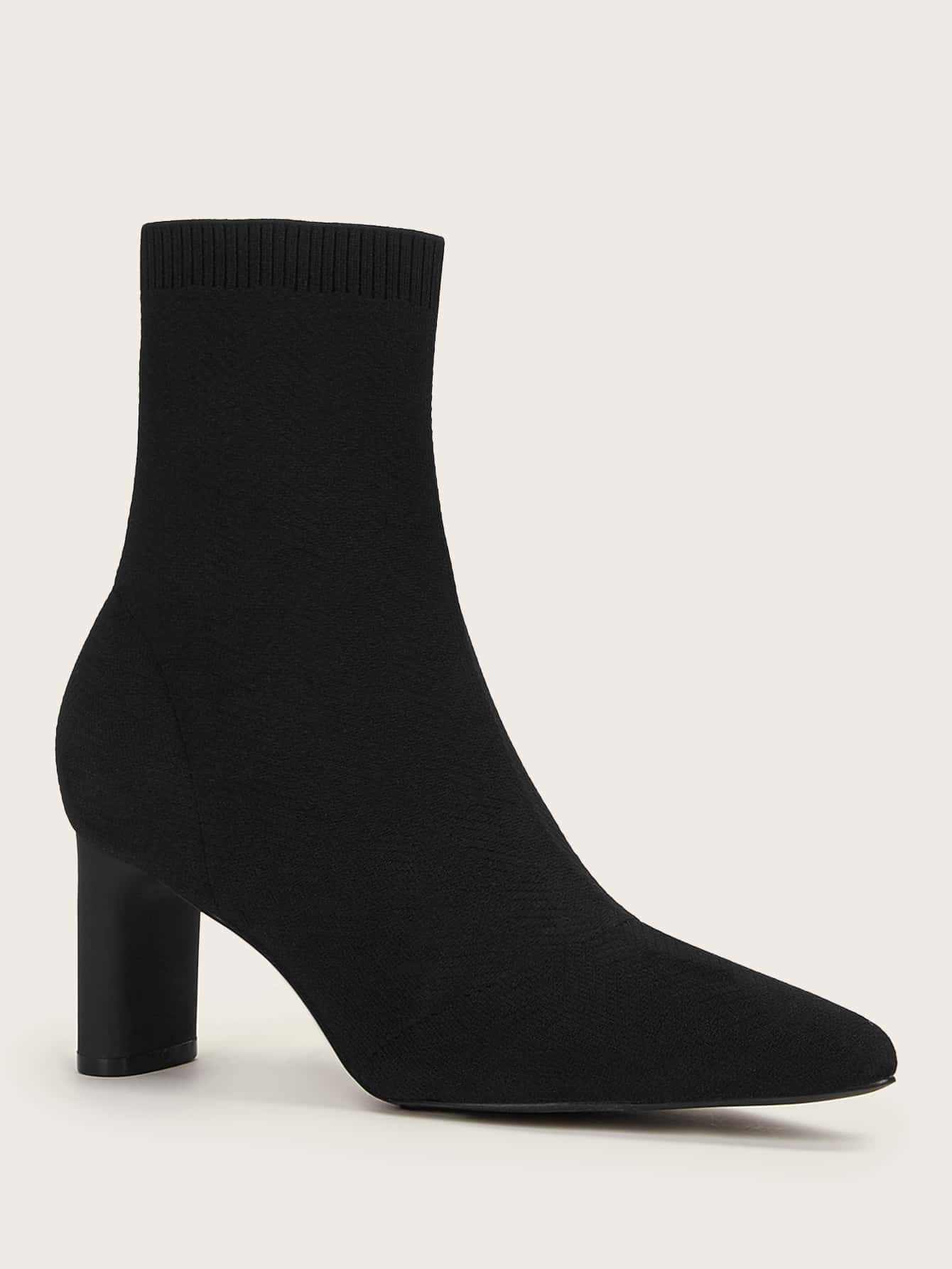 بوت نسائي أسود أنيق بكعب سميك واسع للغاية , مدرجة ضمن العروض الصيفية و قابلة للتمدد، يناسب الأجواء العطلات.